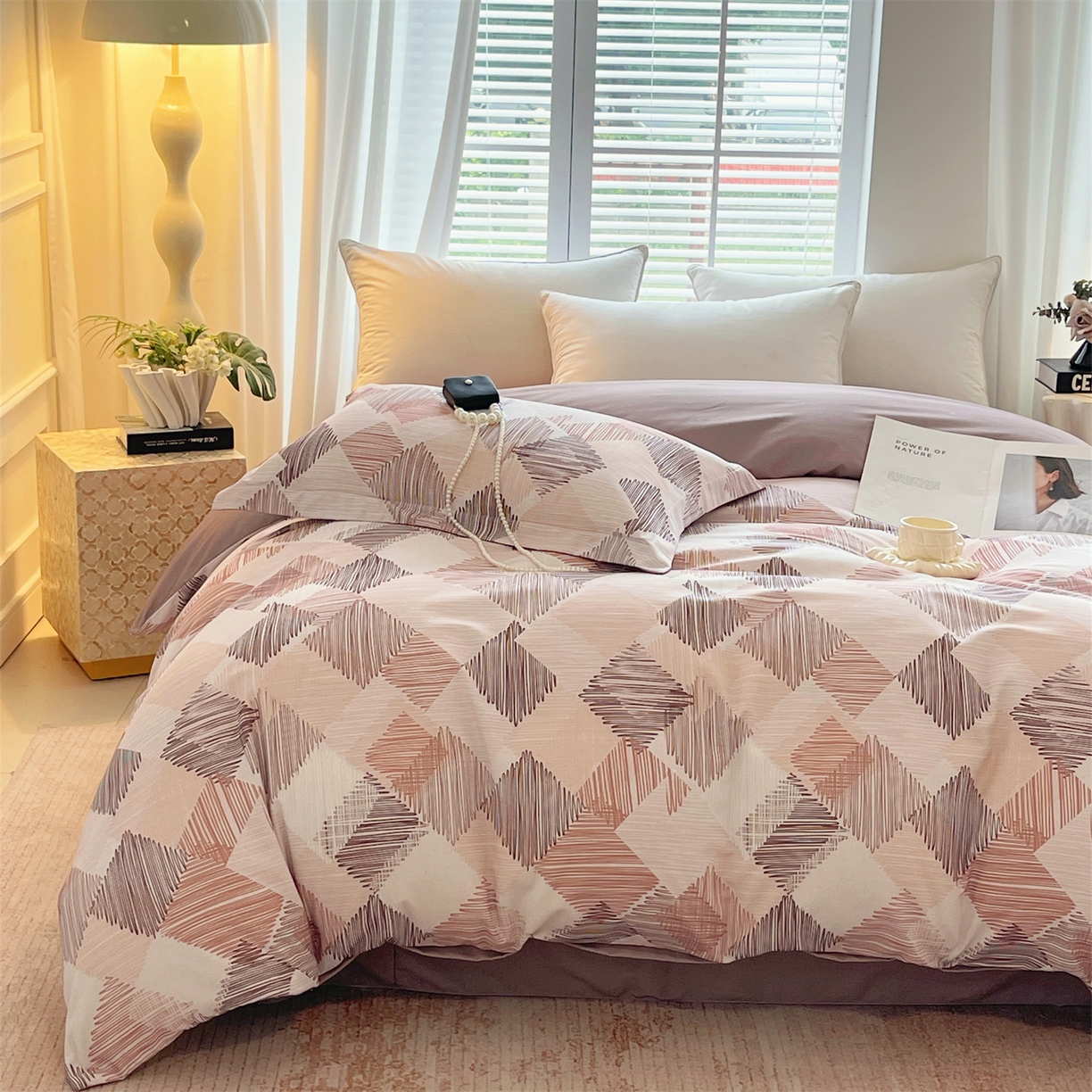 凯磊家纺 - 凯磊家纺 2025新款Ab版加厚磨毛印花系列被套单件被套单品单被套 粉调格韵