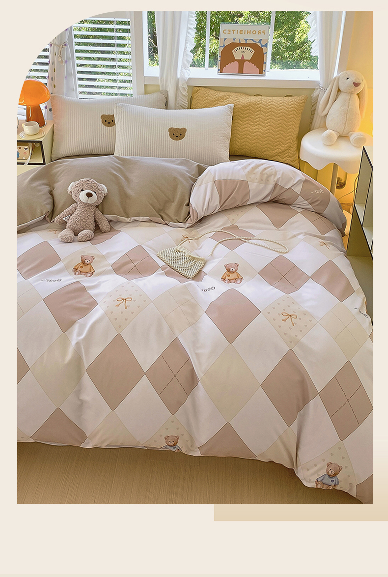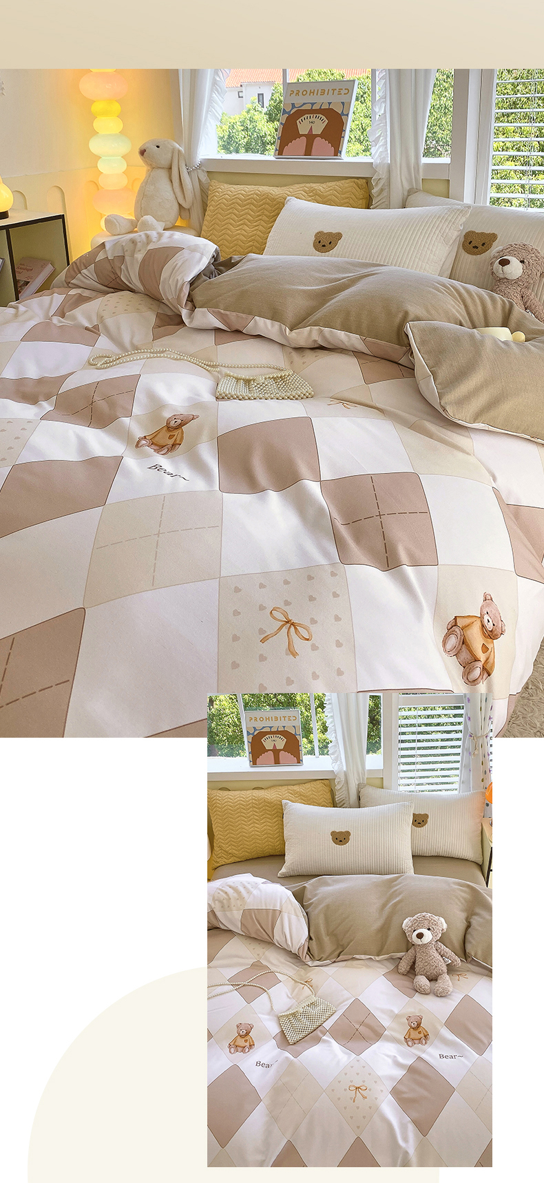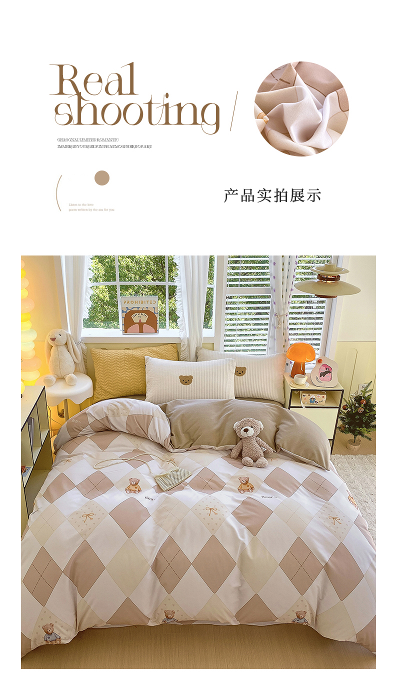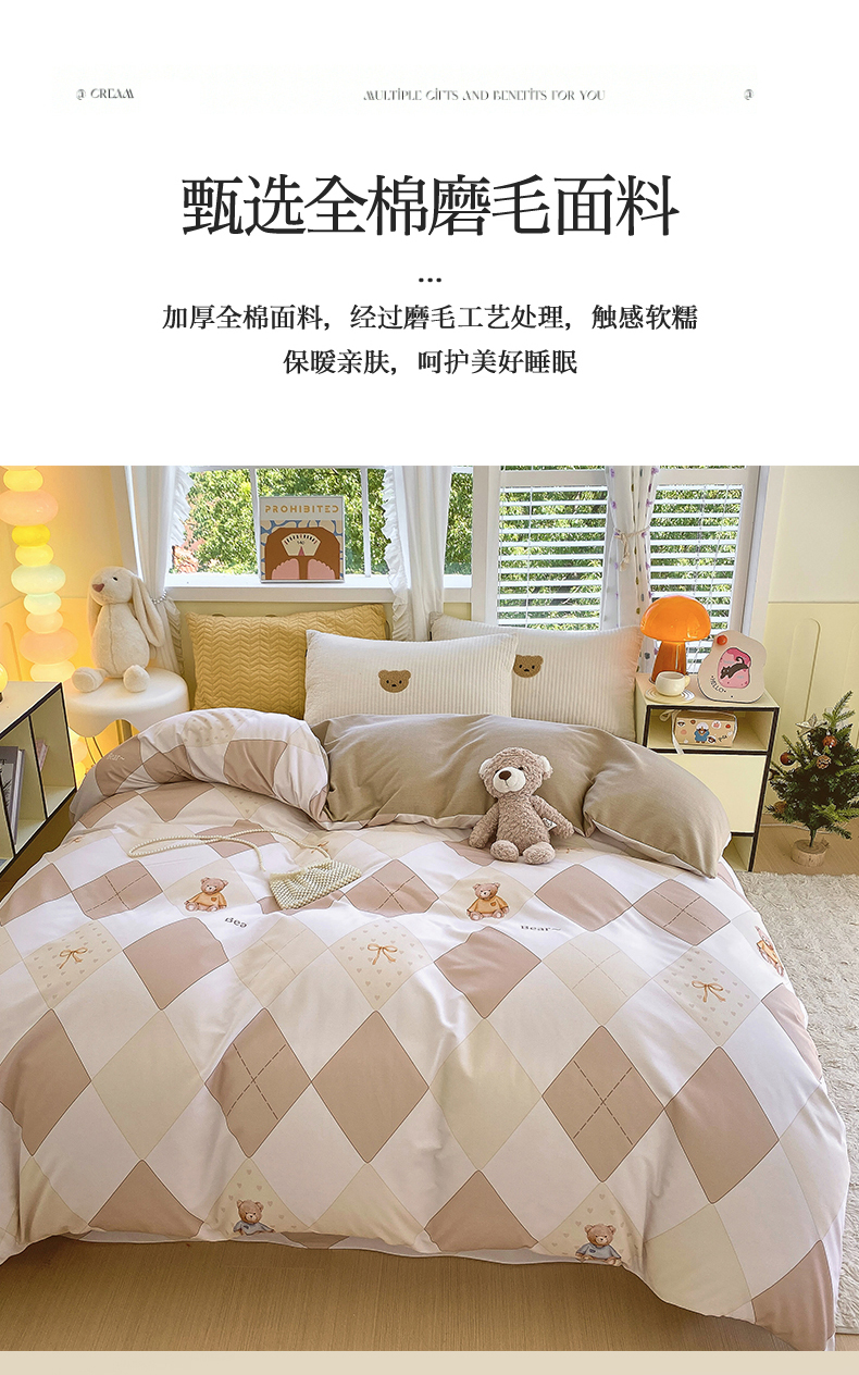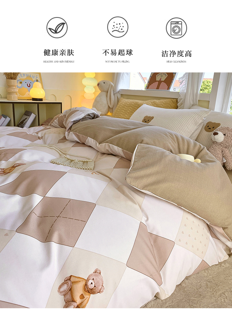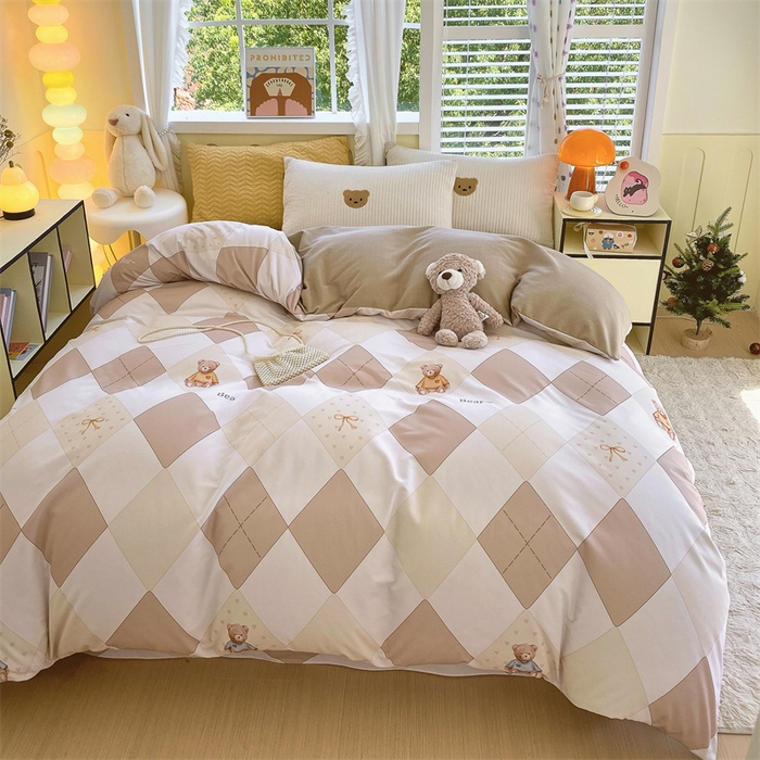 当前位置:凯磊家纺 > 凯磊家纺 2025新款Ab版加厚磨毛印花系列被套单件被套单品单被套 格子小熊-咖