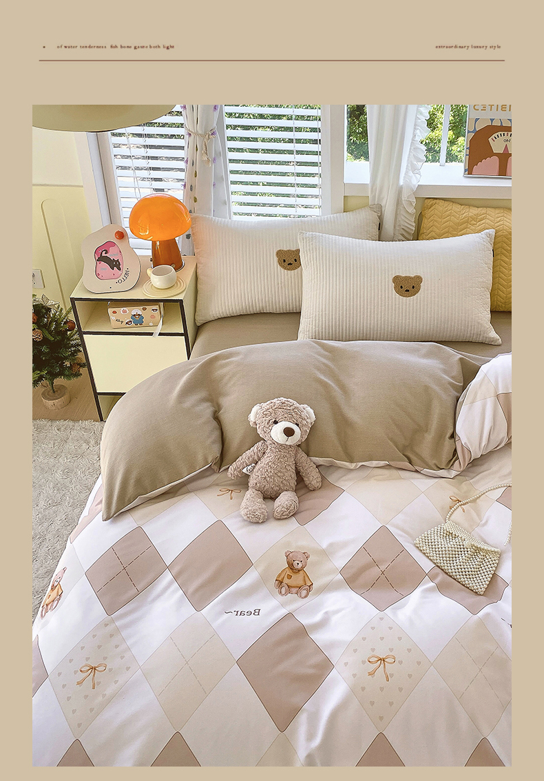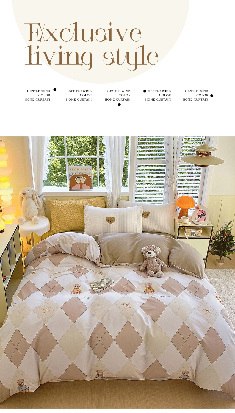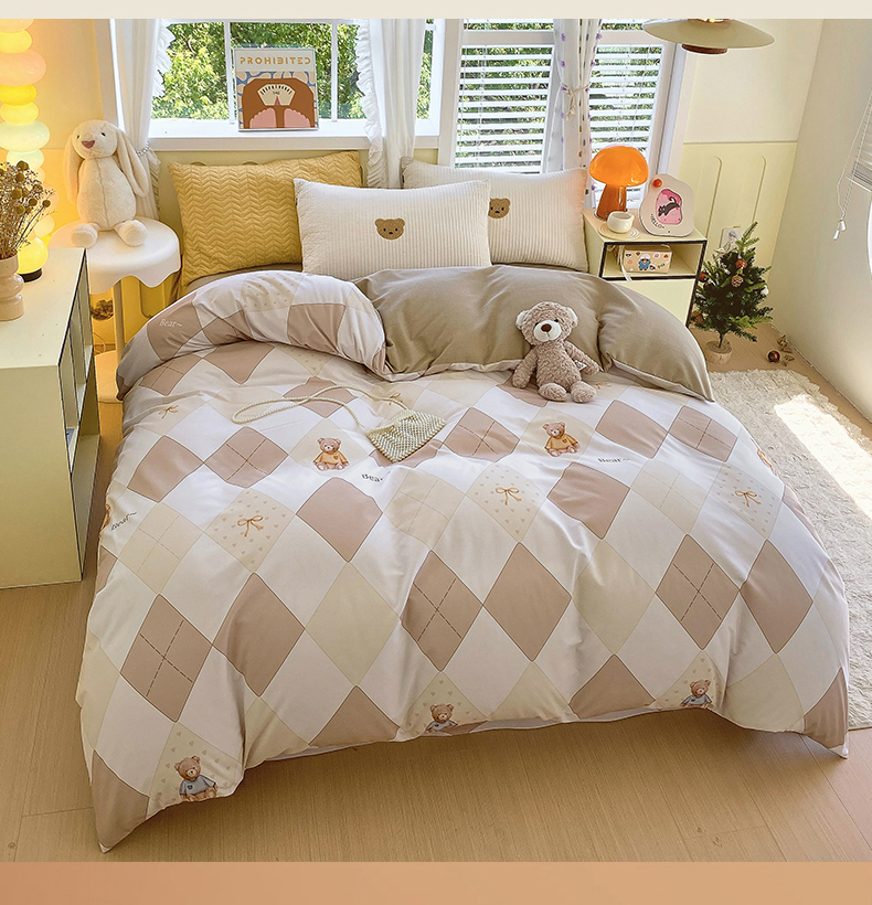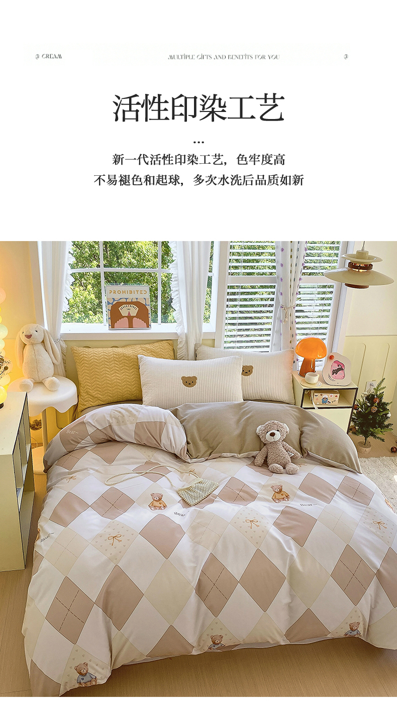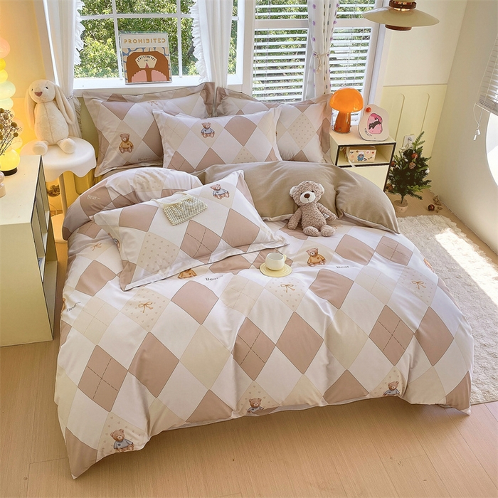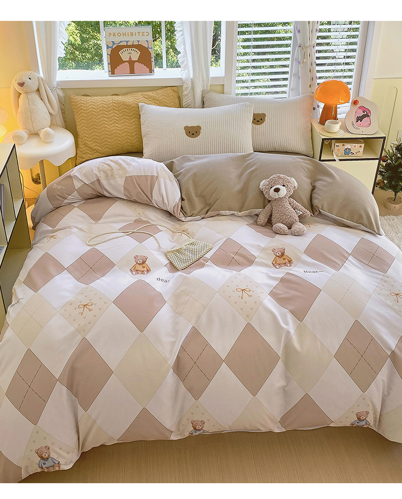 当前位置:凯磊家纺 > 凯磊家纺 2025新款Ab版加厚磨毛印花系列被套单件被套单品单被套 格子小熊-咖