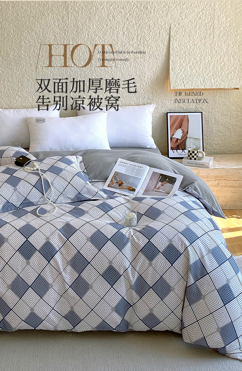 凯磊家纺 - 凯磊家纺 2025新款Ab版加厚磨毛印花系列被套单件被套单品单被套 灵动-兰