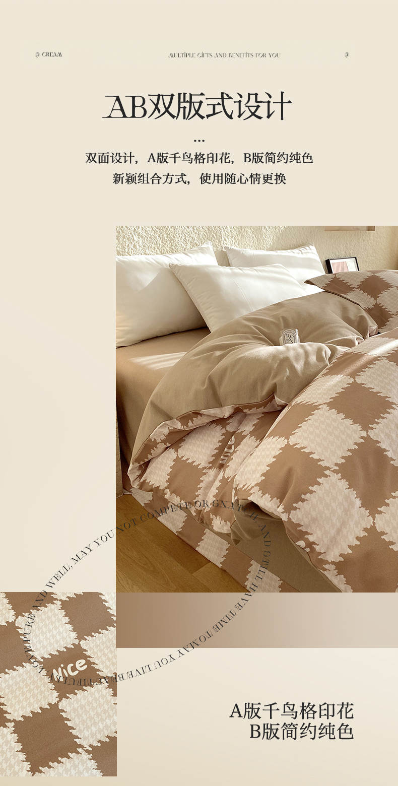 当前位置:凯磊家纺 > 凯磊家纺 2025新款Ab版加厚磨毛印花系列被套单件被套单品单被套 千鸟格