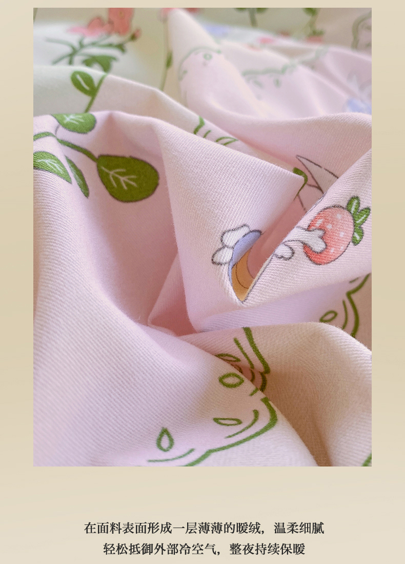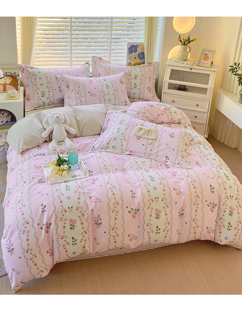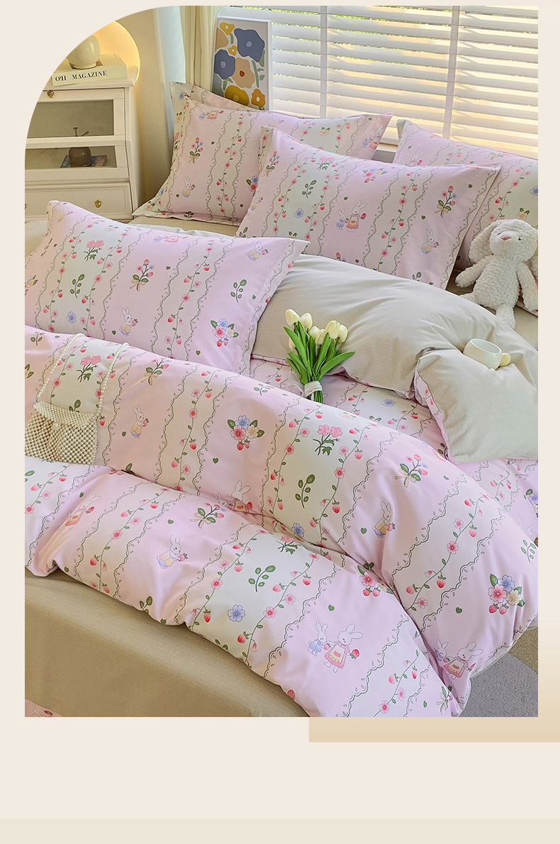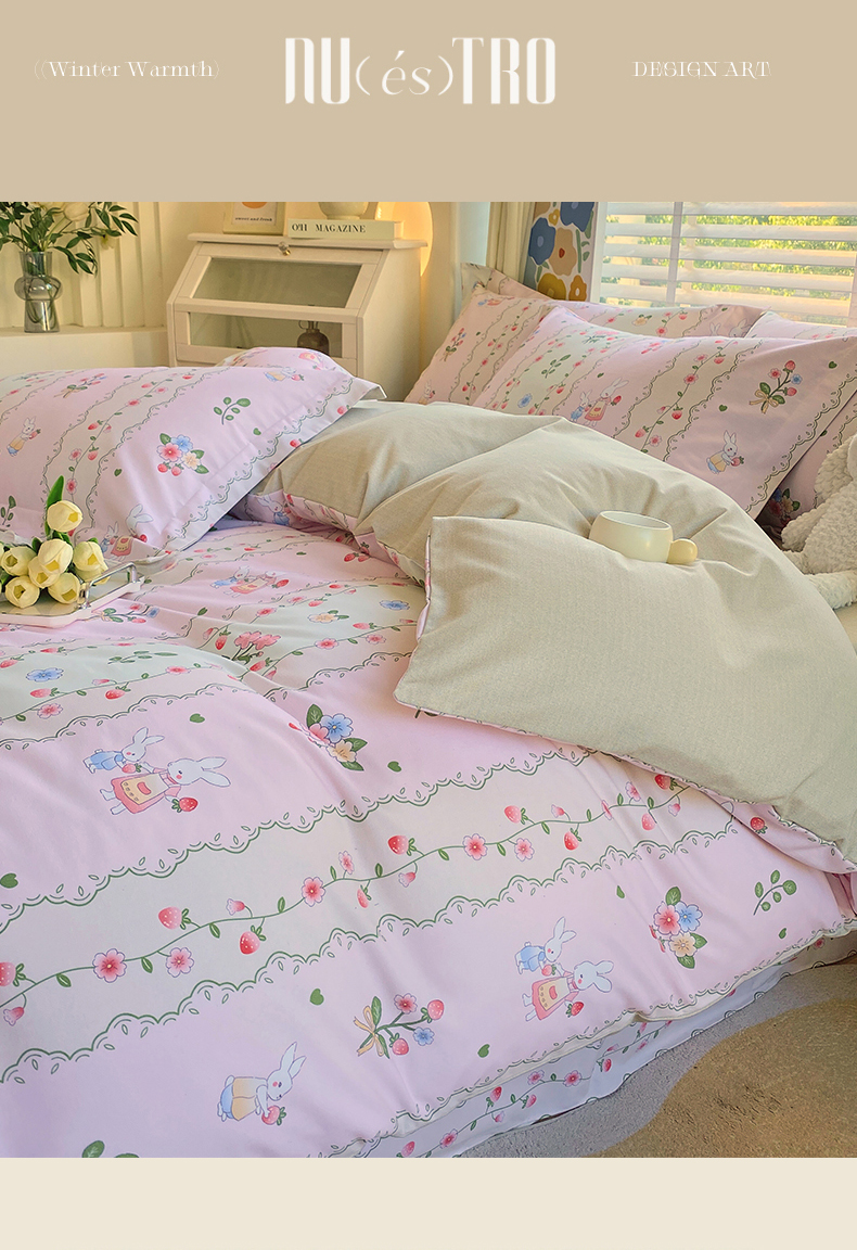 当前位置:凯磊家纺 > 凯磊家纺 2025新款AB版加厚磨毛系列四件套 田园小兔