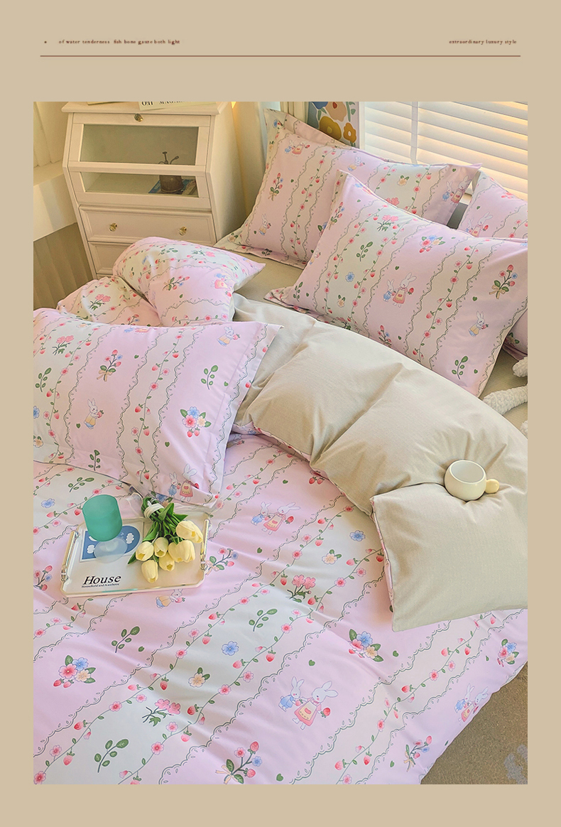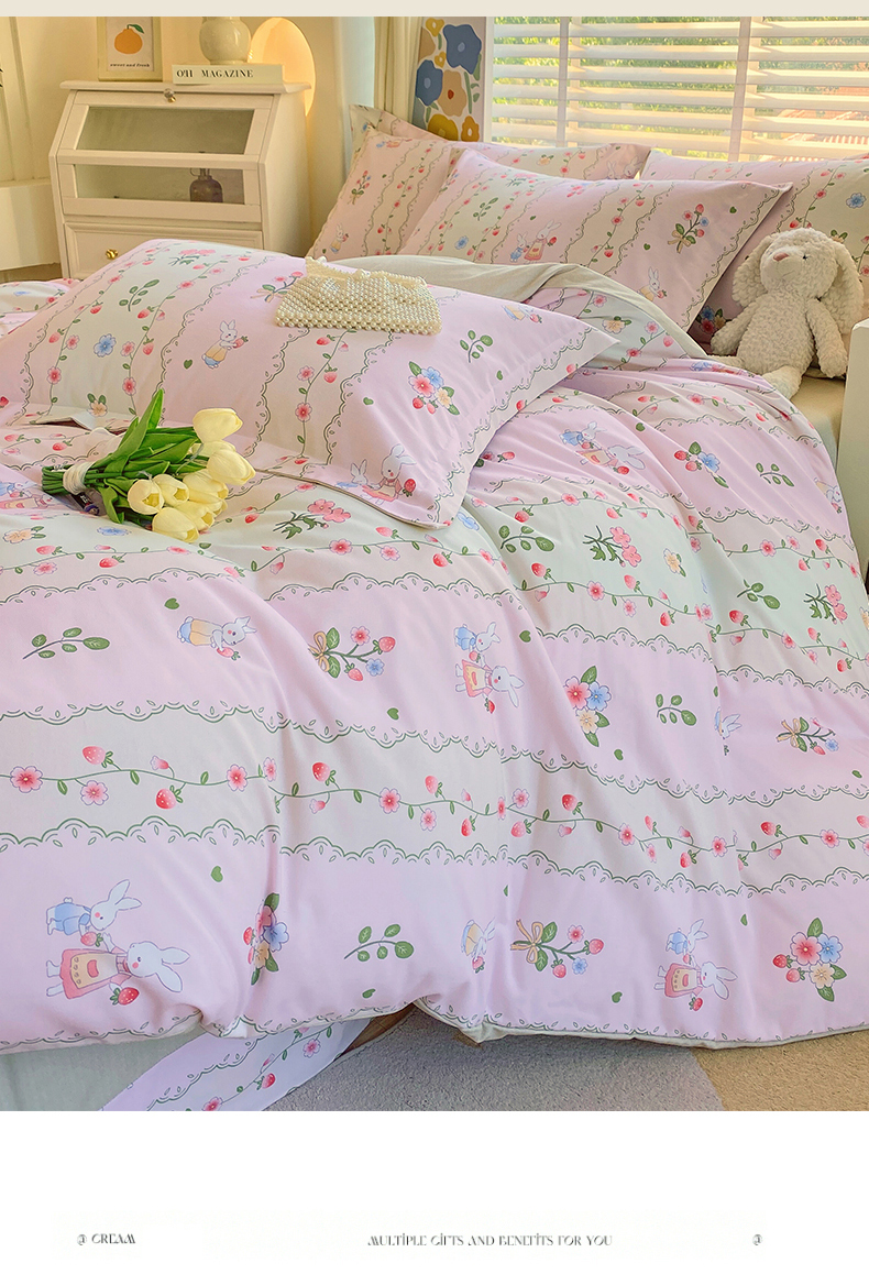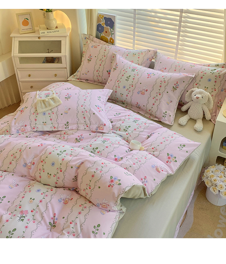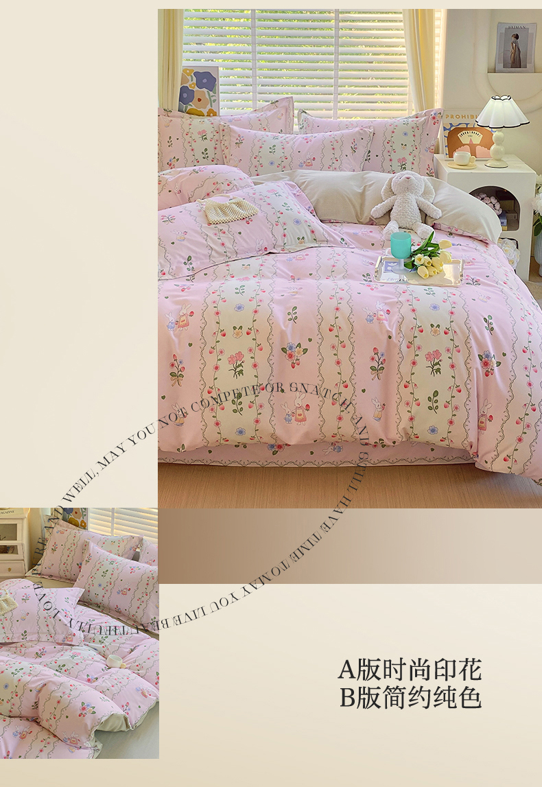 当前位置:凯磊家纺 > 凯磊家纺 2025新款AB版加厚磨毛系列四件套 田园小兔
