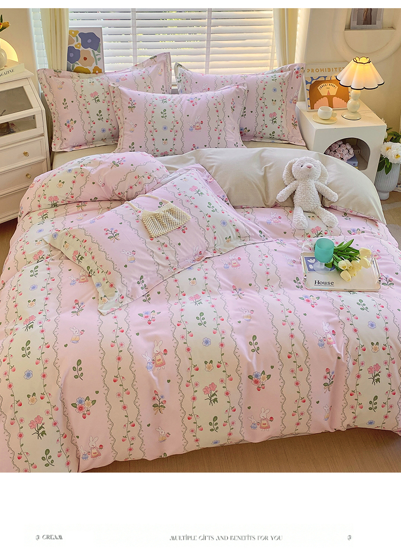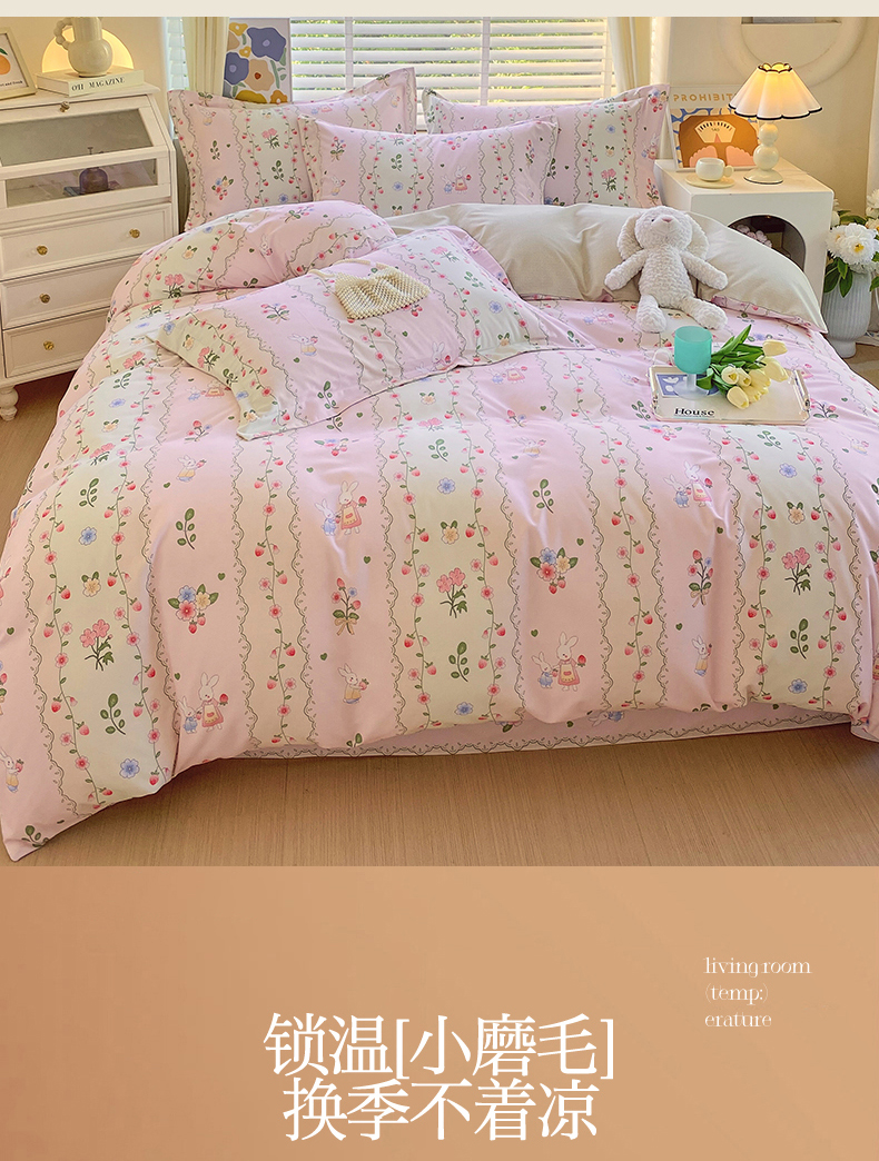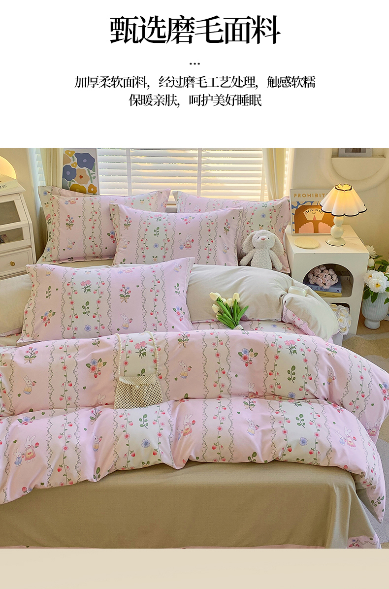 凯磊家纺 - 凯磊家纺 2025新款AB版加厚磨毛系列四件套 田园小兔