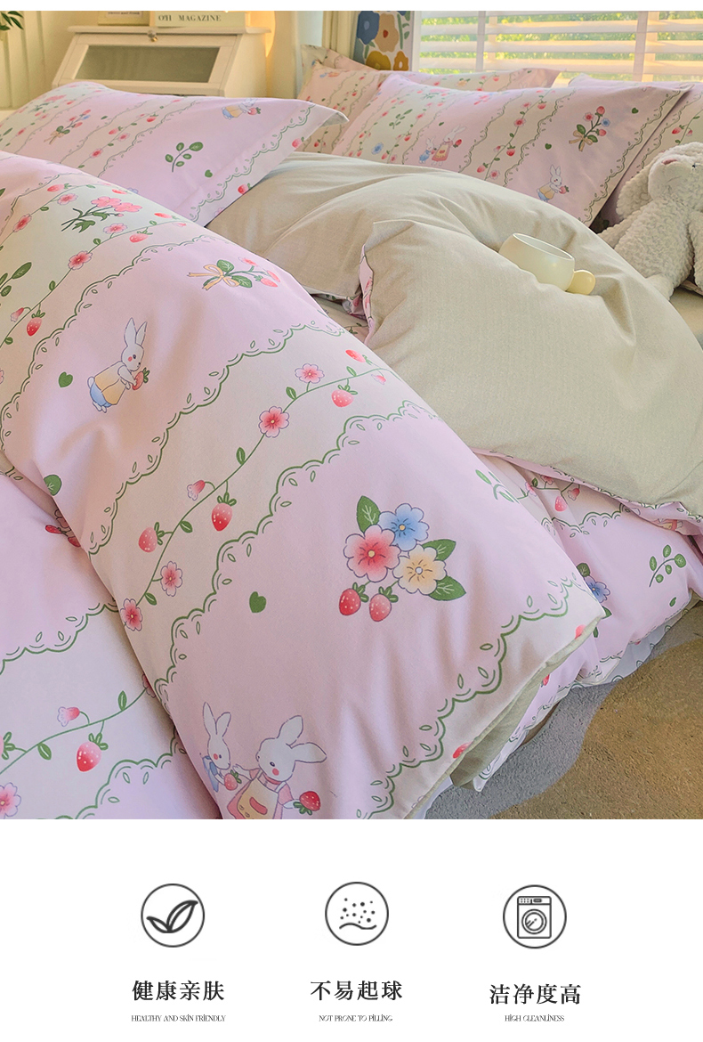 凯磊家纺 2025新款AB版加厚磨毛系列四件套 田园小兔