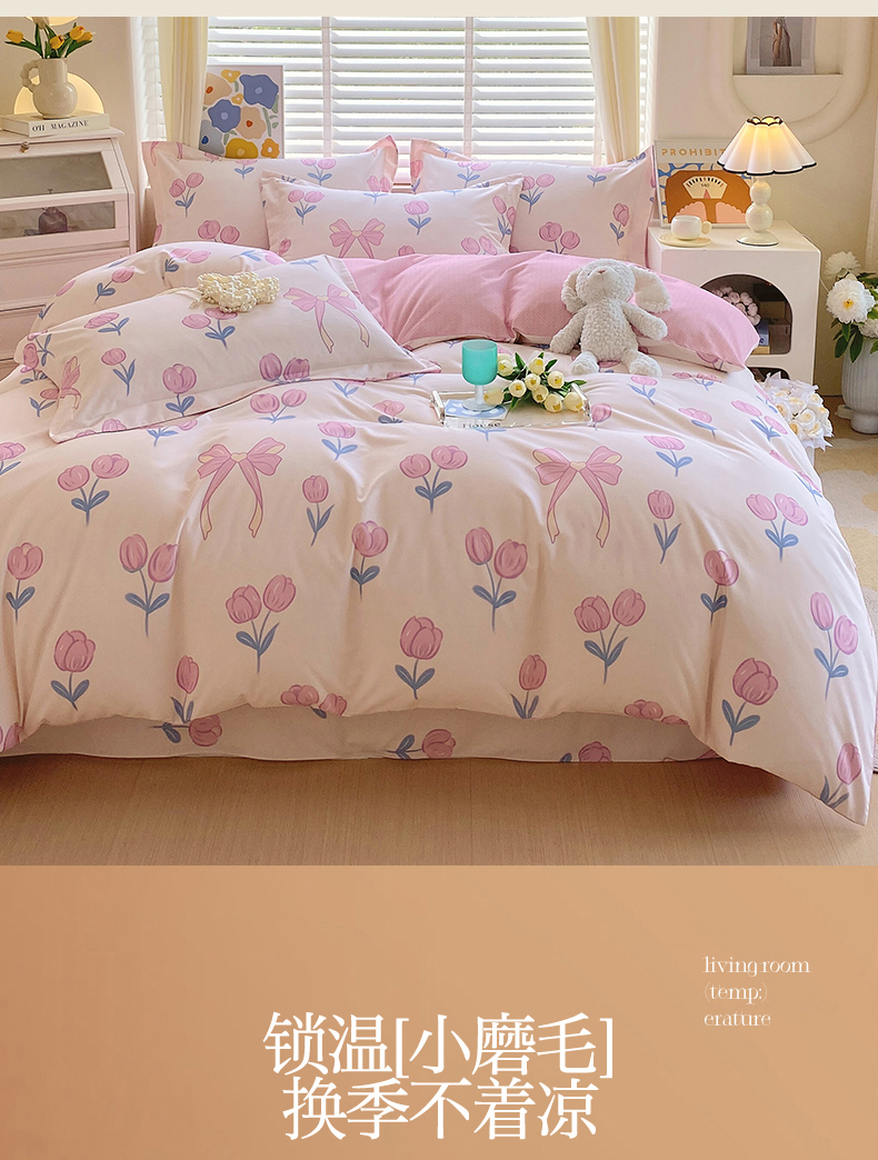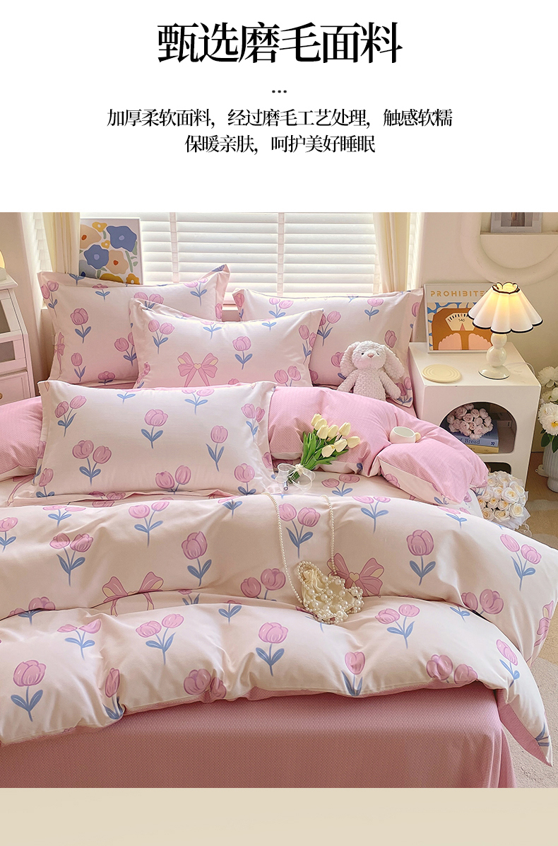 凯磊家纺 2025新款AB版加厚磨毛系列四件套 郁金香