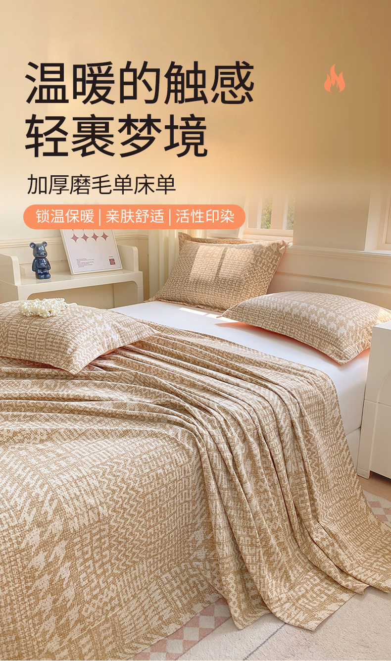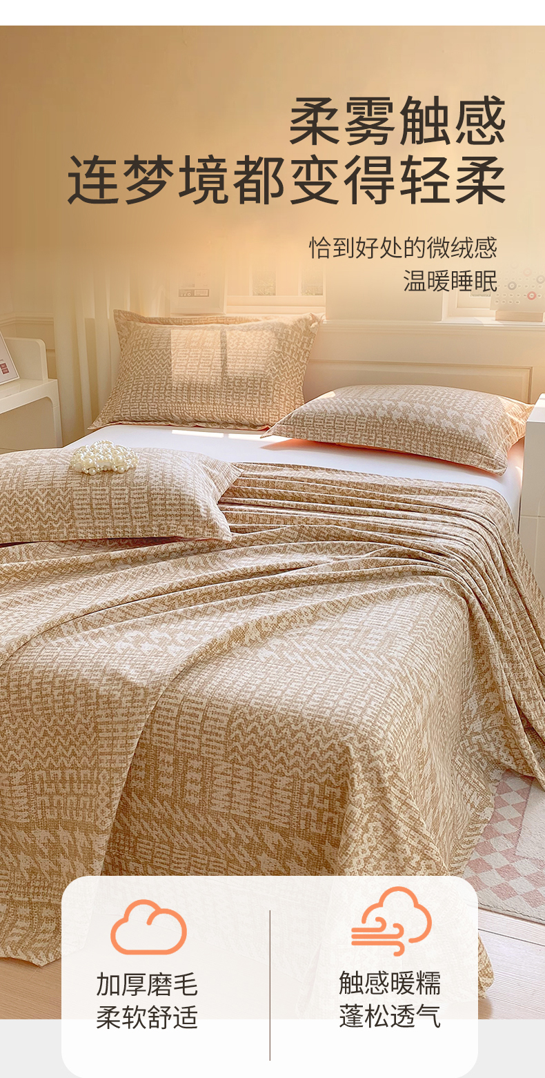 凯磊家纺 2025新款AB版加厚磨毛系列单床单 米乐
