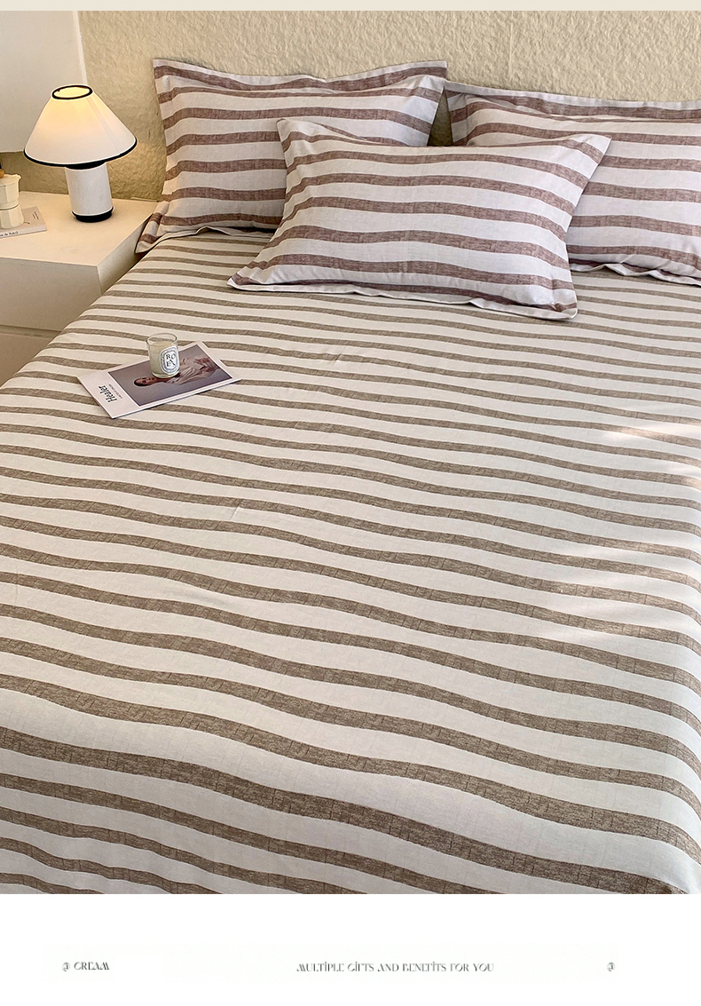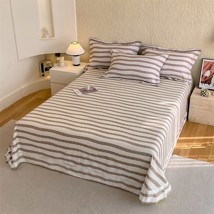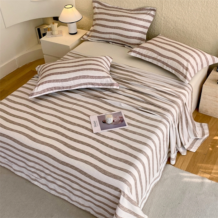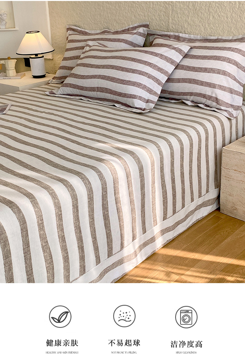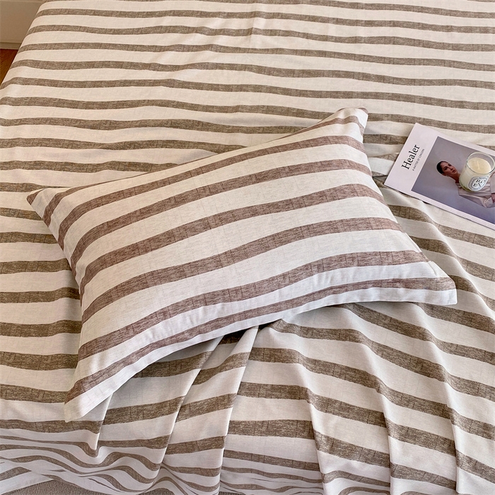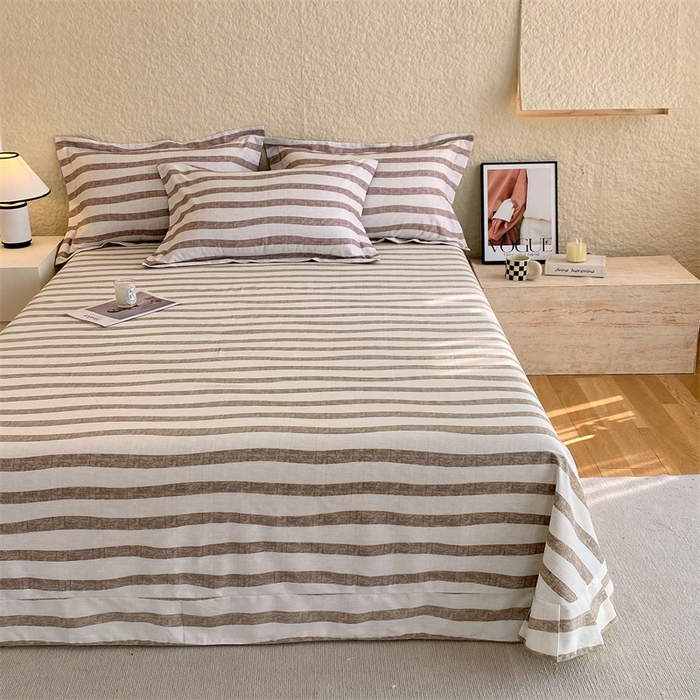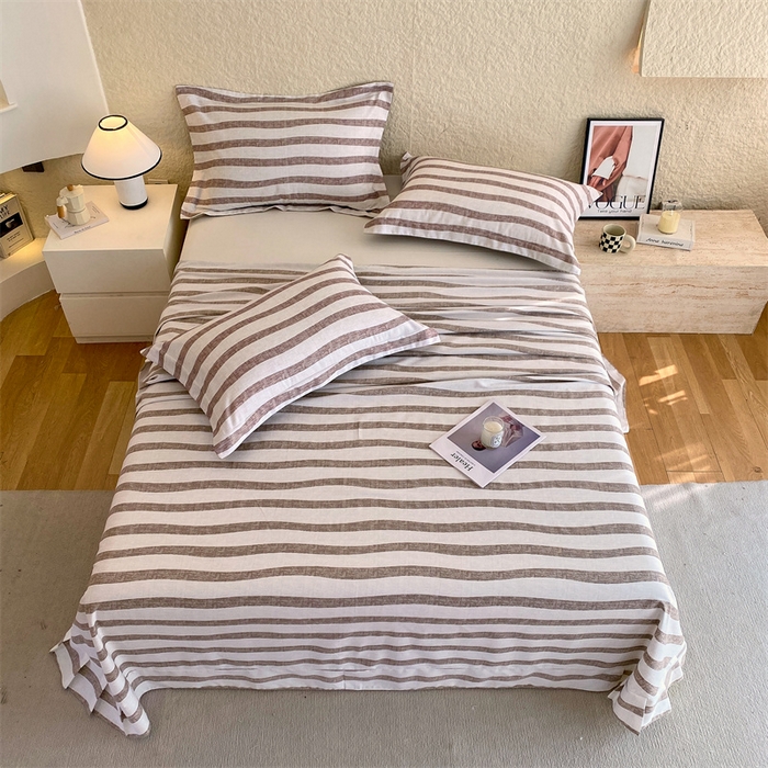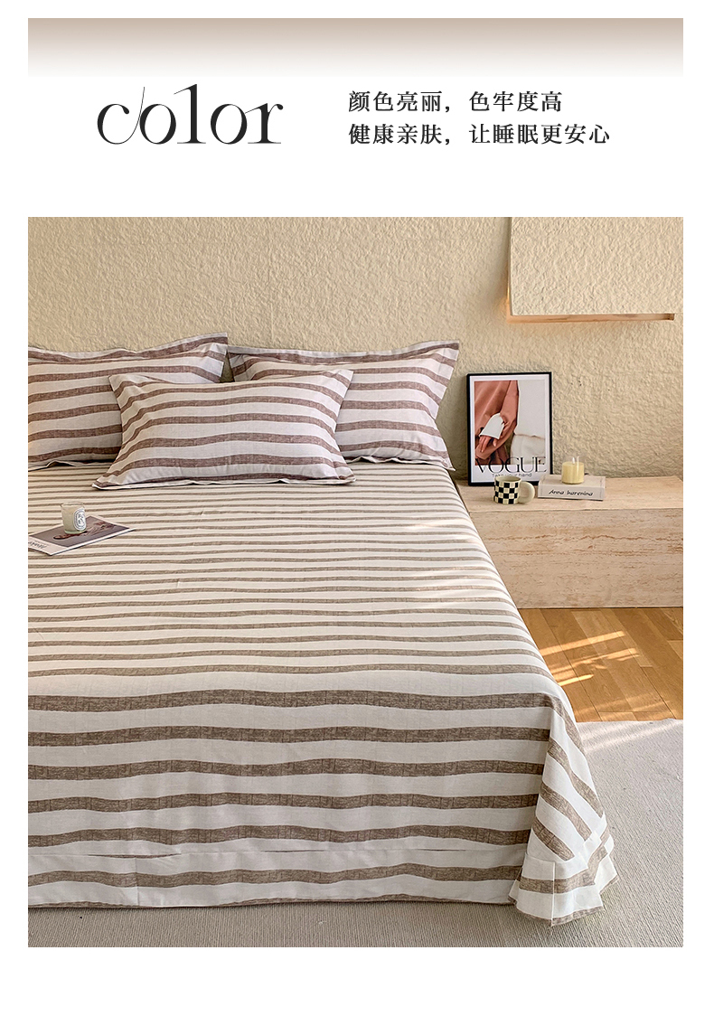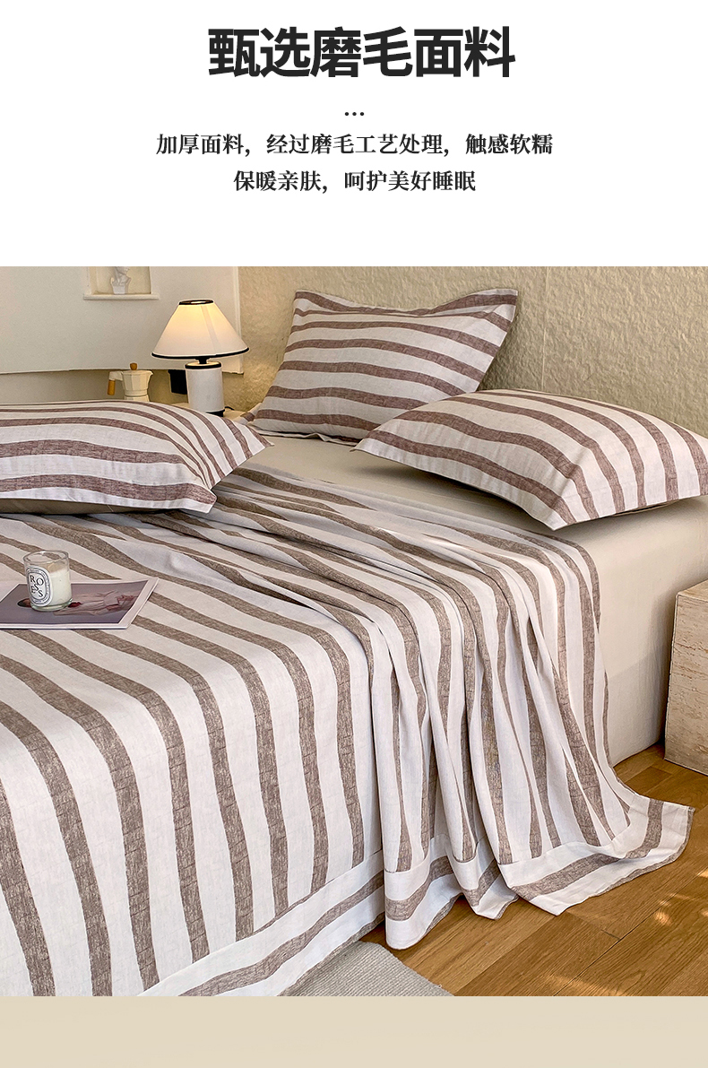 凯磊家纺 2025新款AB版加厚磨毛系列单床单 曲线条纹-咖
