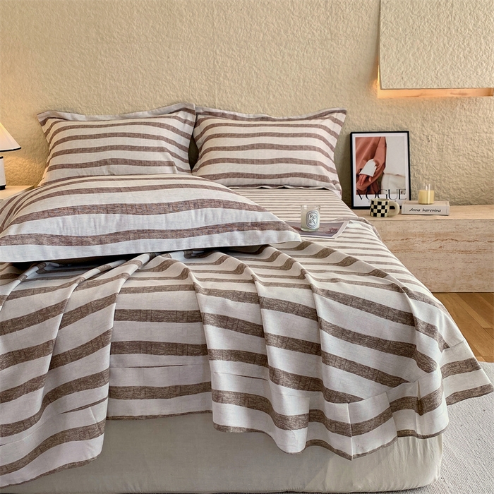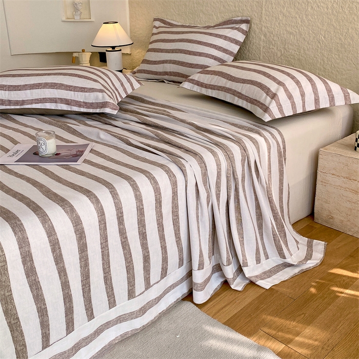 凯磊家纺 - 凯磊家纺 2025新款AB版加厚磨毛系列单床单 曲线条纹-咖