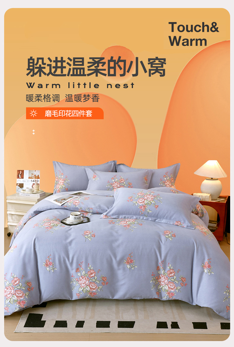 当前位置:凯磊家纺 > 凯磊家纺 2025新款AA版加厚磨毛系列四件套 花趣