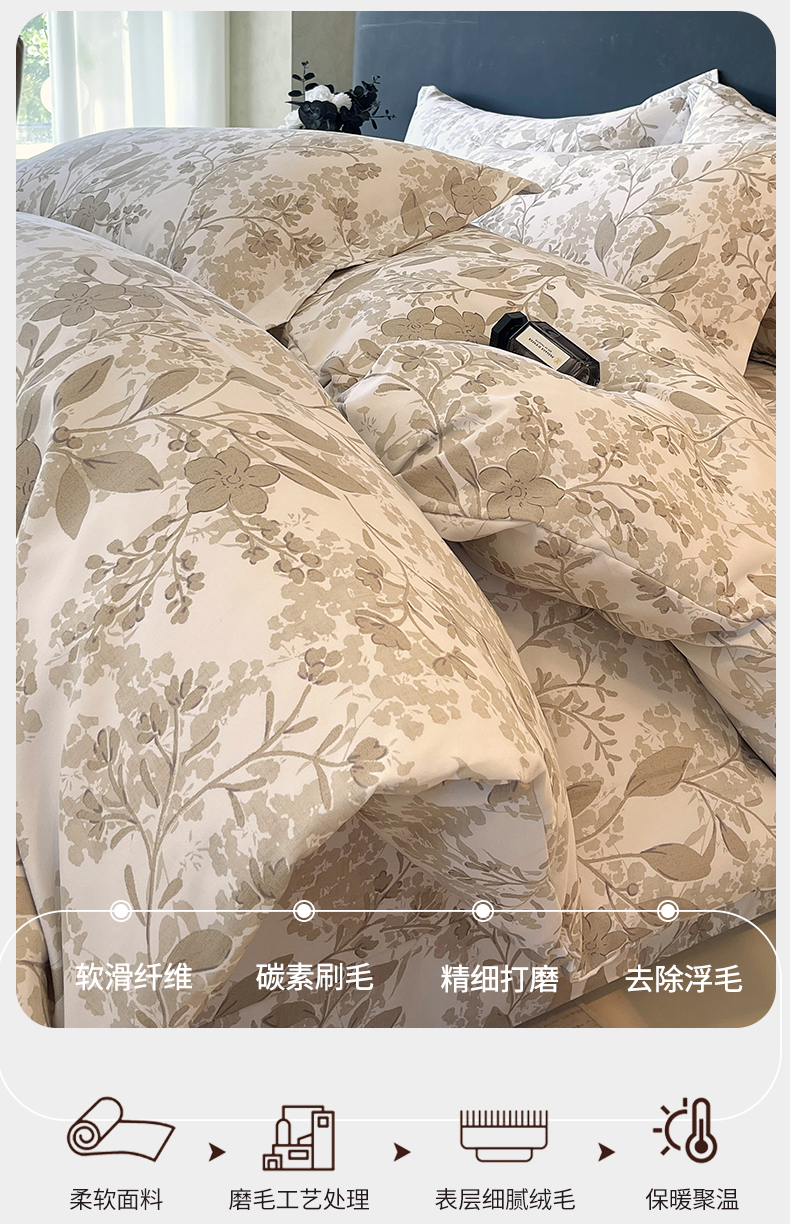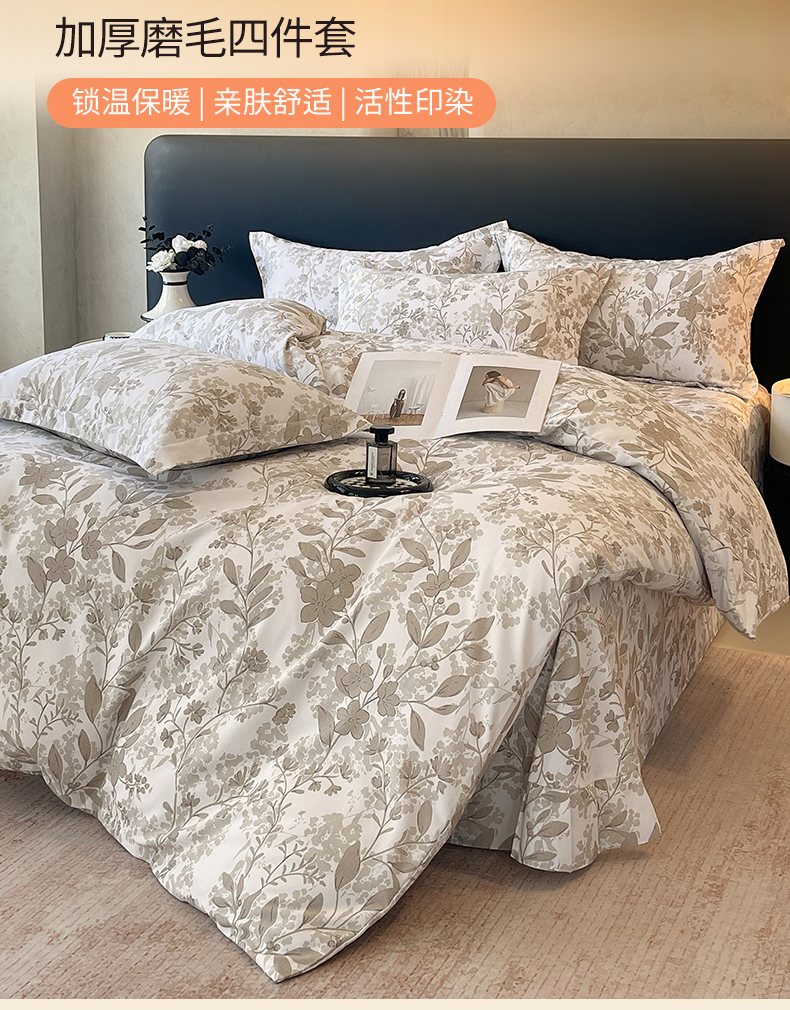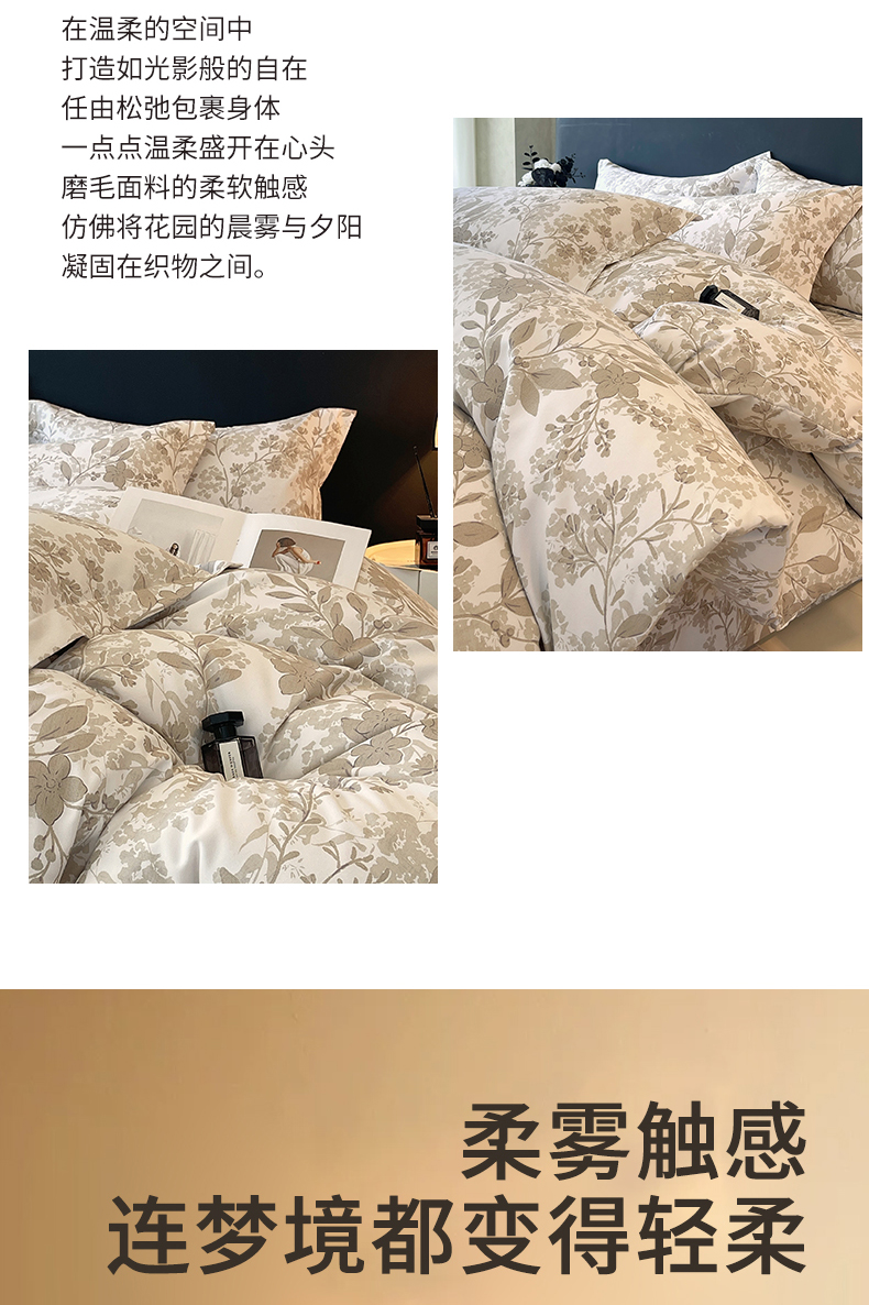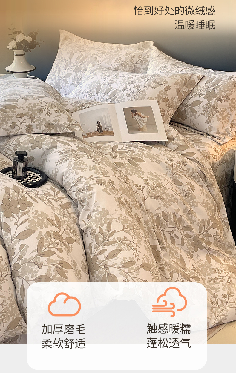 当前位置:凯磊家纺 > 凯磊家纺 2025新款AA版加厚磨毛系列四件套 温情花语