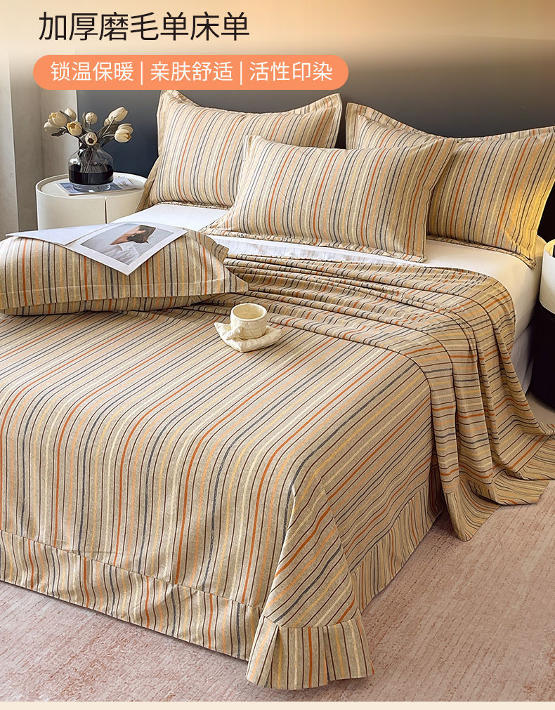 凯磊家纺 - 凯磊家纺 2025新款AA版加厚磨毛系列单床单 暖橘