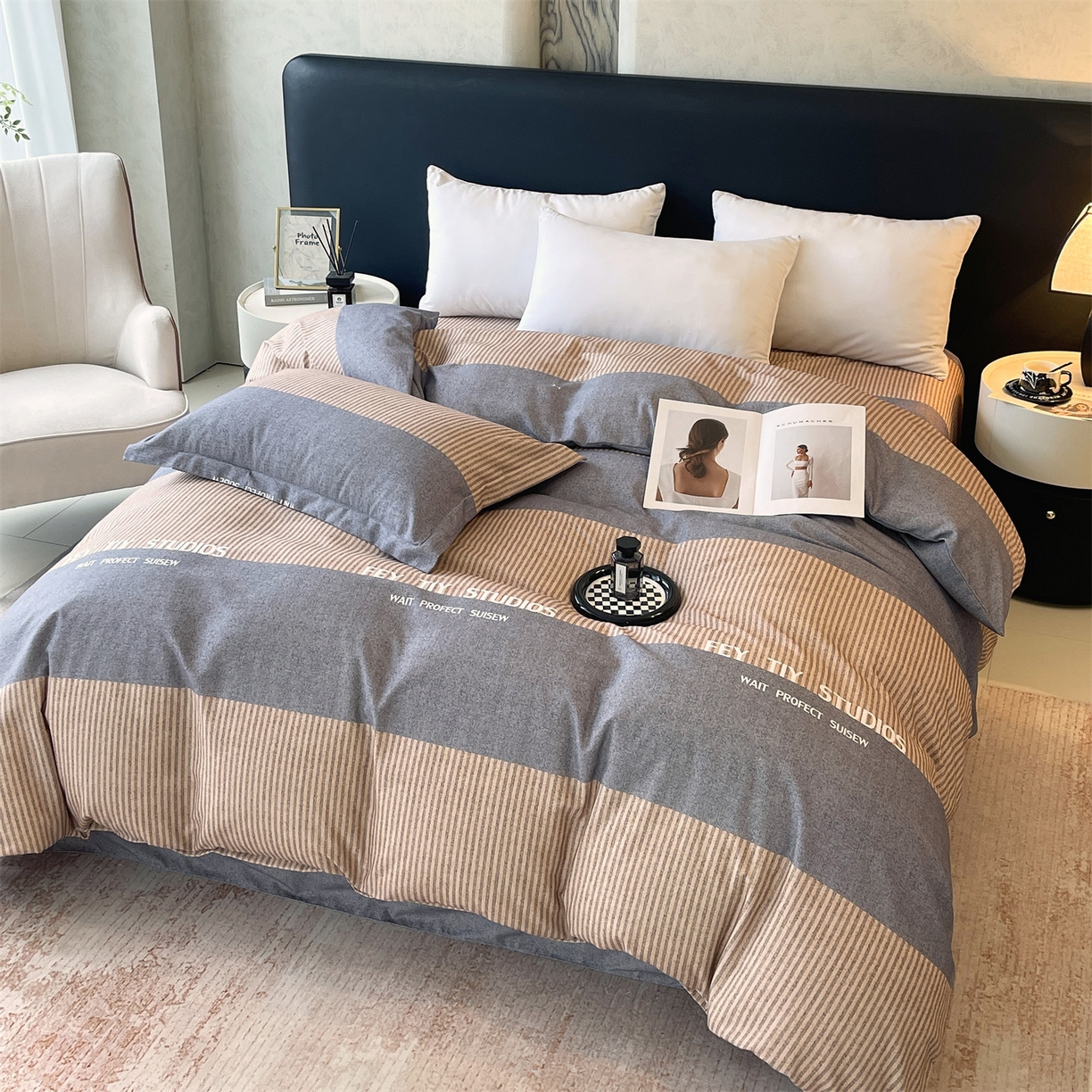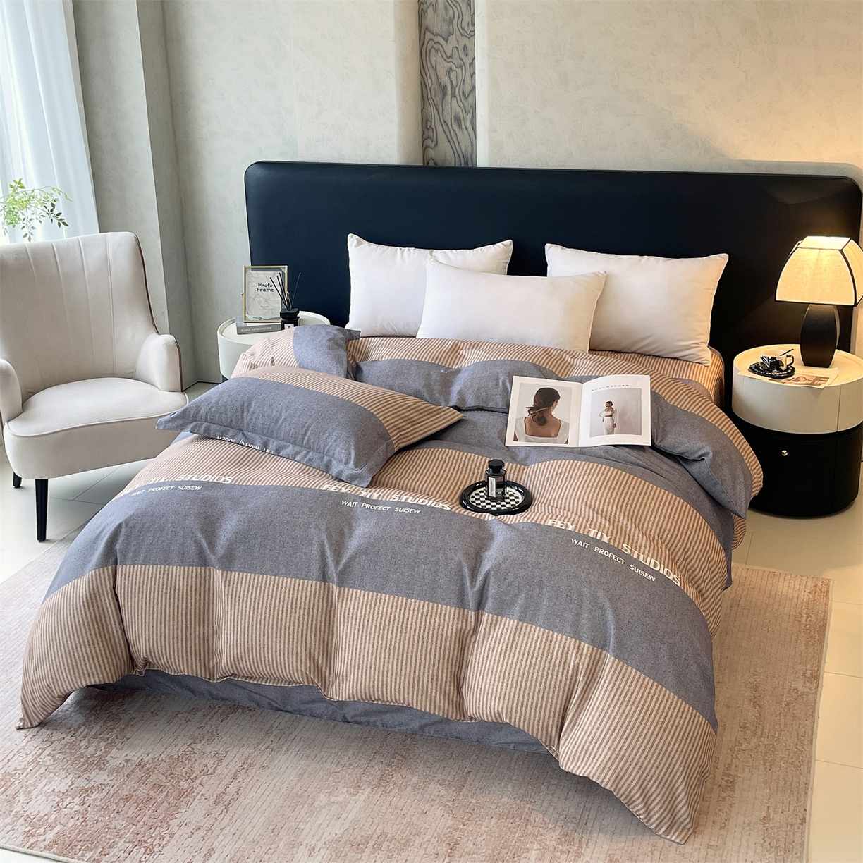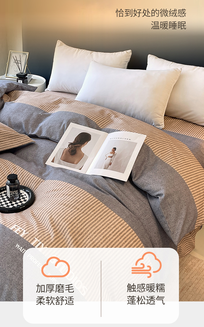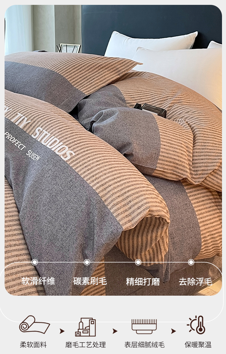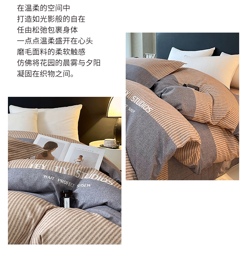 简约风长绒棉四件套