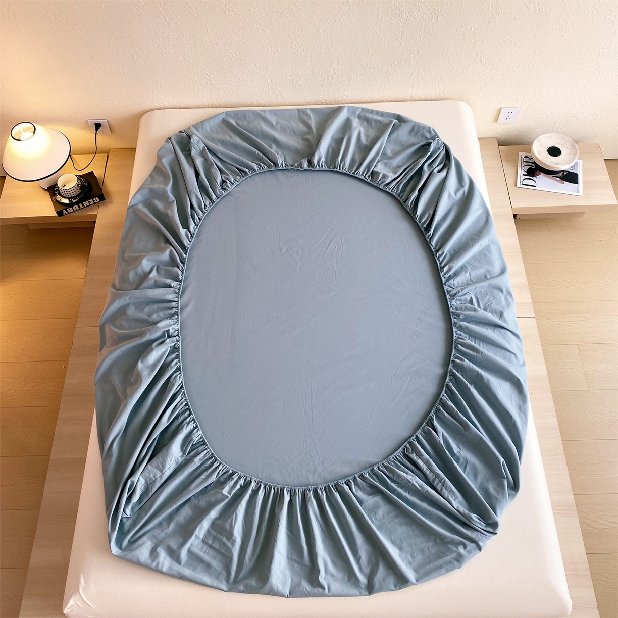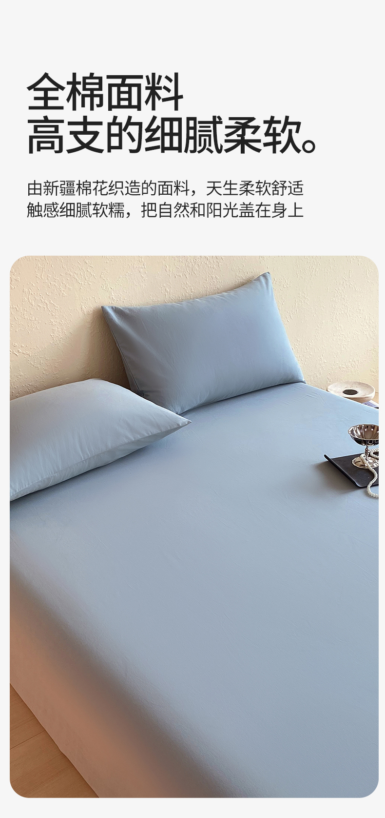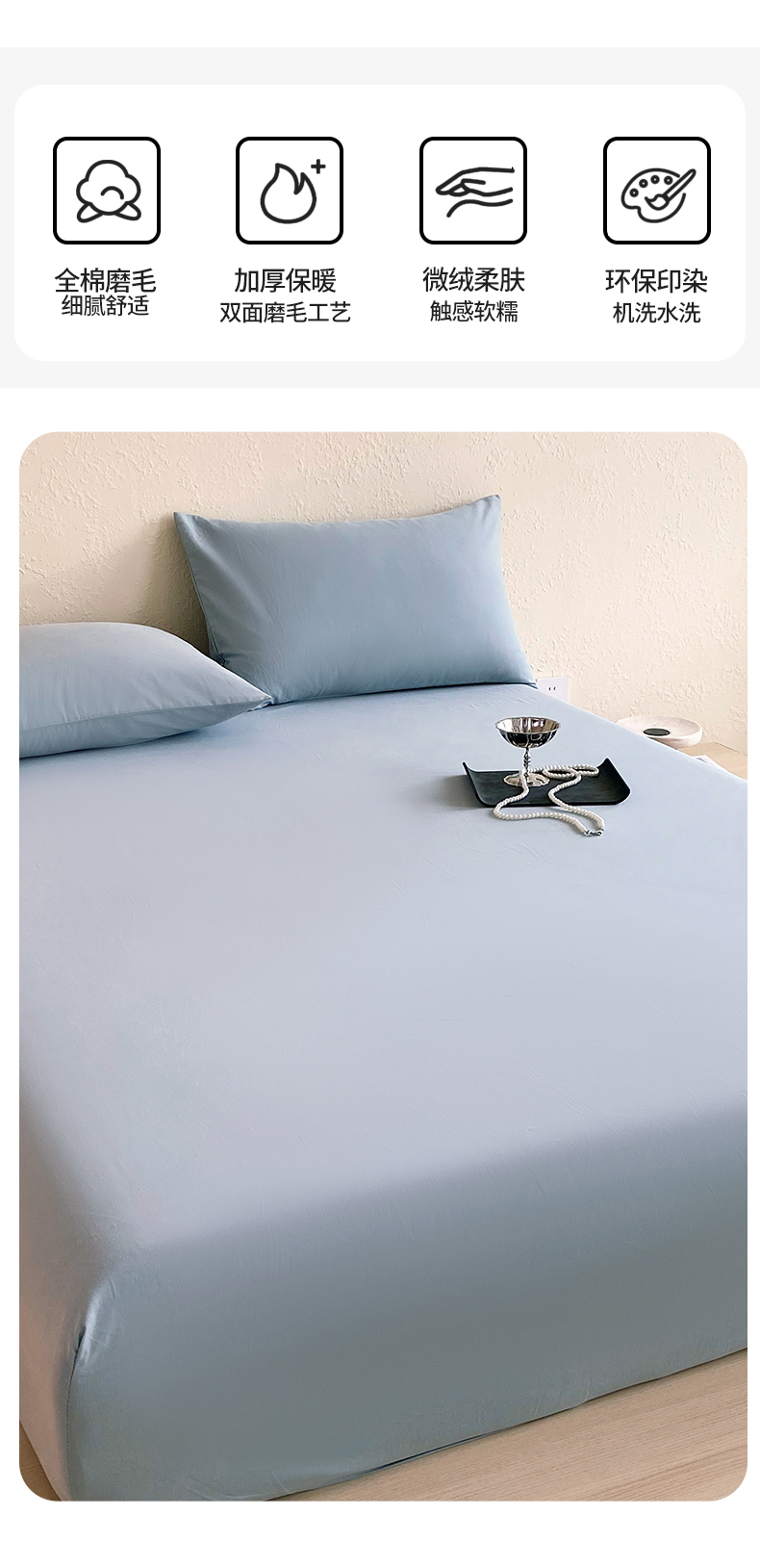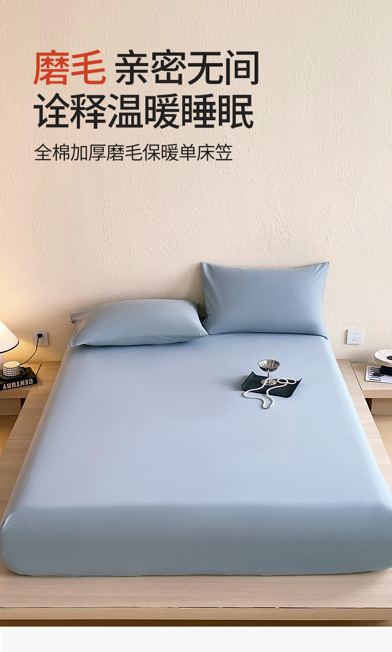 凯磊家纺 2025新款加厚磨毛纯色系列床笠 北极蓝