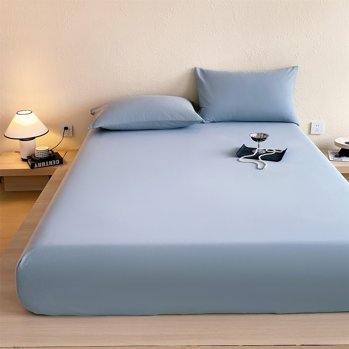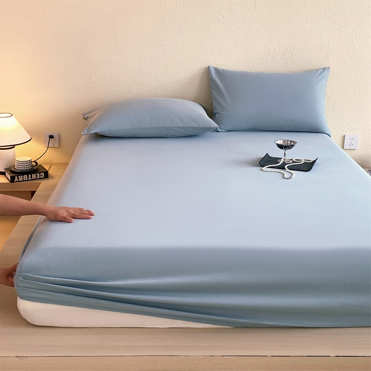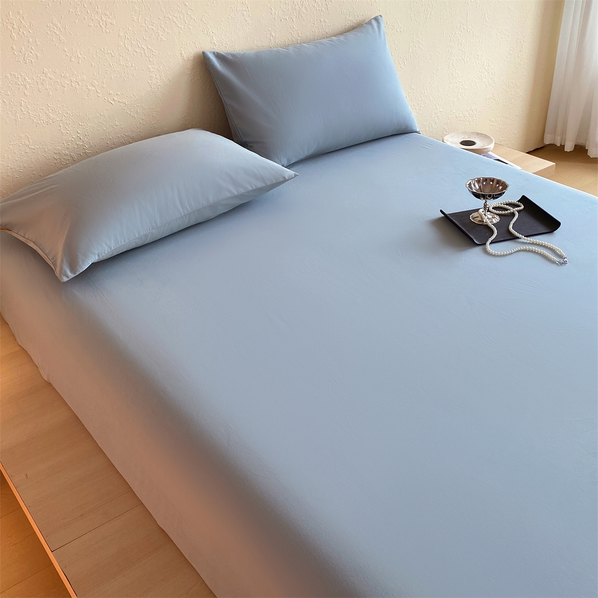 凯磊家纺 2025新款加厚磨毛纯色系列床笠 北极蓝