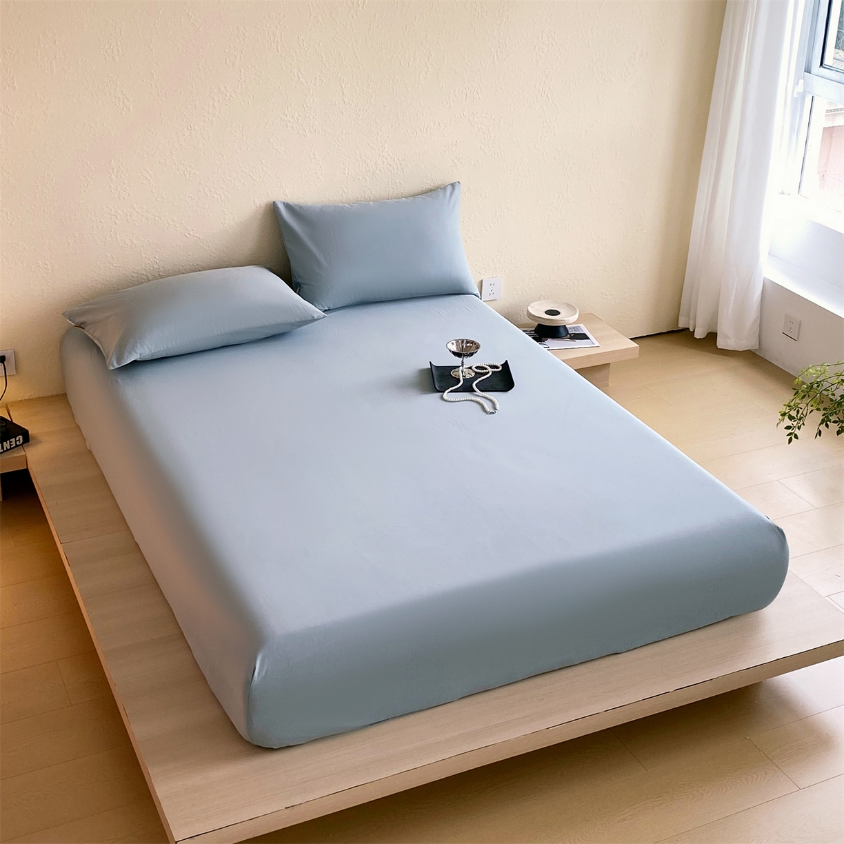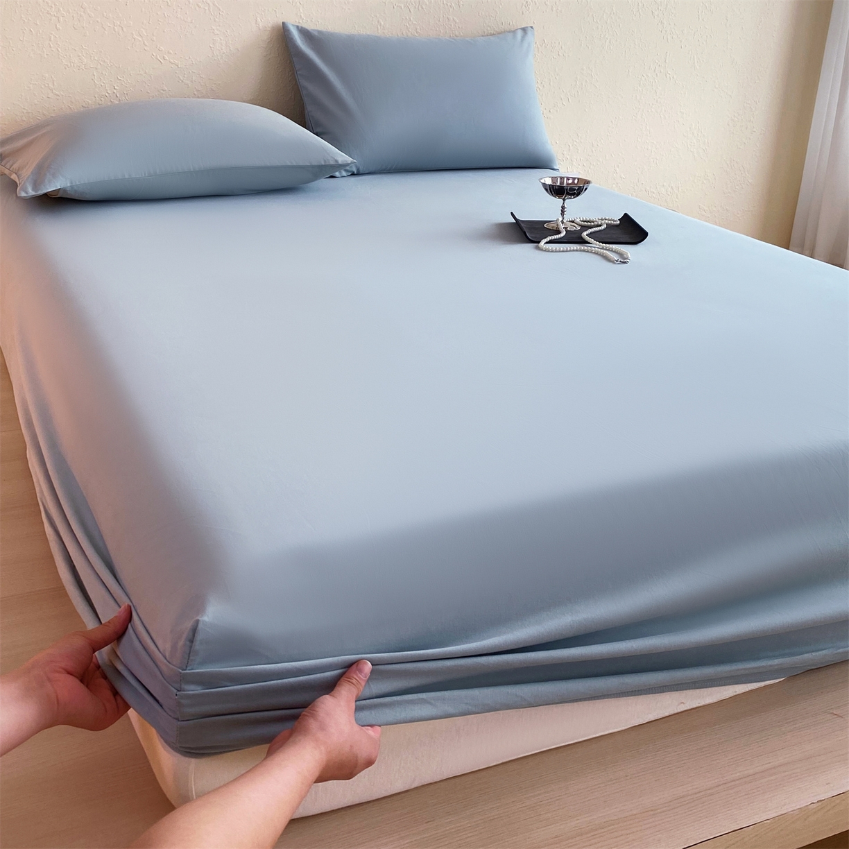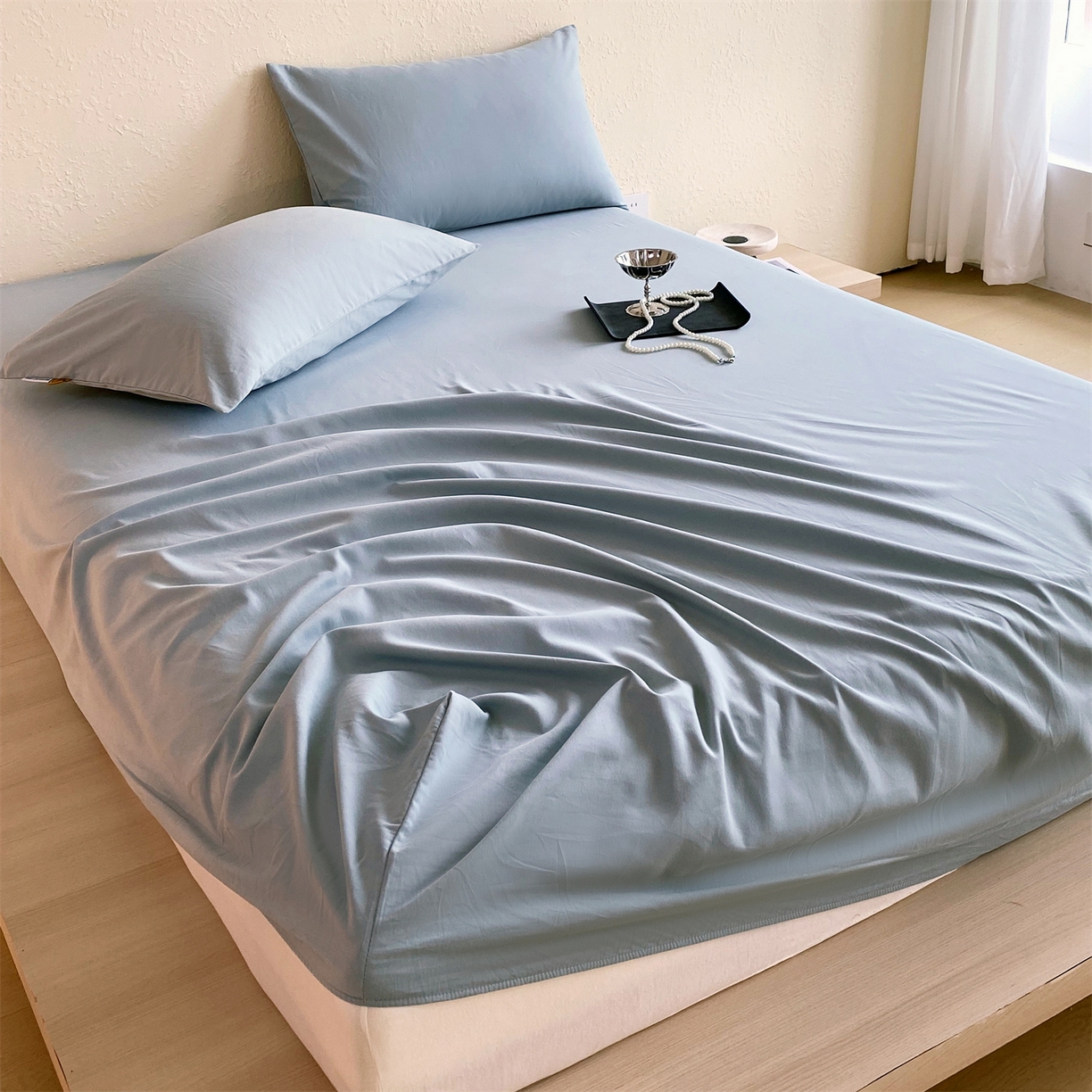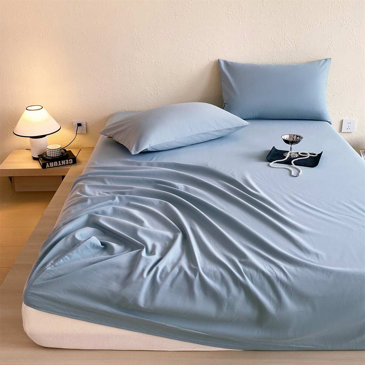 凯磊家纺 2025新款加厚磨毛纯色系列床笠 北极蓝