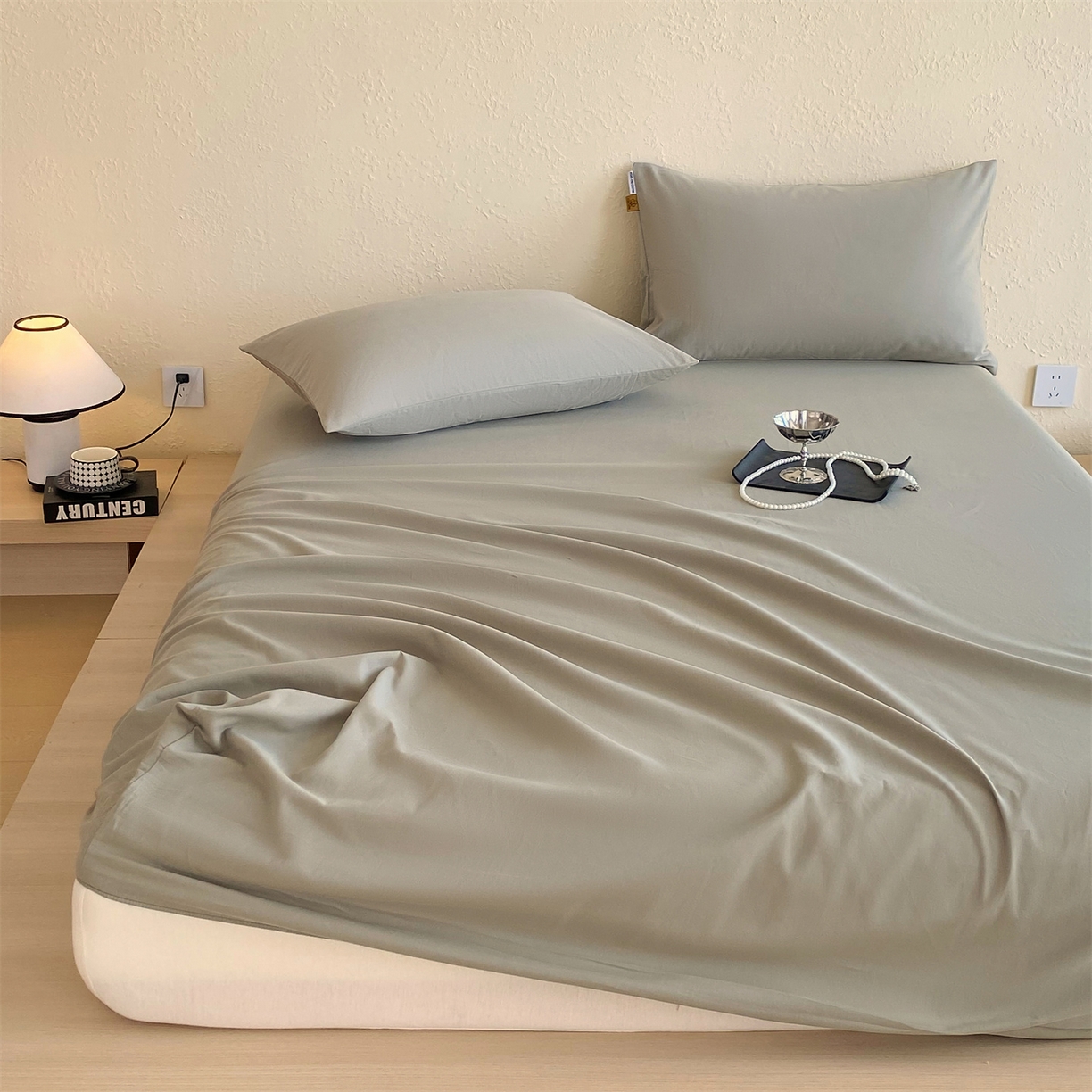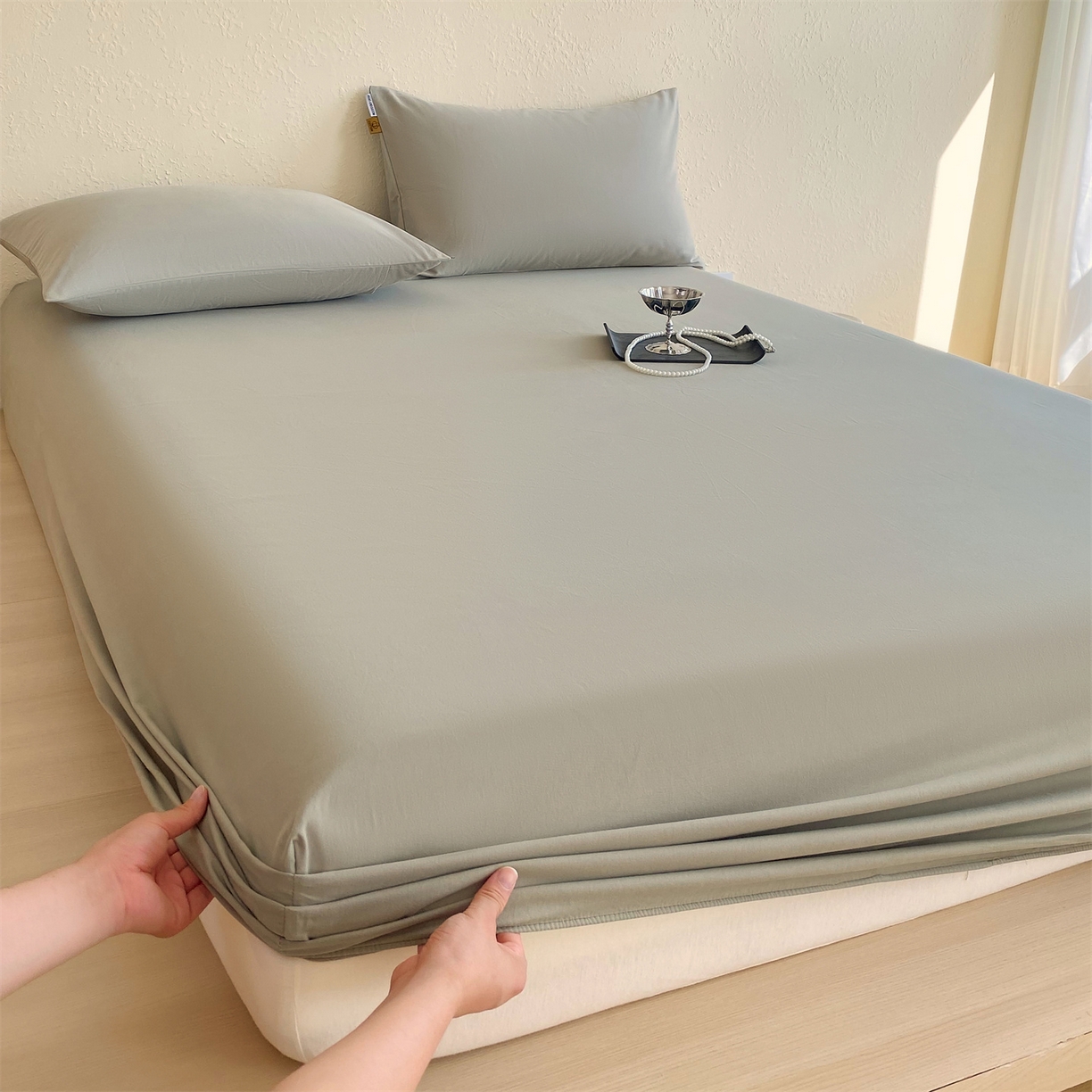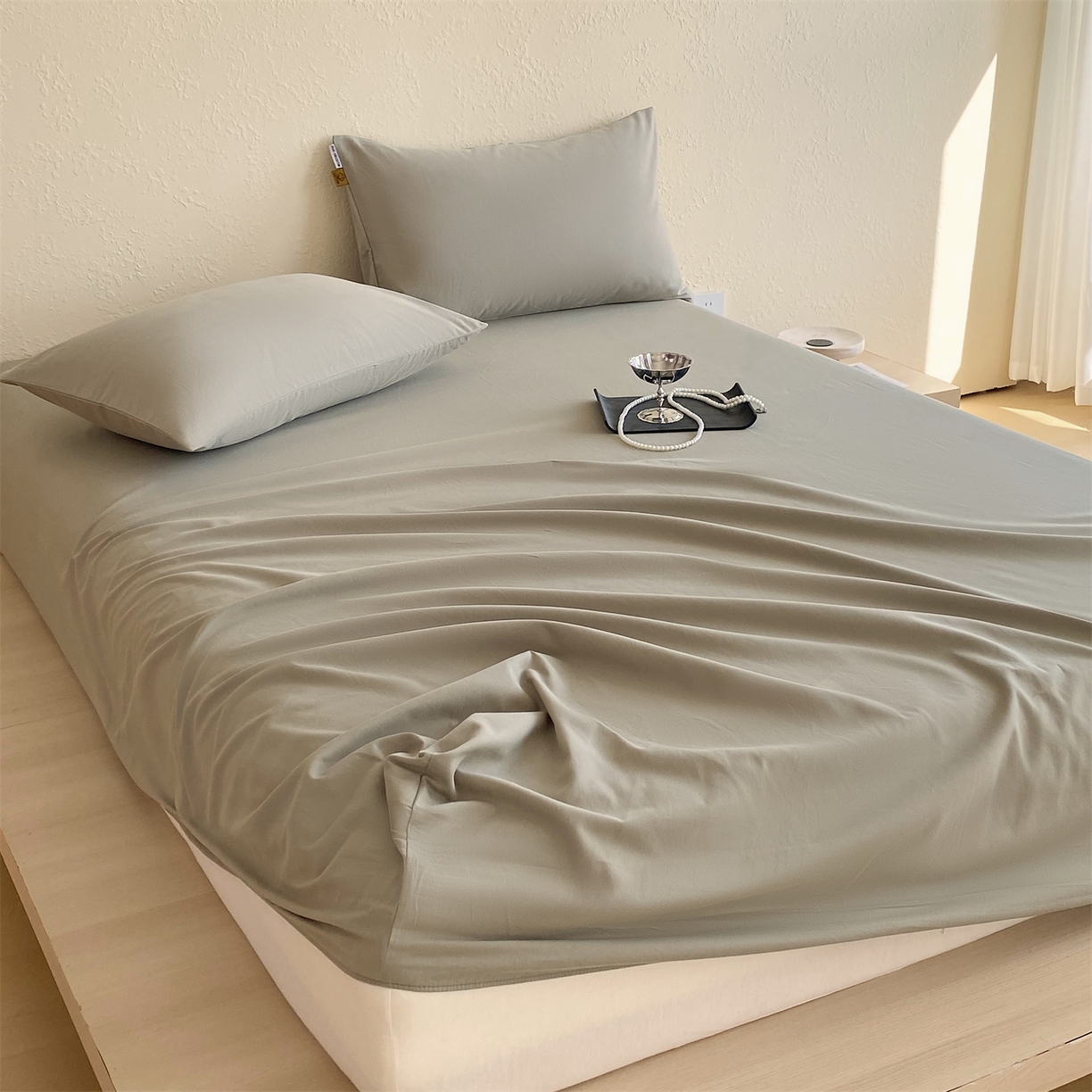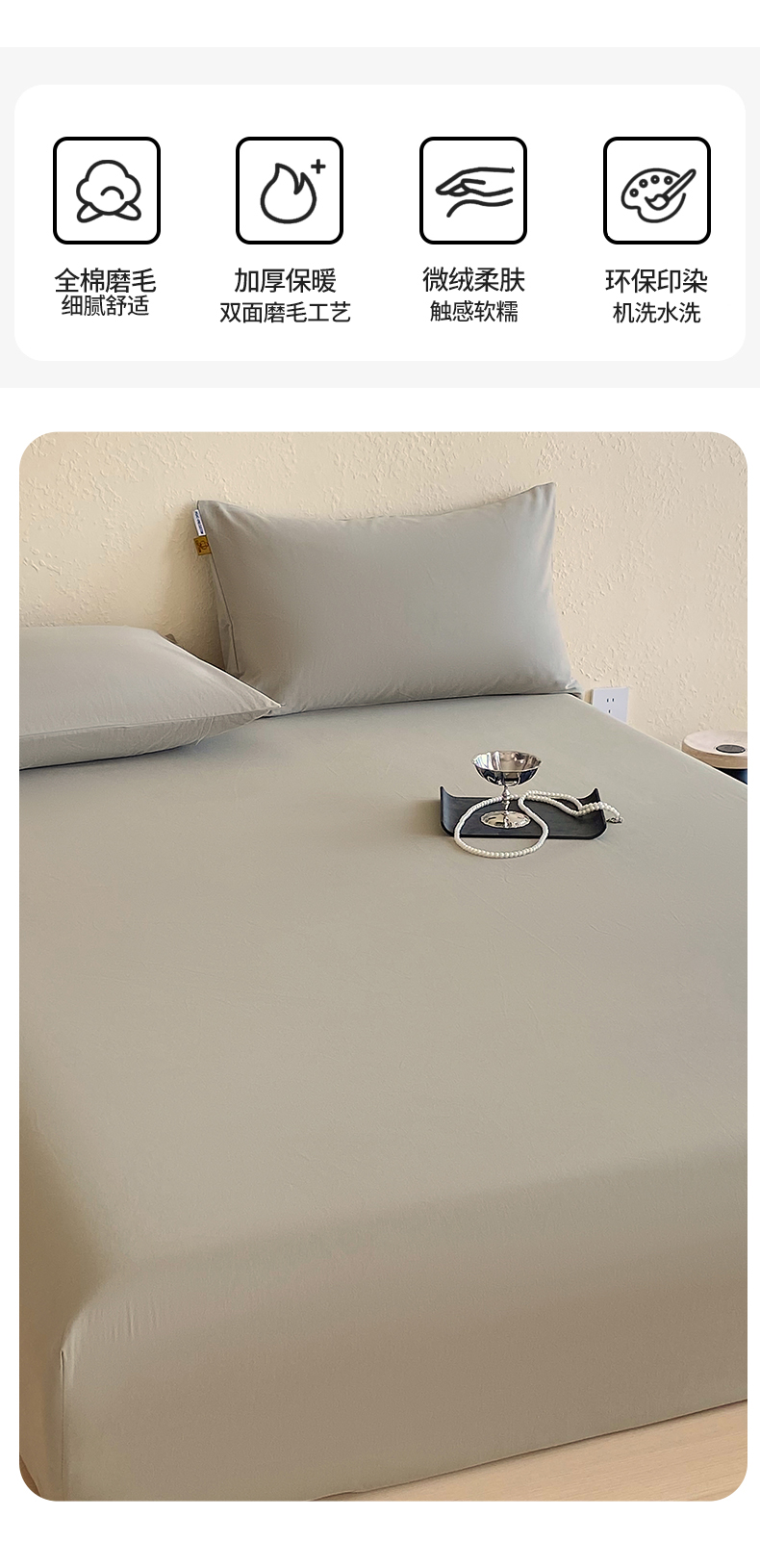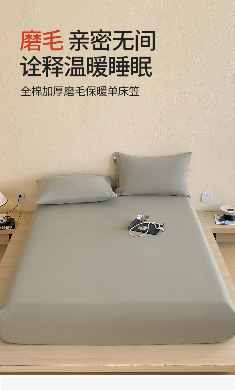 凯磊家纺 - 凯磊家纺 2025新款加厚磨毛纯色系列床笠 冰灿银