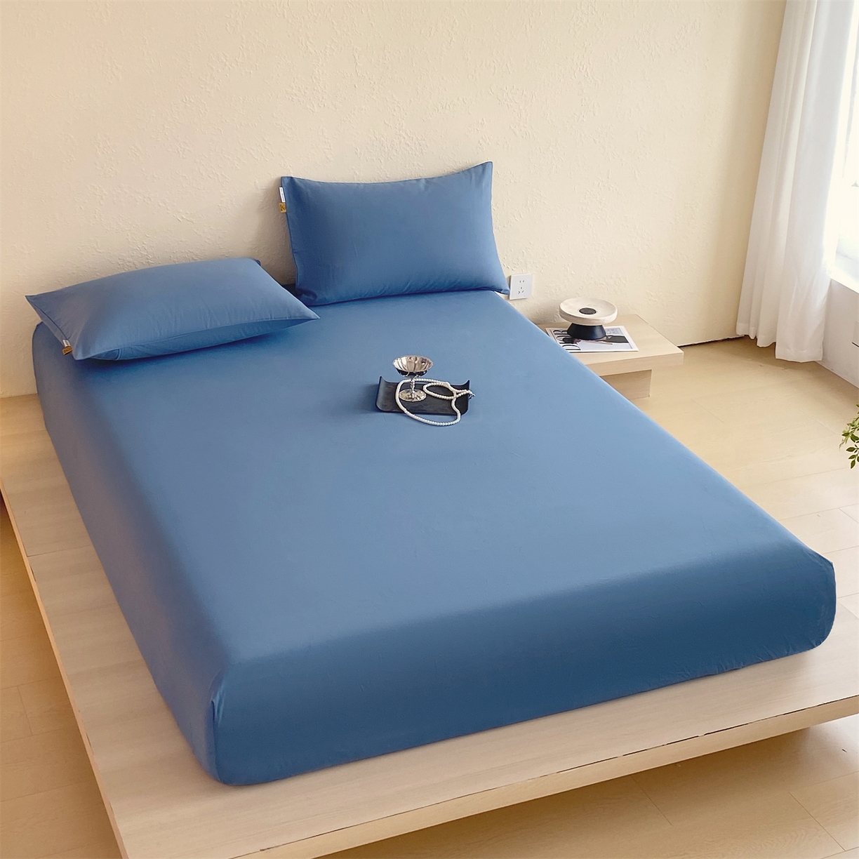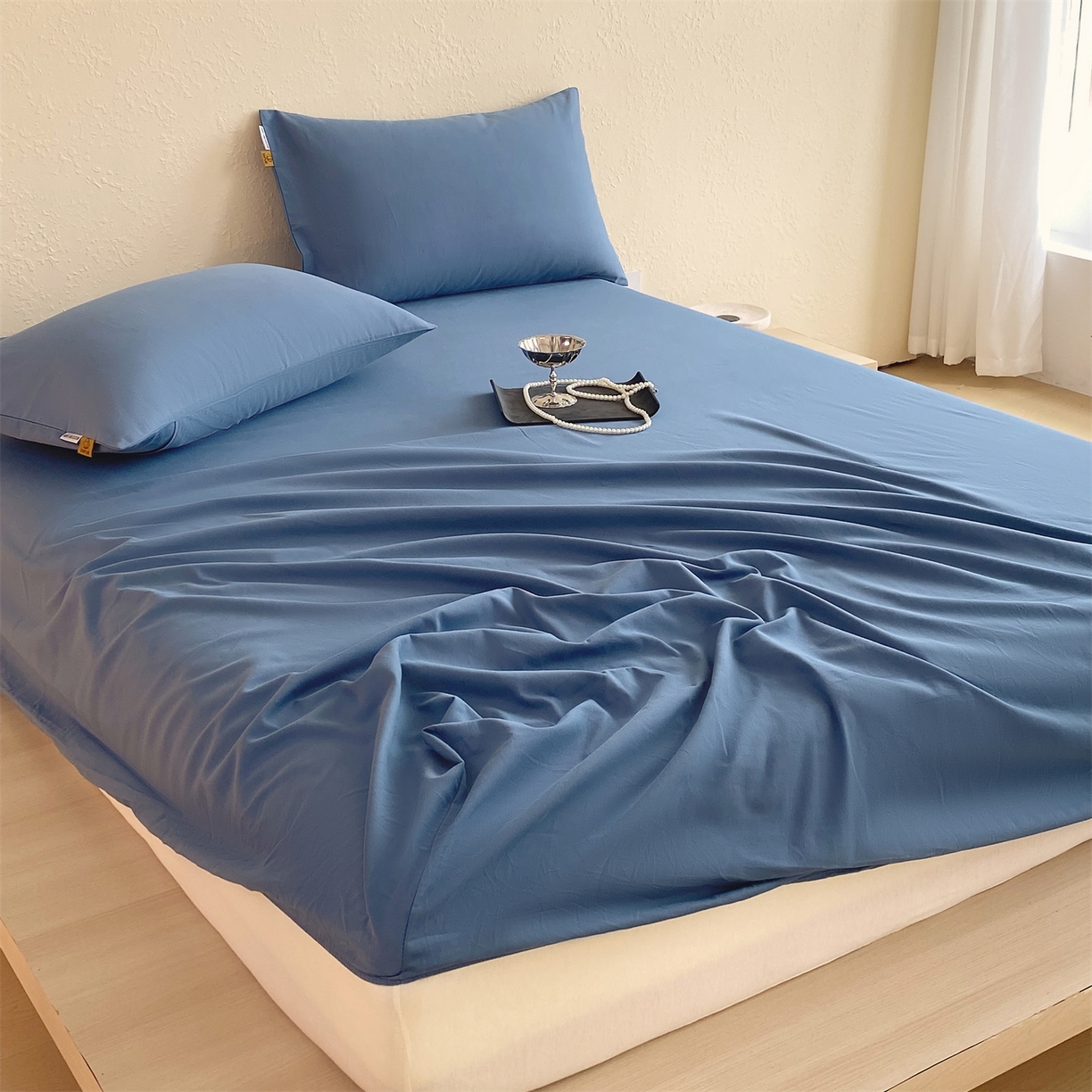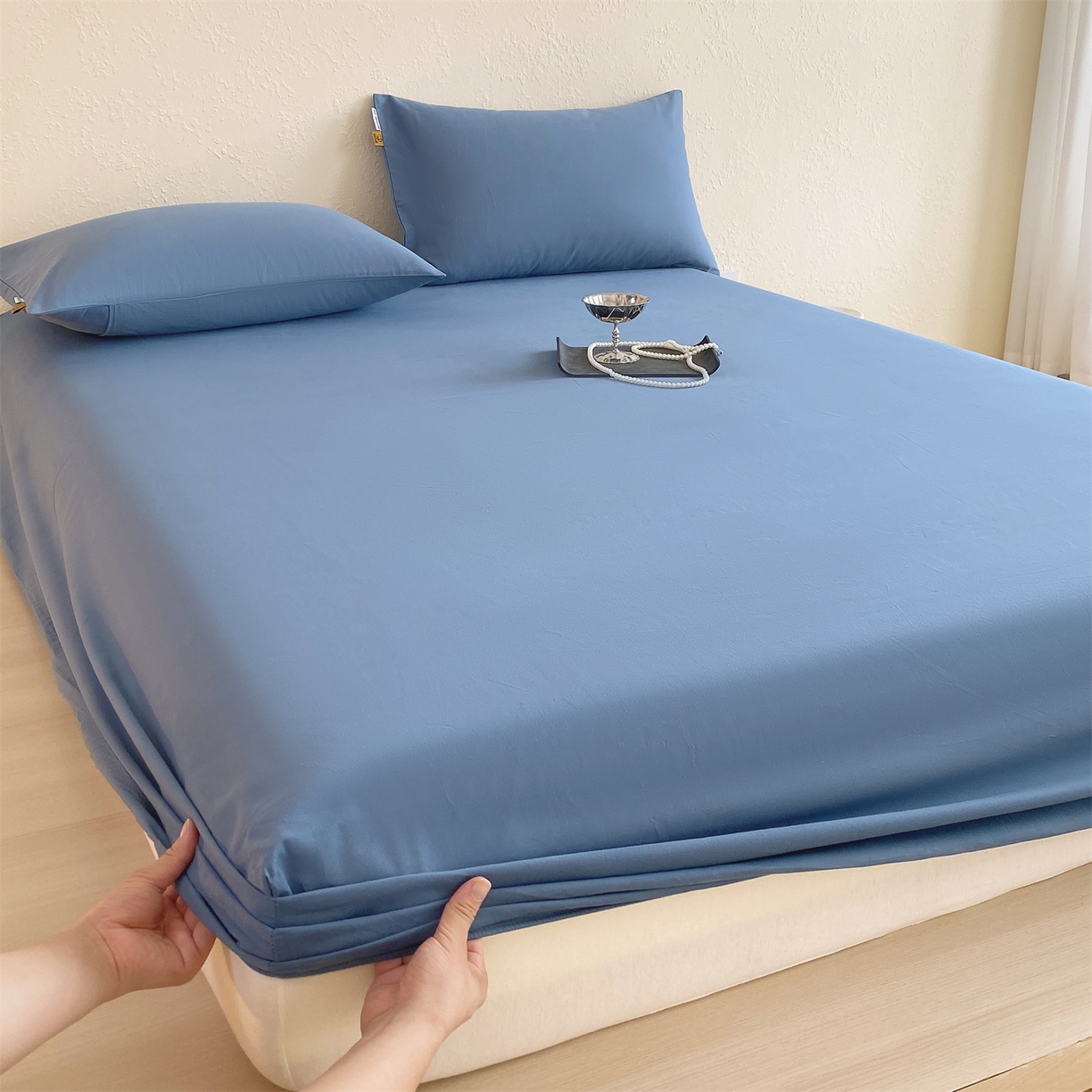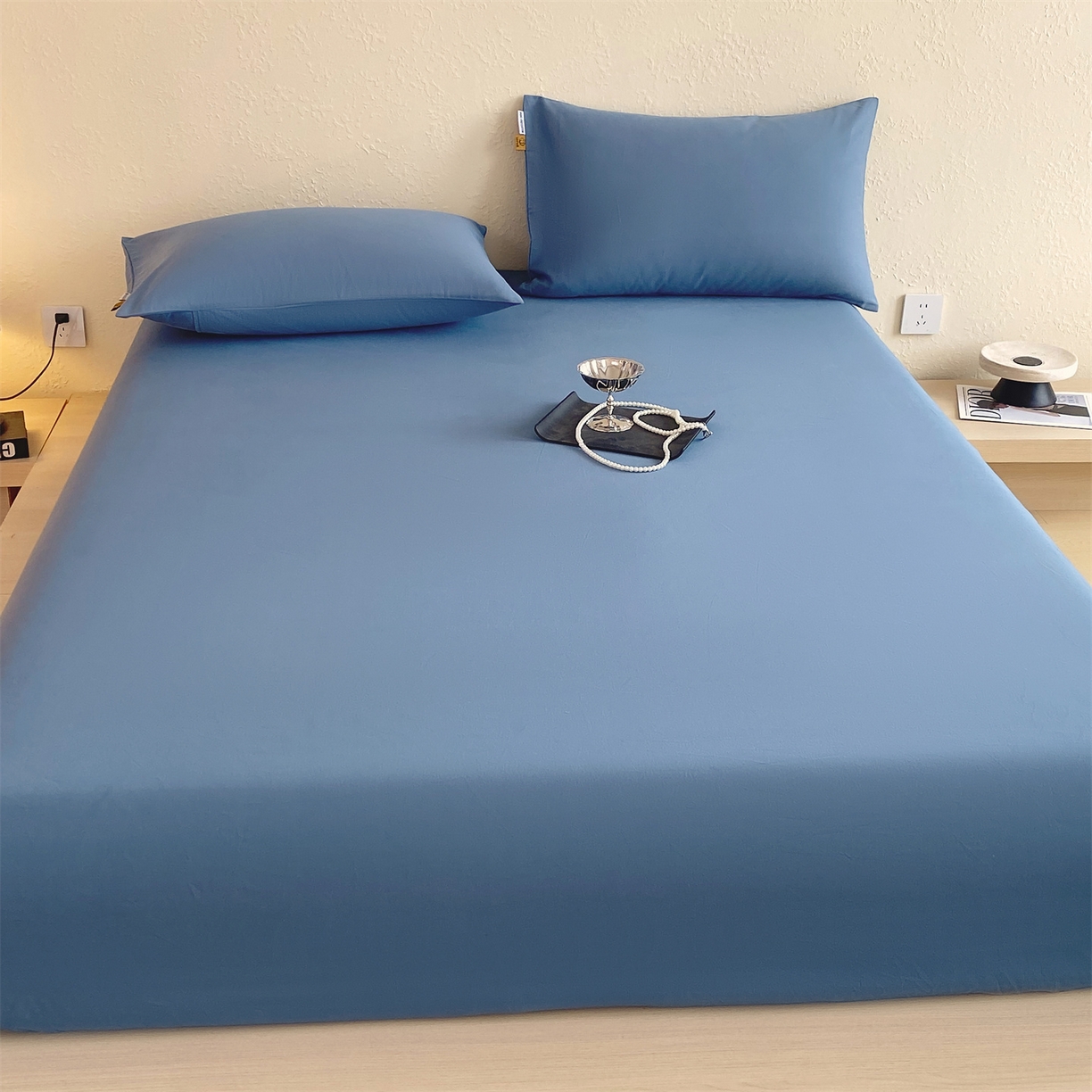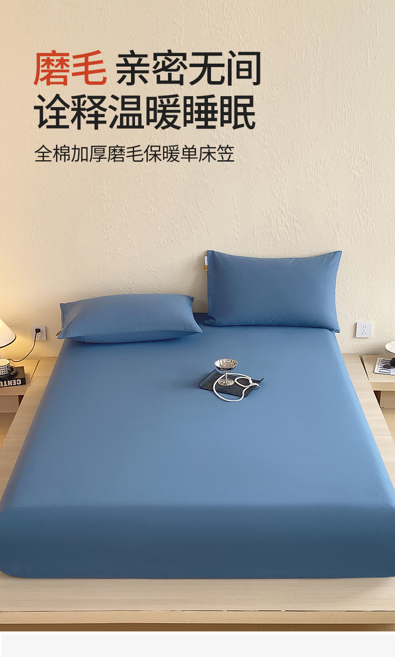 凯磊家纺 2025新款加厚磨毛纯色系列床笠 魅影蓝