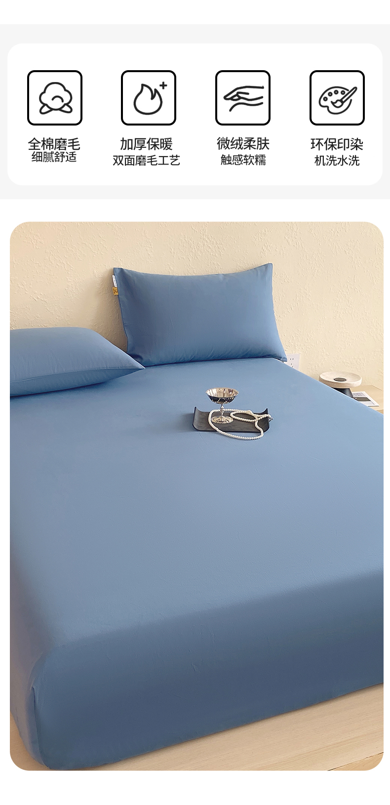 凯磊家纺 - 凯磊家纺 2025新款加厚磨毛纯色系列床笠 魅影蓝