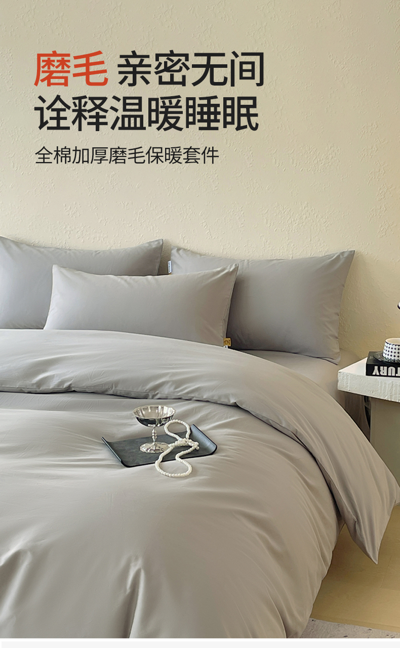 当前位置:凯磊家纺 > 凯磊家纺 2025新款加厚磨毛纯色系列四件套 冰灿银