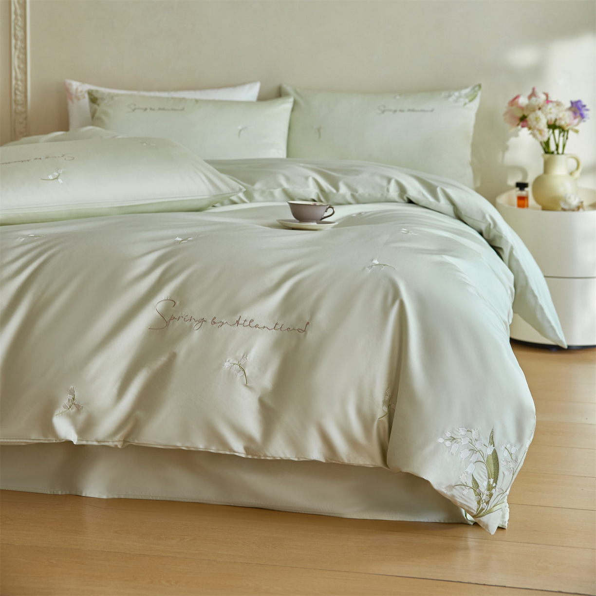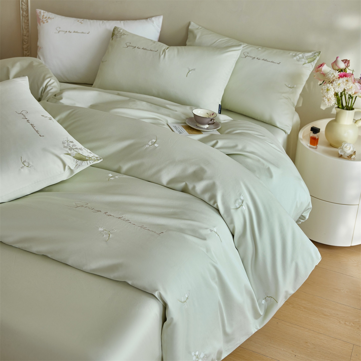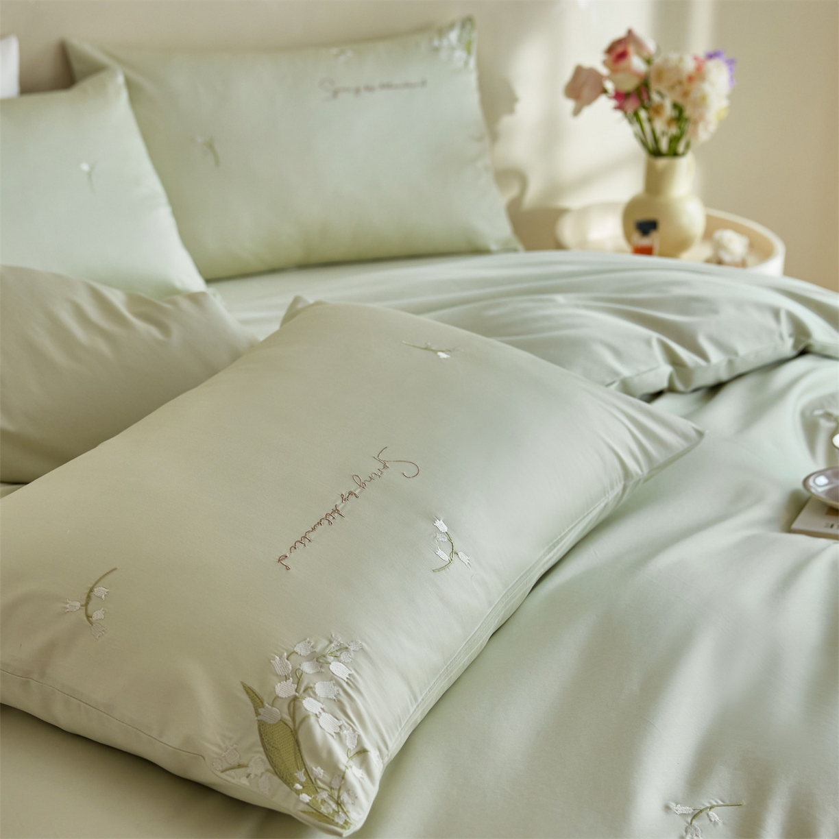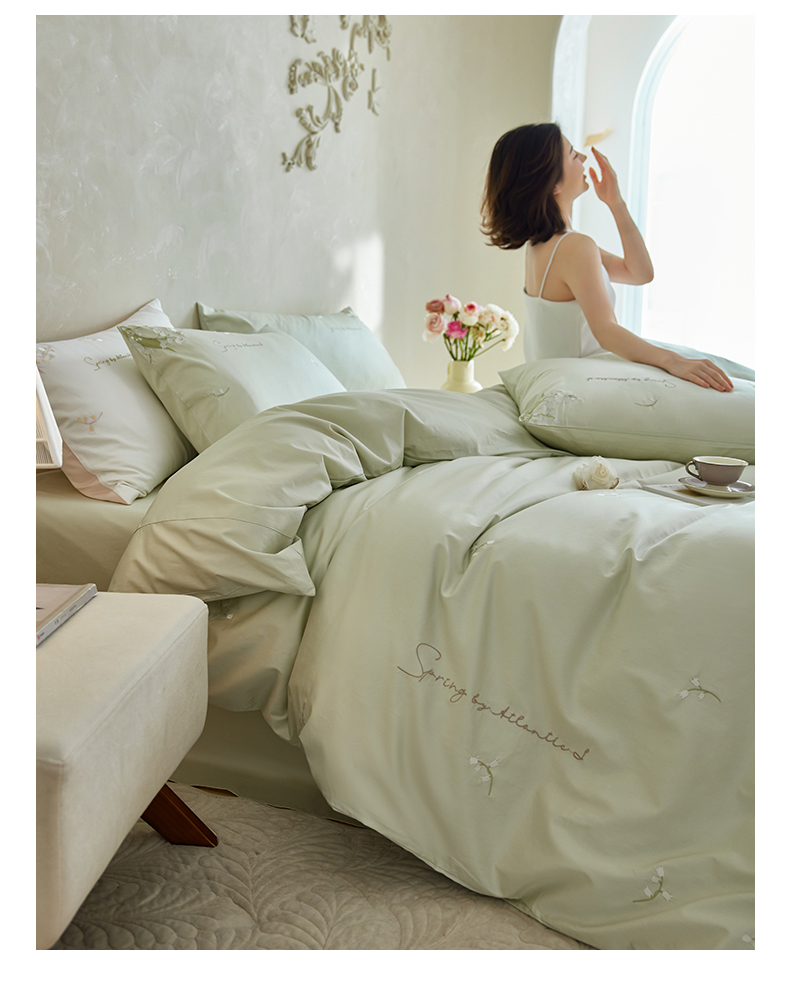凯磊家纺 2026新款全棉纯棉刺绣四件套-铃兰花 铃兰花-清新绿