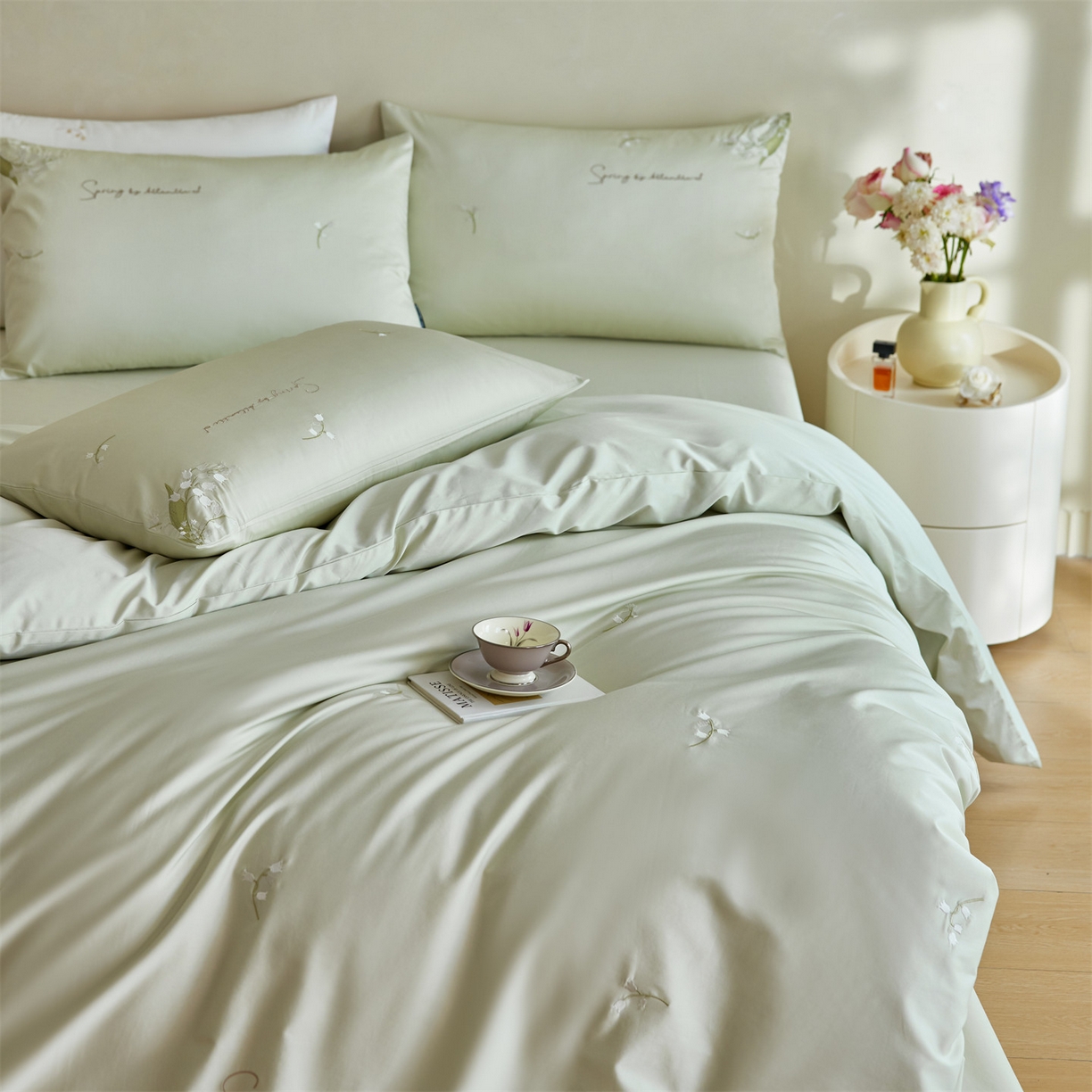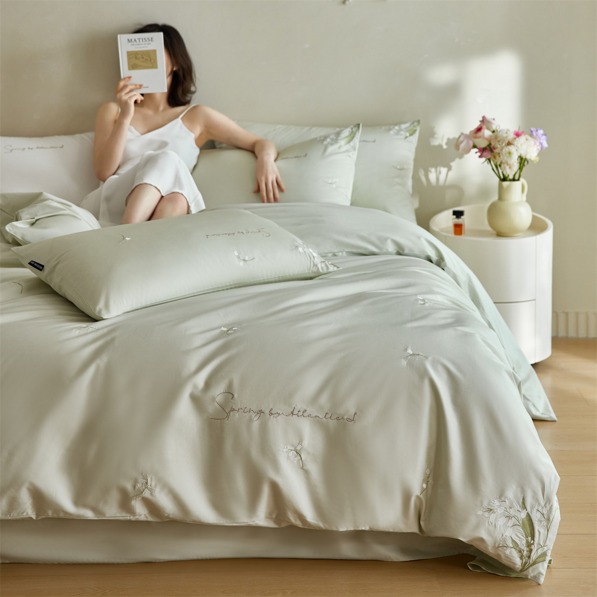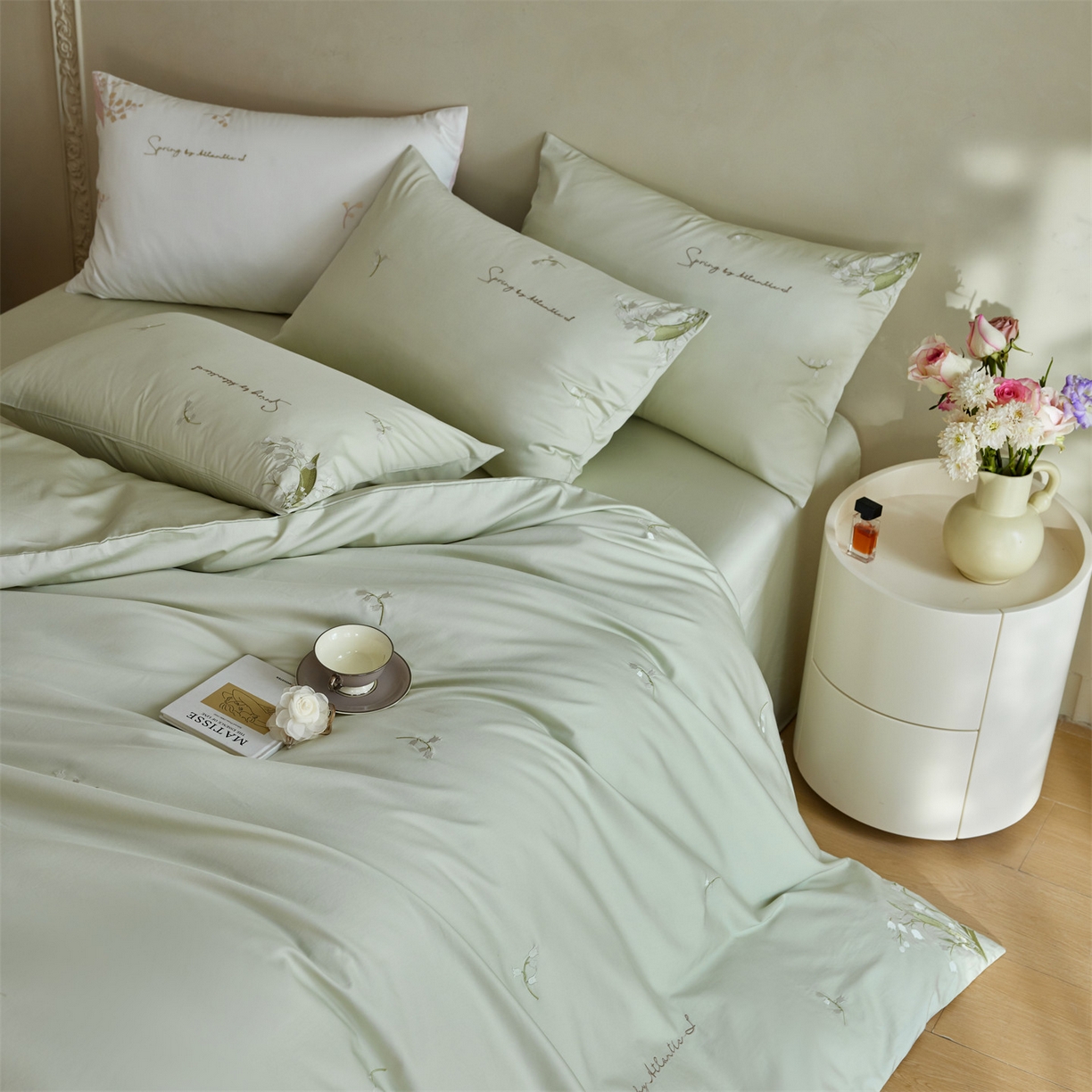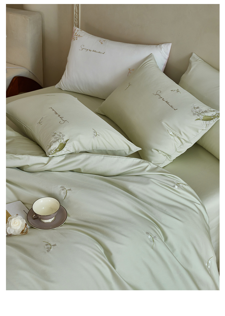凯磊家纺 2026新款全棉纯棉刺绣四件套-铃兰花 铃兰花-清新绿