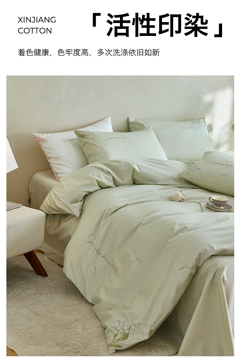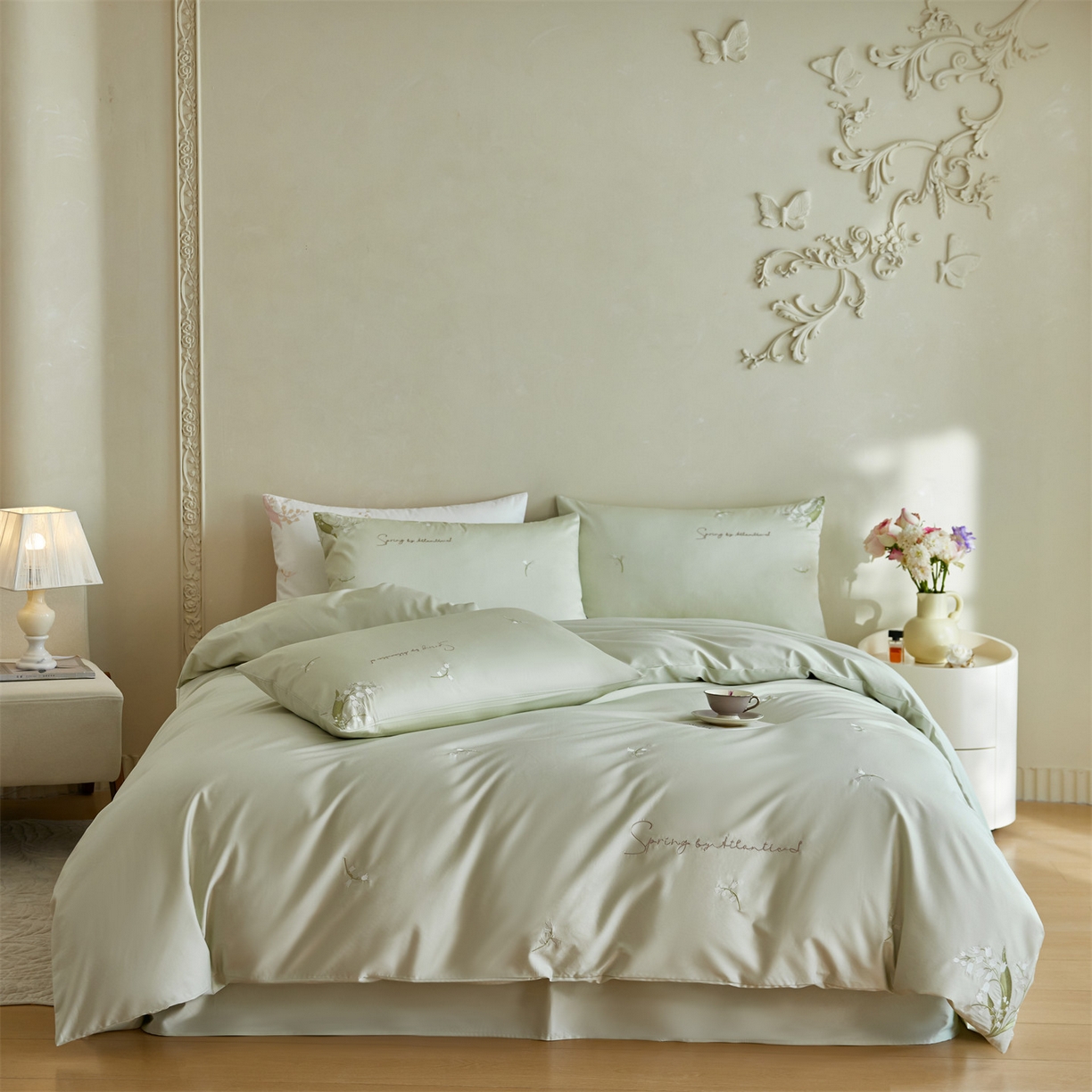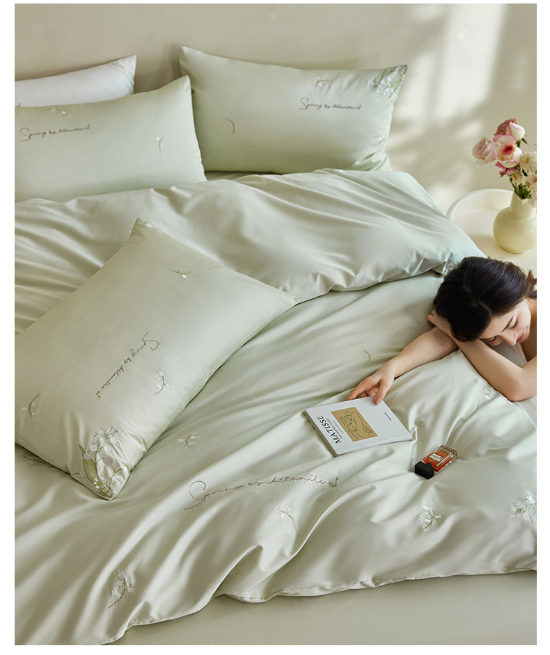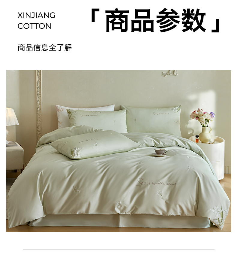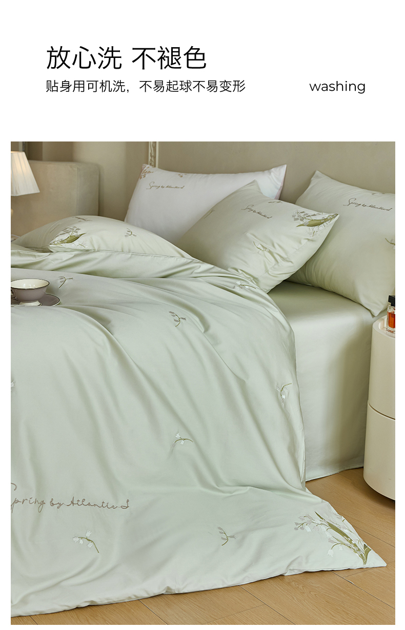 凯磊家纺 2026新款全棉纯棉刺绣四件套-铃兰花 铃兰花-清新绿