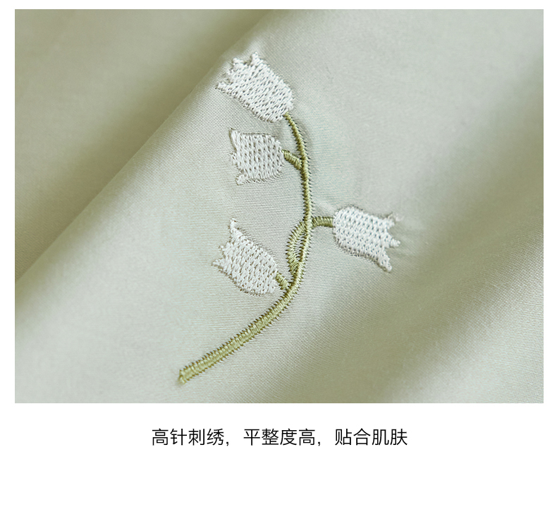 > 凯磊家纺 2026新款全棉纯棉刺绣四件套-铃兰花 铃兰花-清新绿