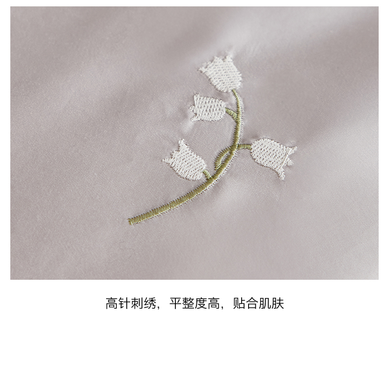 > 凯磊家纺 2026新款全棉纯棉刺绣四件套-铃兰花 铃兰花-优雅紫