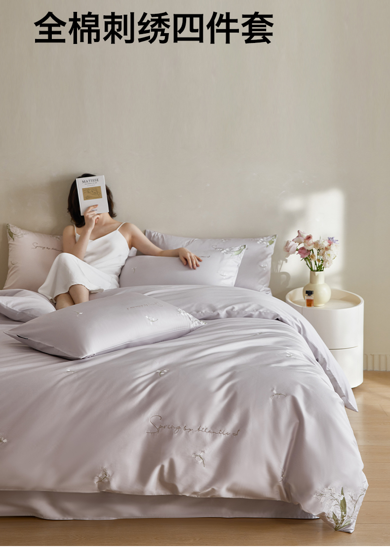 凯磊家纺 2026新款全棉纯棉刺绣四件套-铃兰花 铃兰花-优雅紫