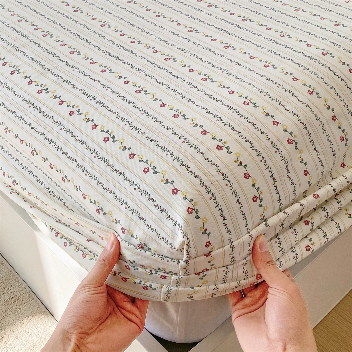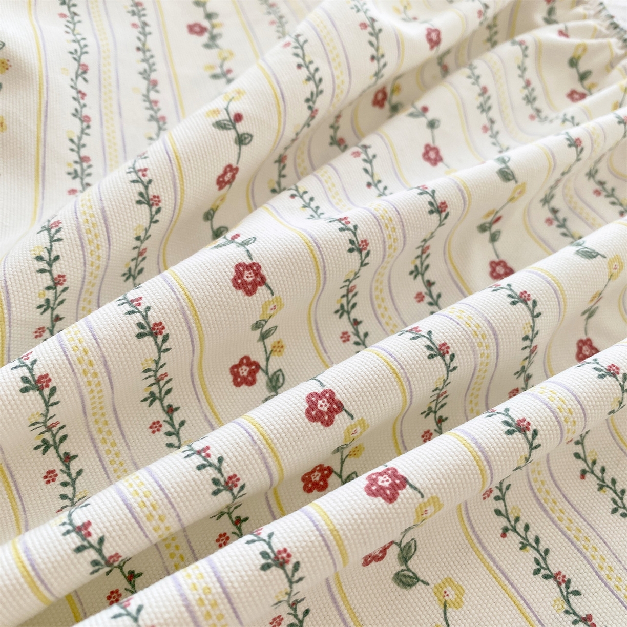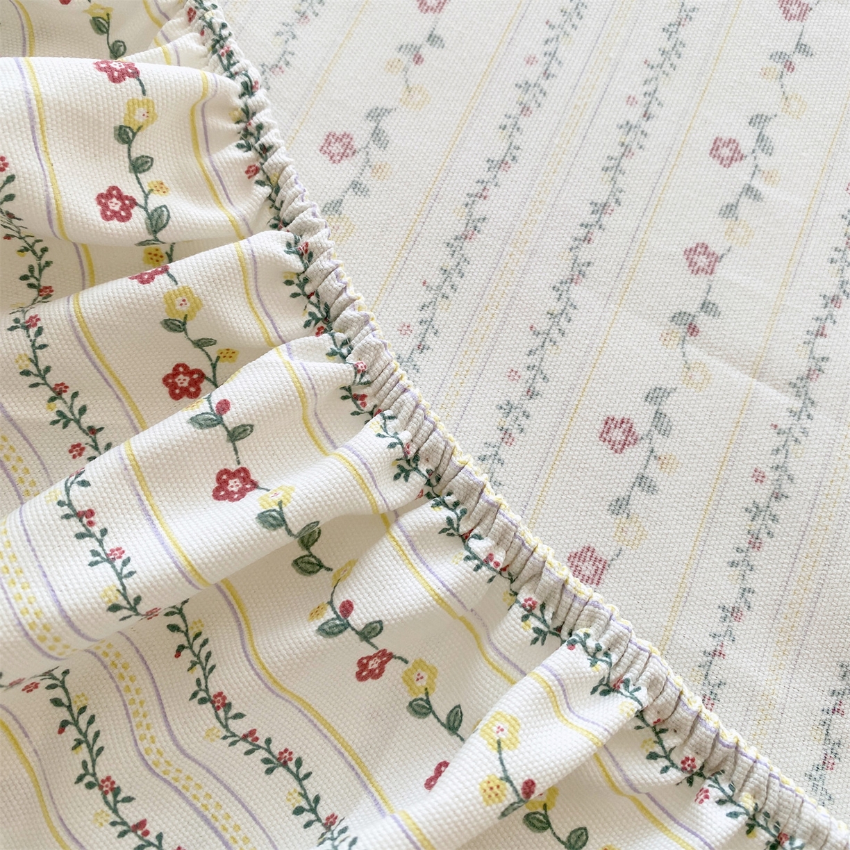 > 凯磊家纺 2026春夏新款原棉老粗布床笠款空调软席凉席席子 恬梦花开