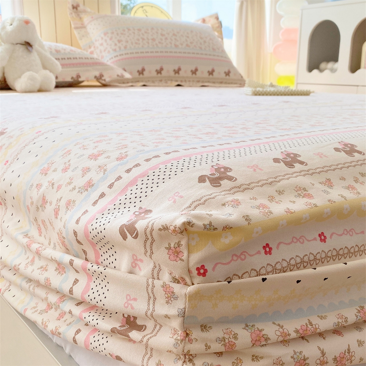 > 凯磊家纺 2026春夏新款原棉老粗布床笠款空调软席凉席席子 甜心小马