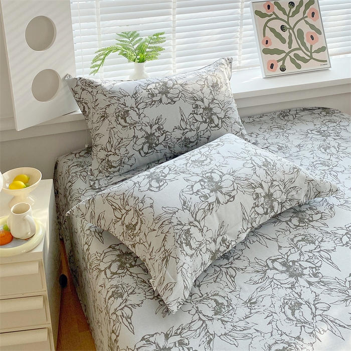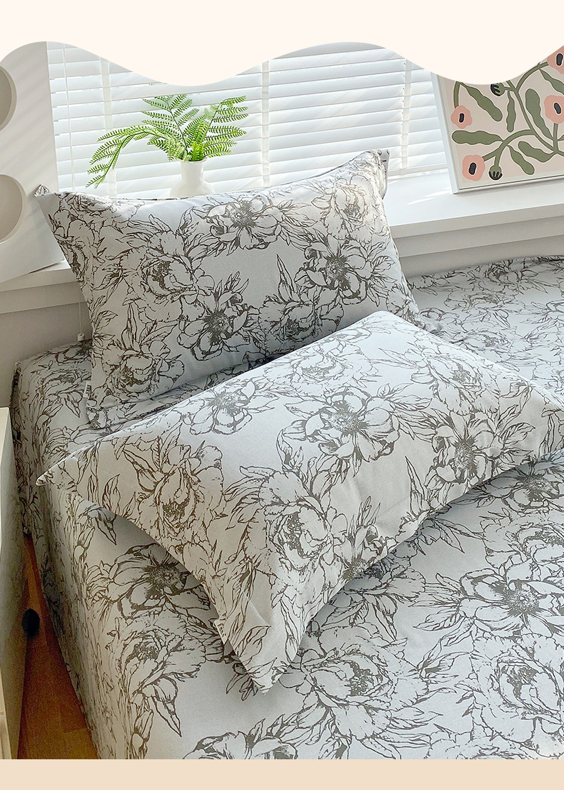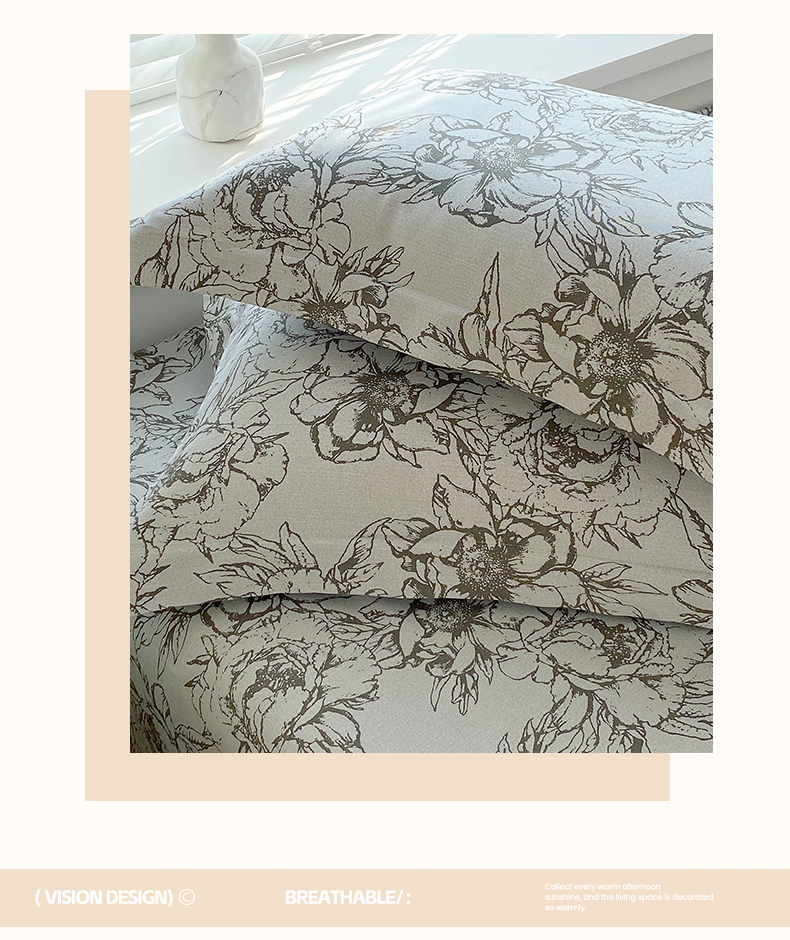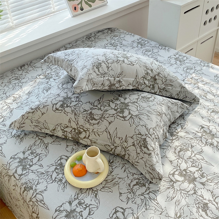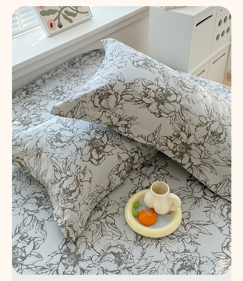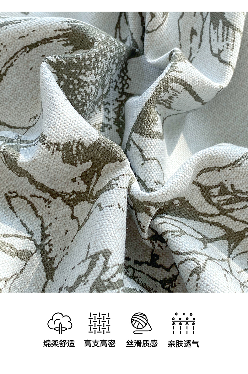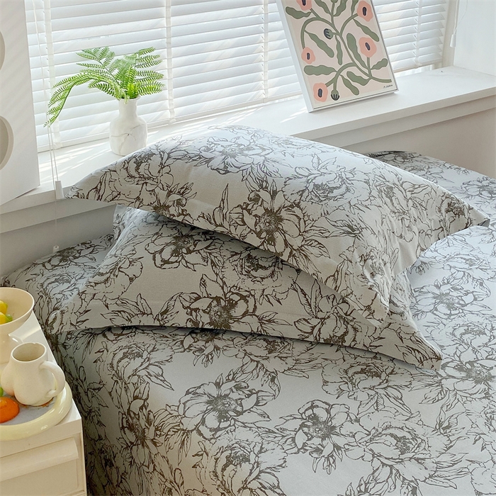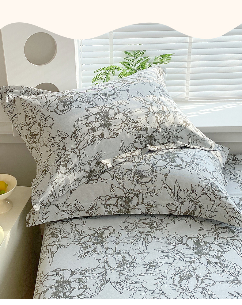 > 凯磊家纺 2026春夏新款原棉老粗布单枕套 枕套单件 灰调花影