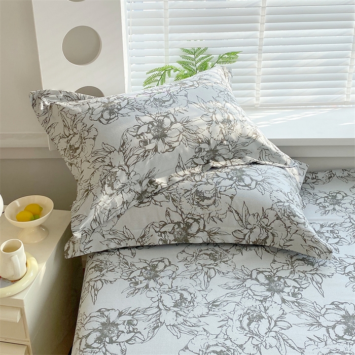 凯磊家纺 2026春夏新款原棉老粗布单枕套 枕套单件 灰调花影