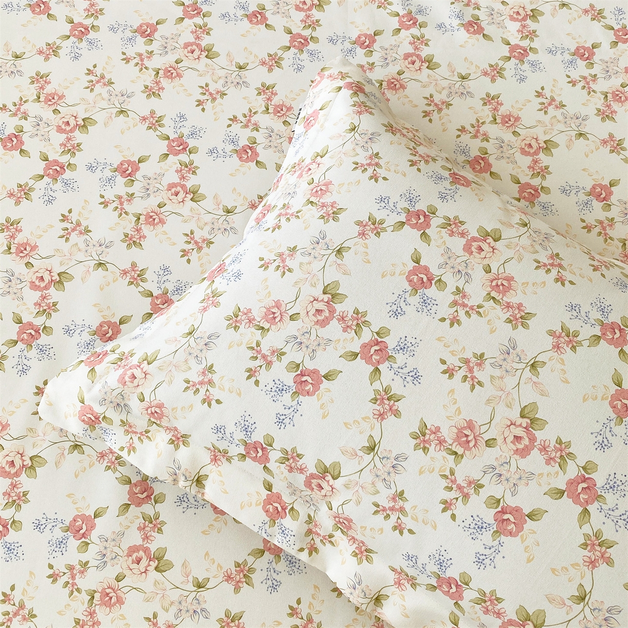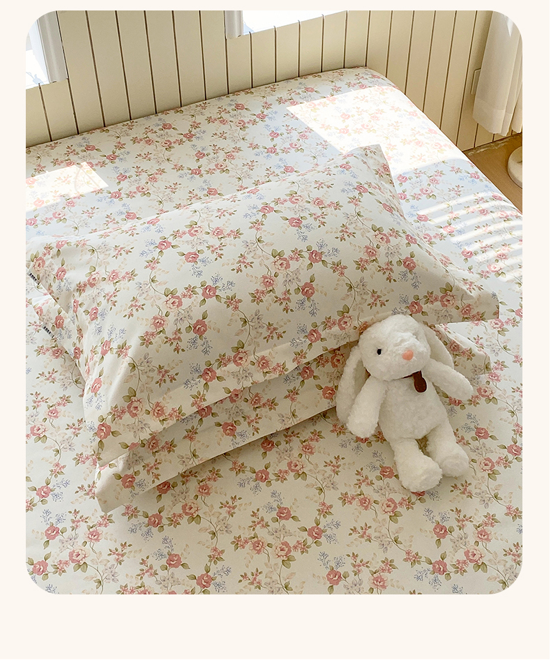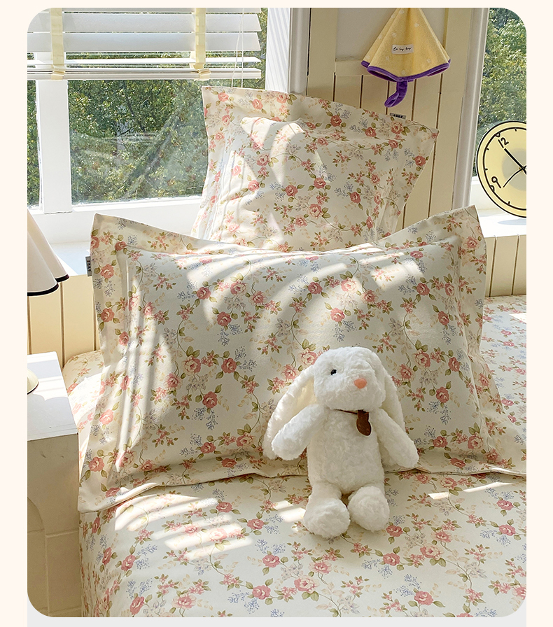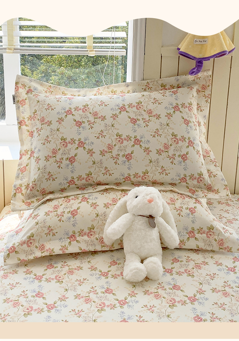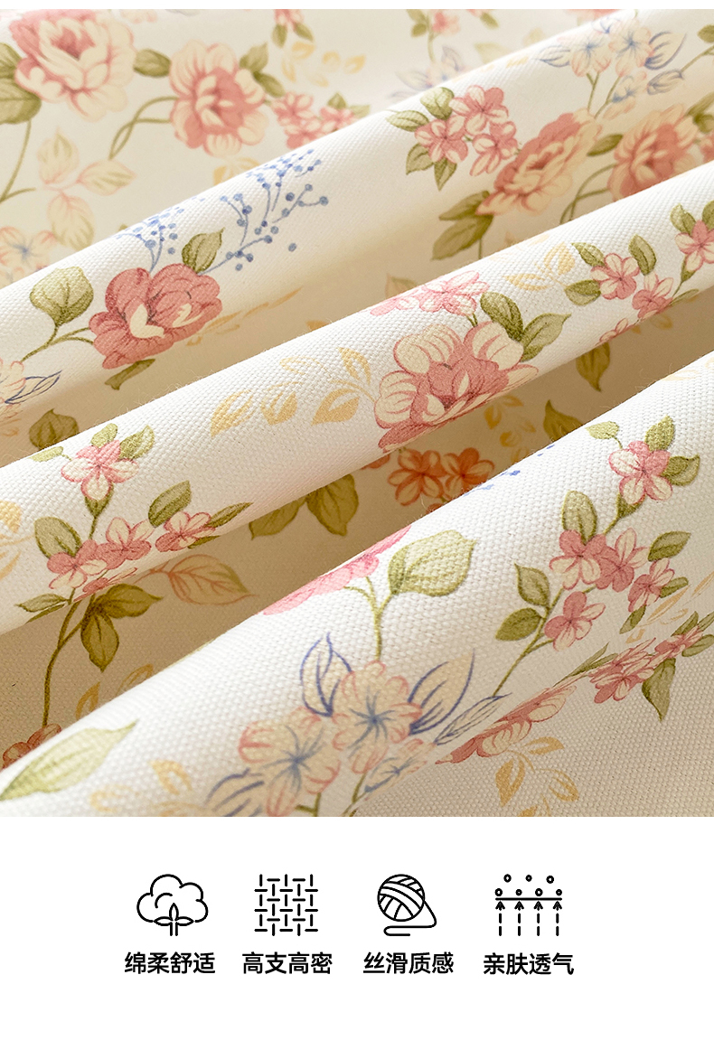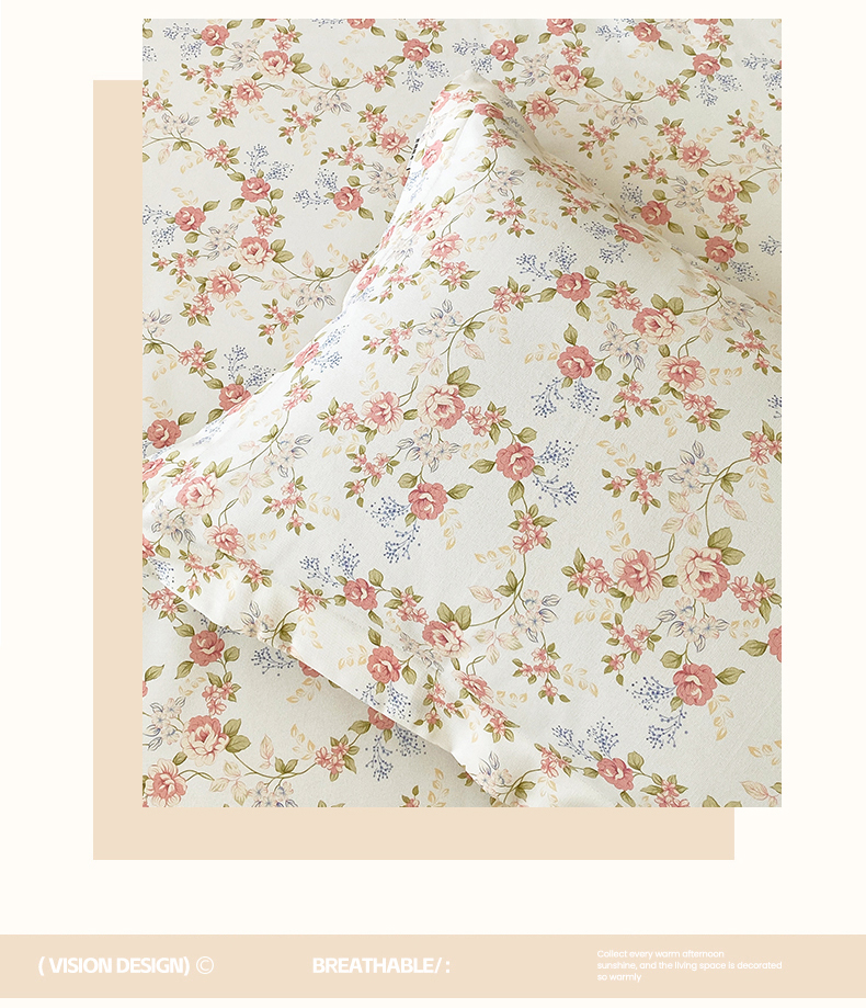 > 凯磊家纺 2026春夏新款原棉老粗布单枕套 枕套单件 浅夏花影