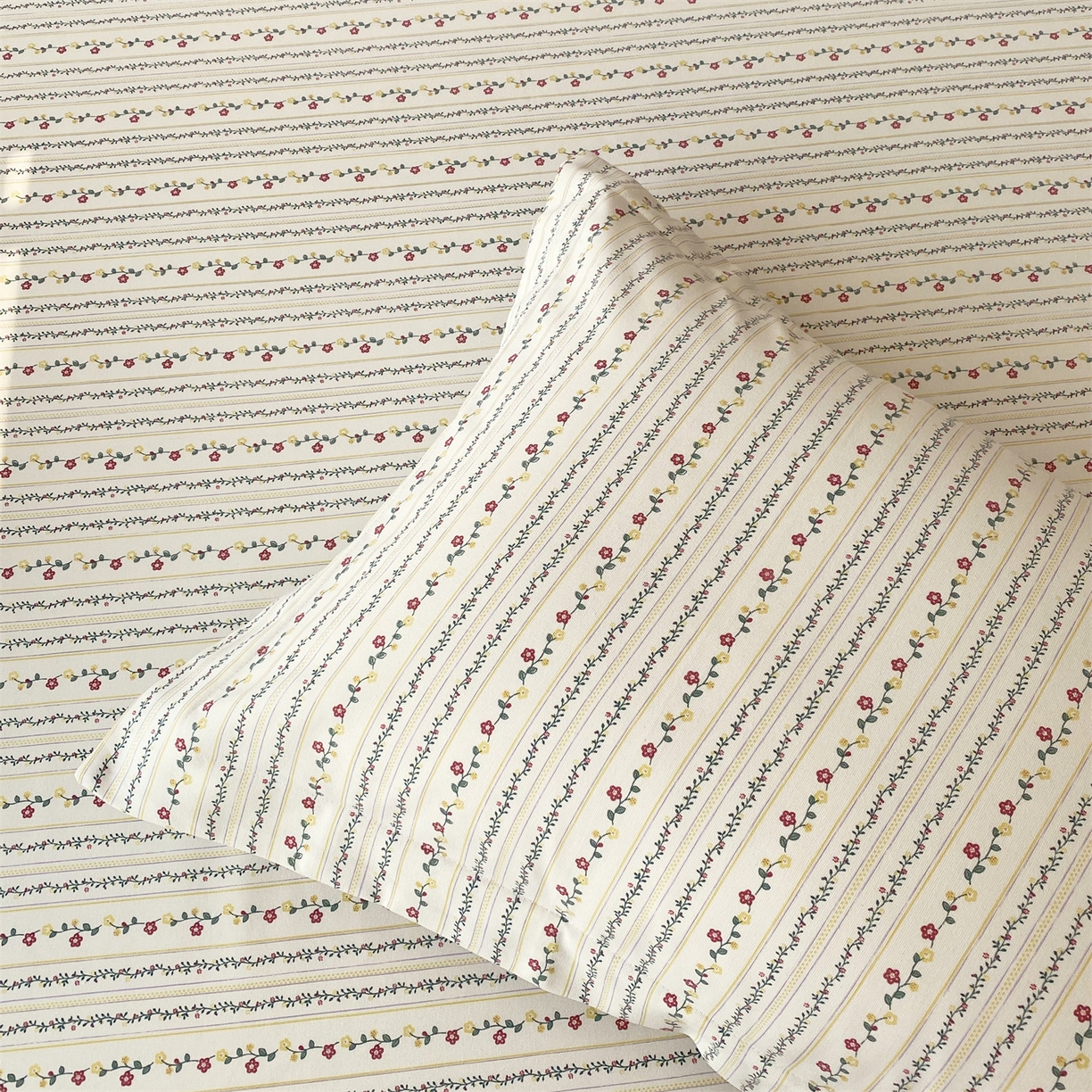 > 凯磊家纺 2026春夏新款原棉老粗布单枕套 枕套单件 恬梦花开