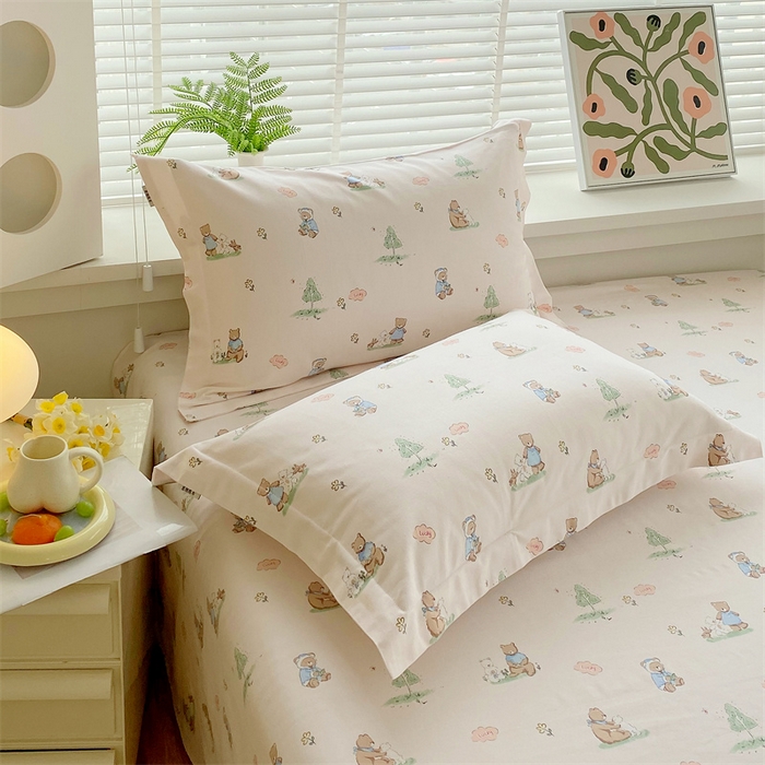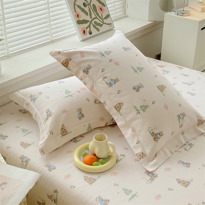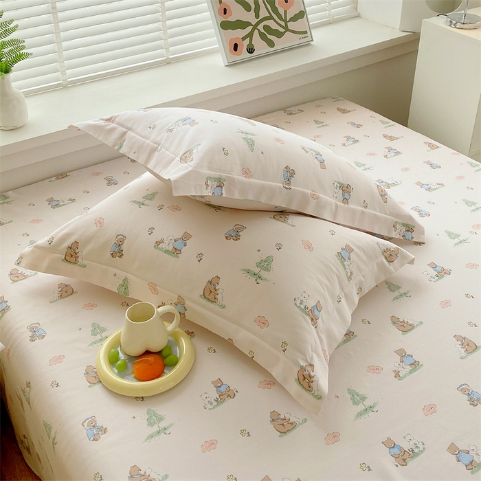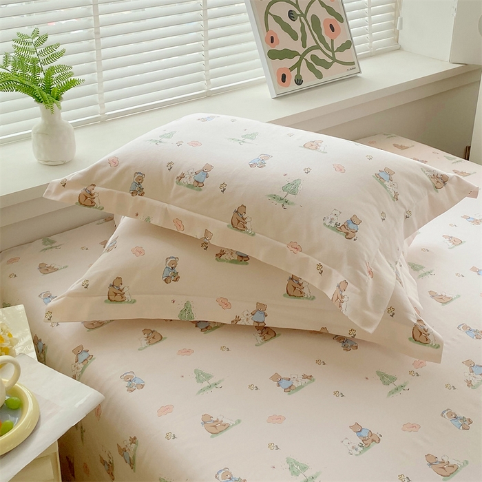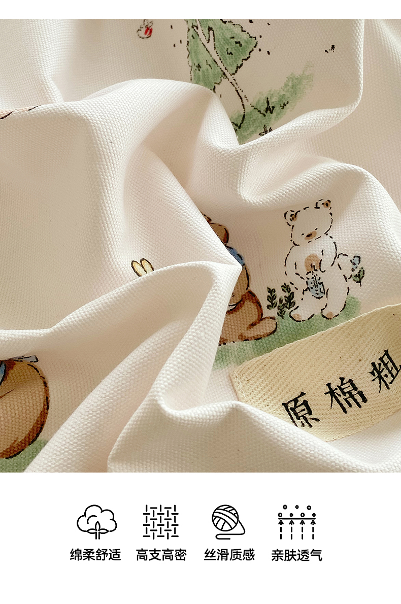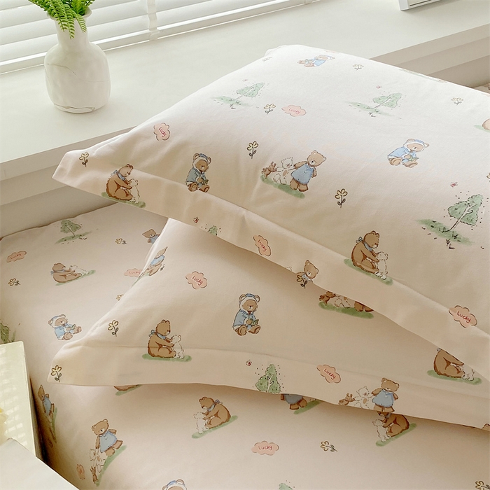 凯磊家纺 2026春夏新款原棉老粗布单枕套 枕套单件 小熊漫居