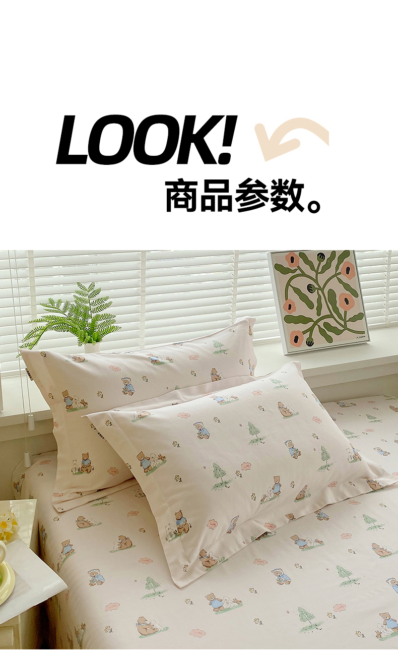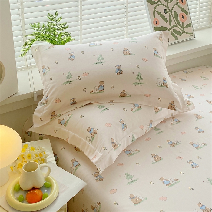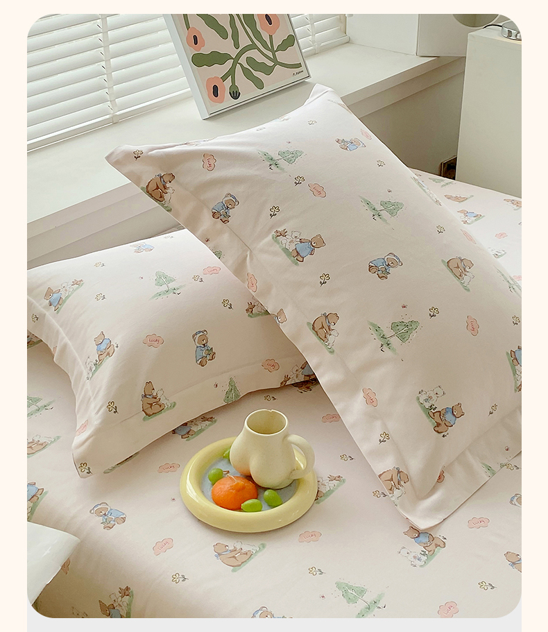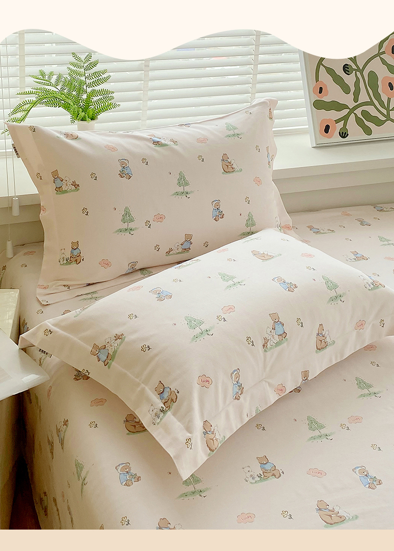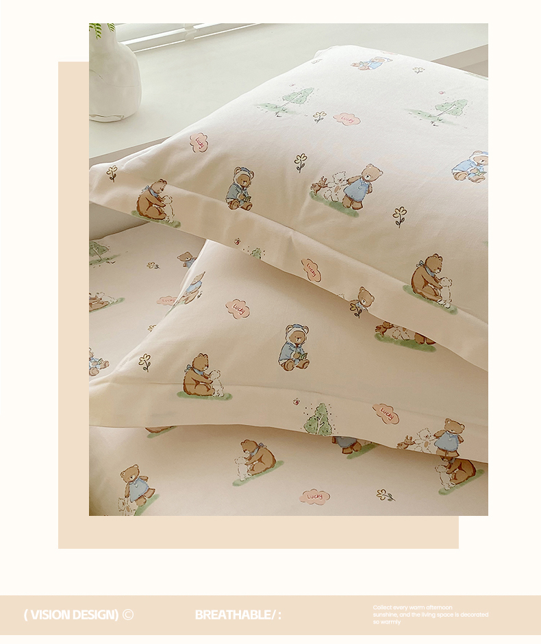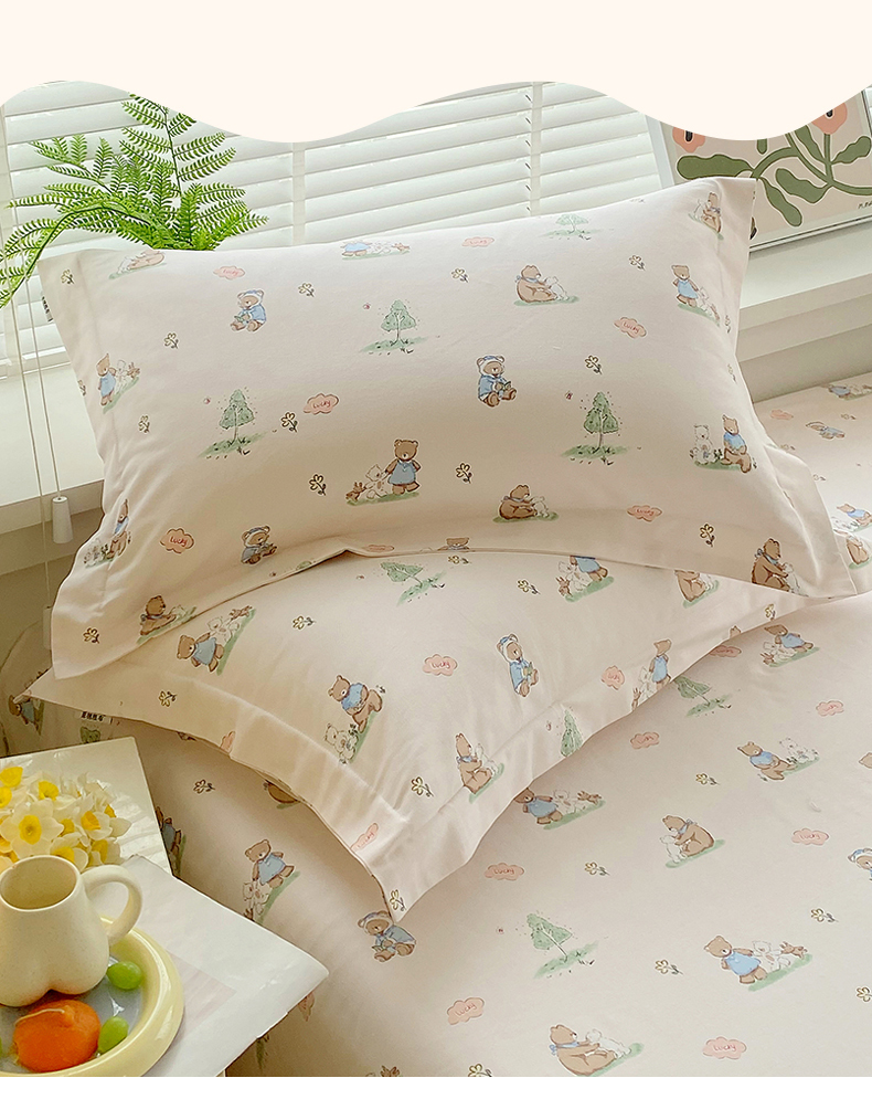 > 凯磊家纺 2026春夏新款原棉老粗布单枕套 枕套单件 小熊漫居
