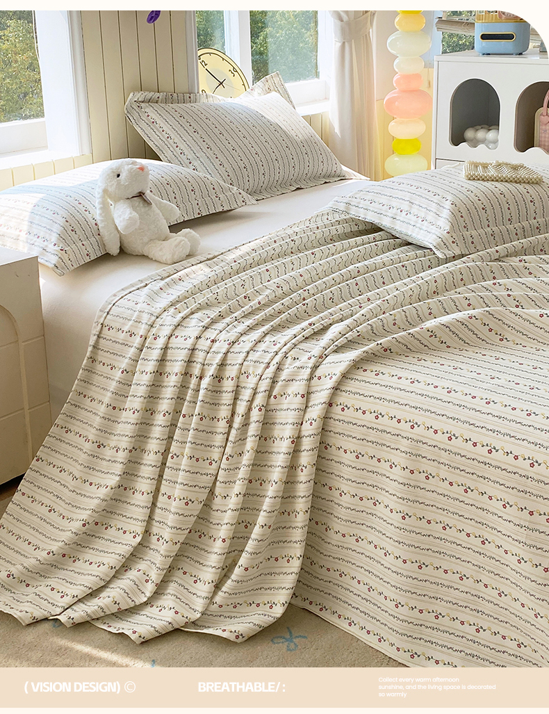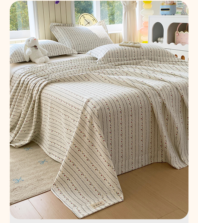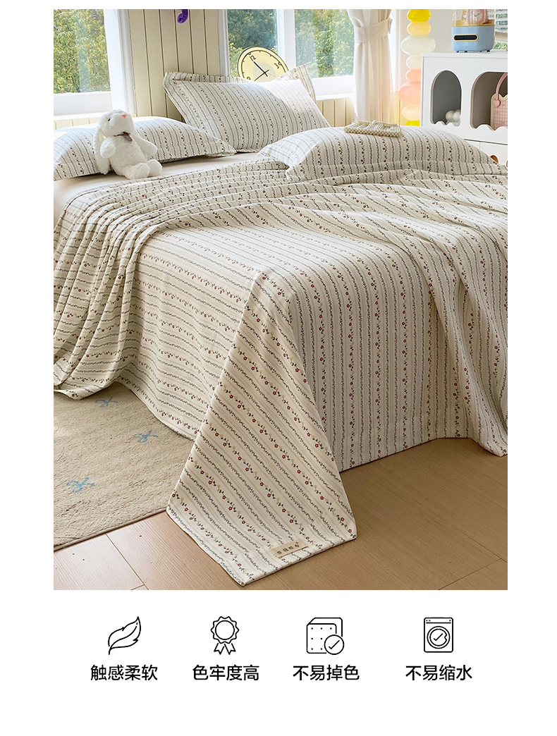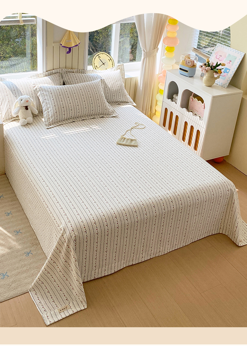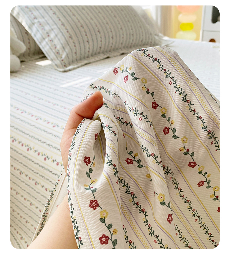> 凯磊家纺 2026春夏新款原棉老粗布床单款空调软席凉席席子 恬梦花开