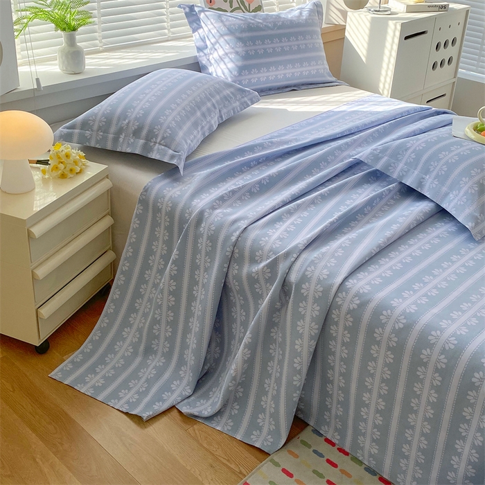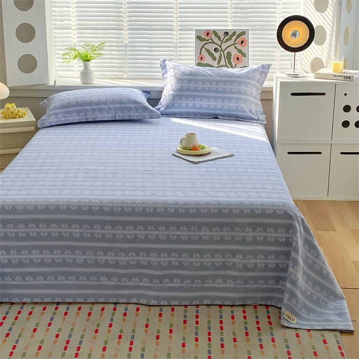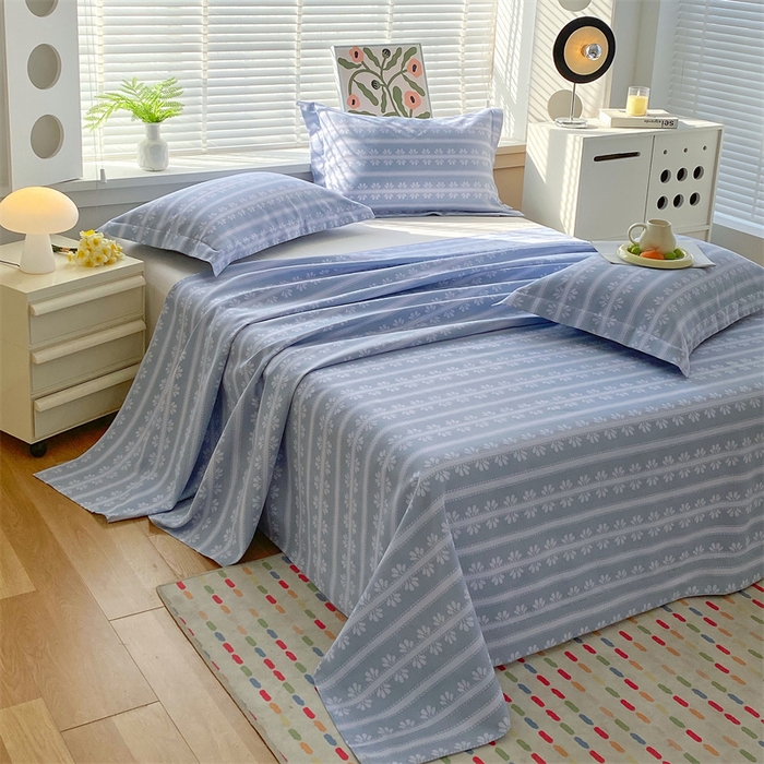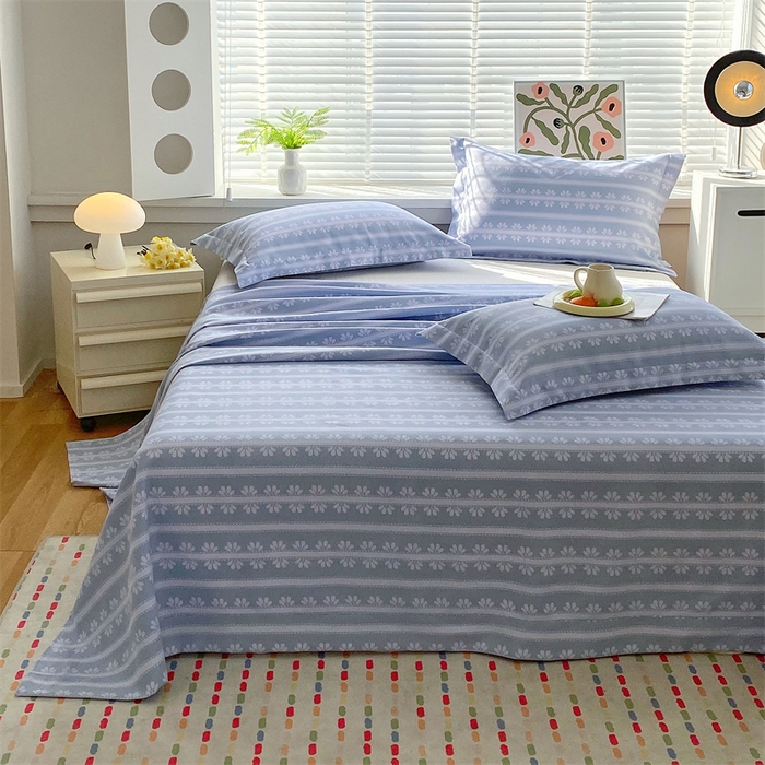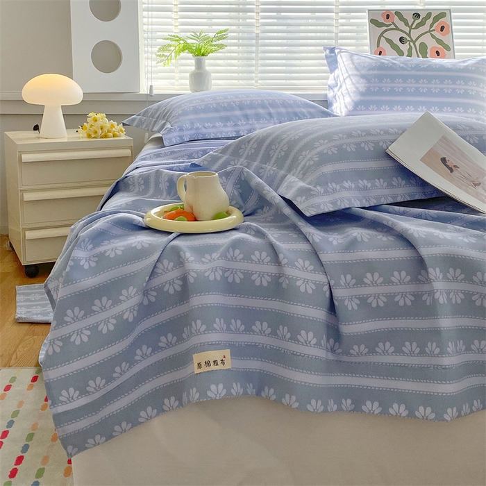 凯磊家纺 2026春夏新款原棉老粗布床单款空调软席凉席席子 甜纹悠居-蓝