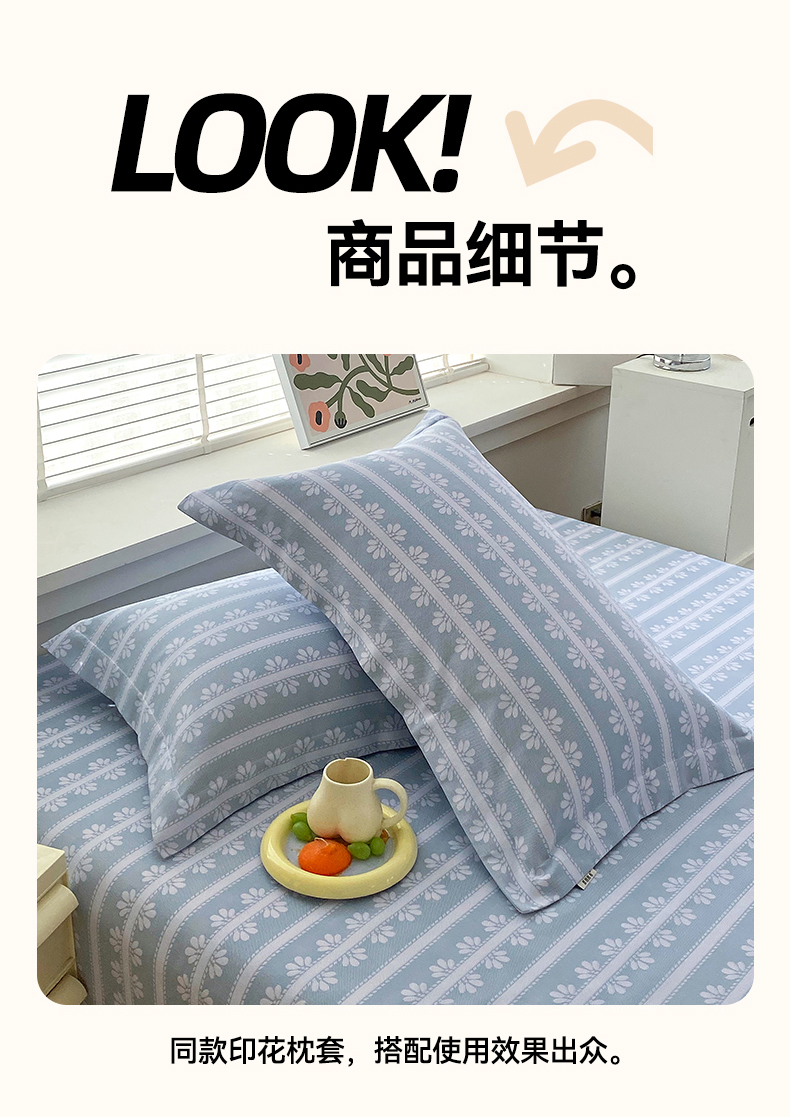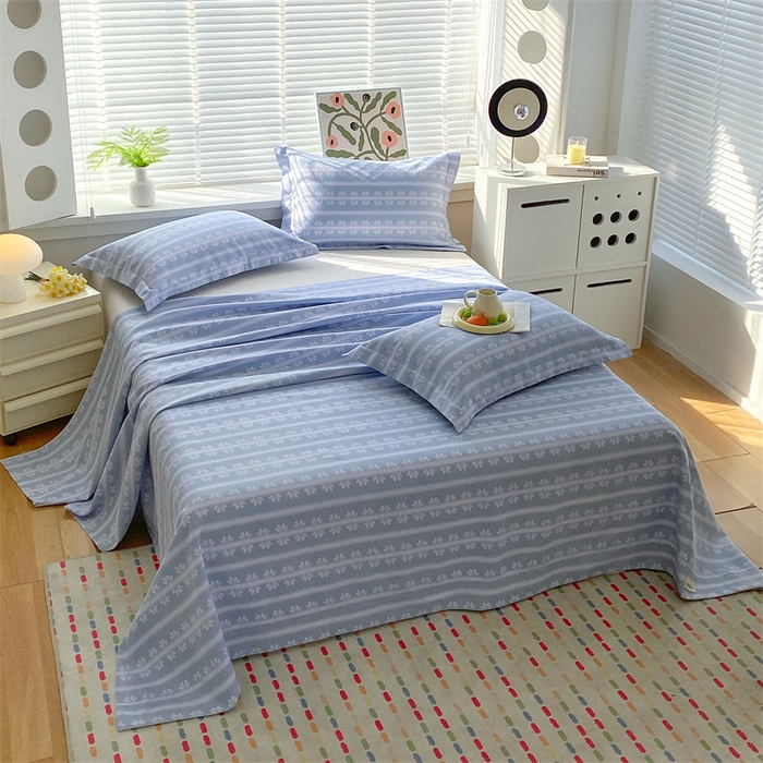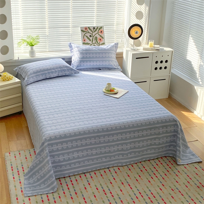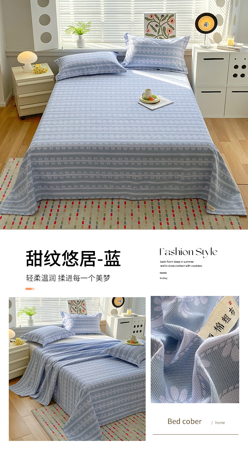 > 凯磊家纺 2026春夏新款原棉老粗布床单款空调软席凉席席子 甜纹悠居-蓝