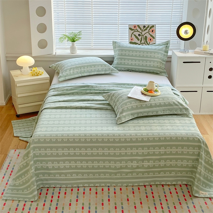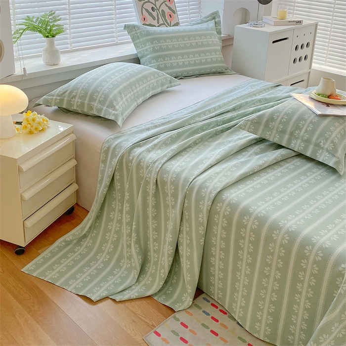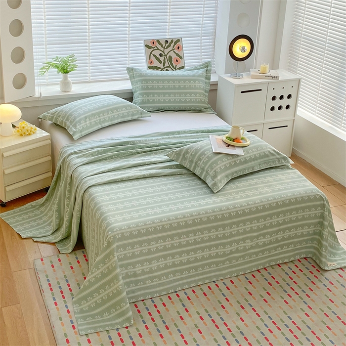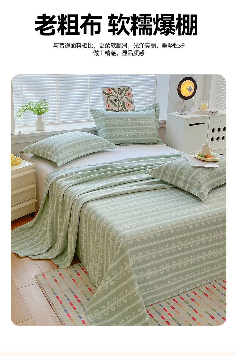> 凯磊家纺 2026春夏新款原棉老粗布床单款空调软席凉席席子 甜纹悠居-绿