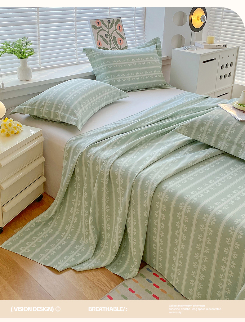 凯磊家纺 2026春夏新款原棉老粗布床单款空调软席凉席席子 甜纹悠居-绿