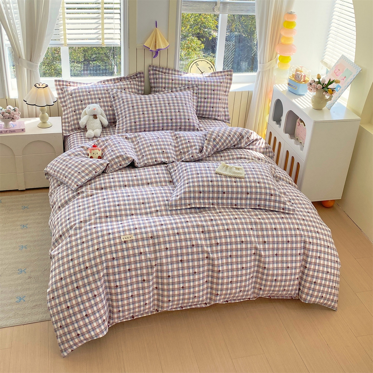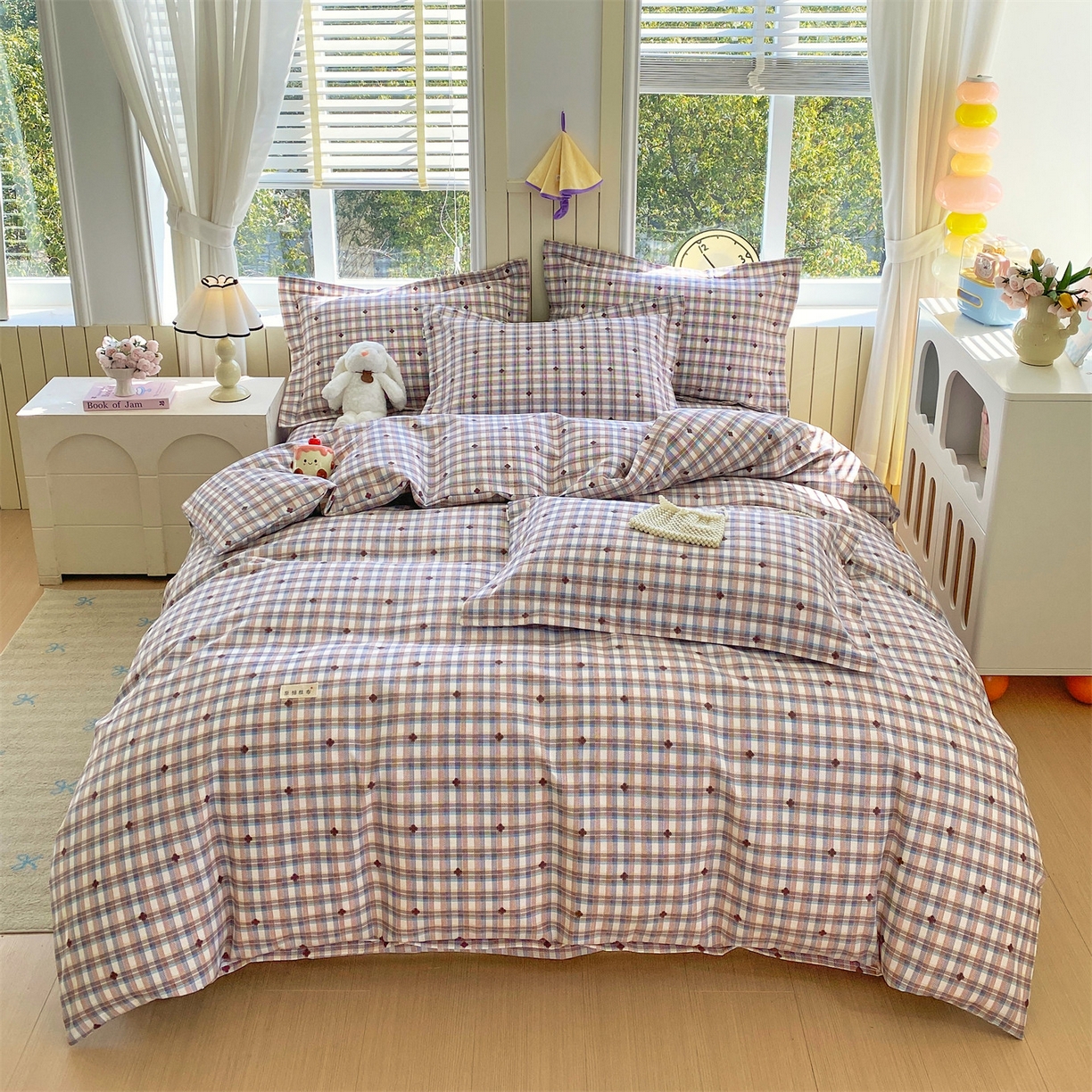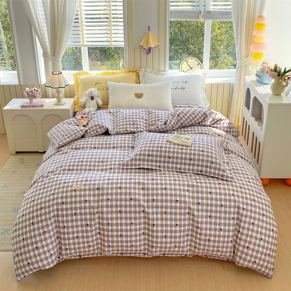 凯磊家纺 2026春夏新款原棉老粗布印花系列四件套 沐叶格香