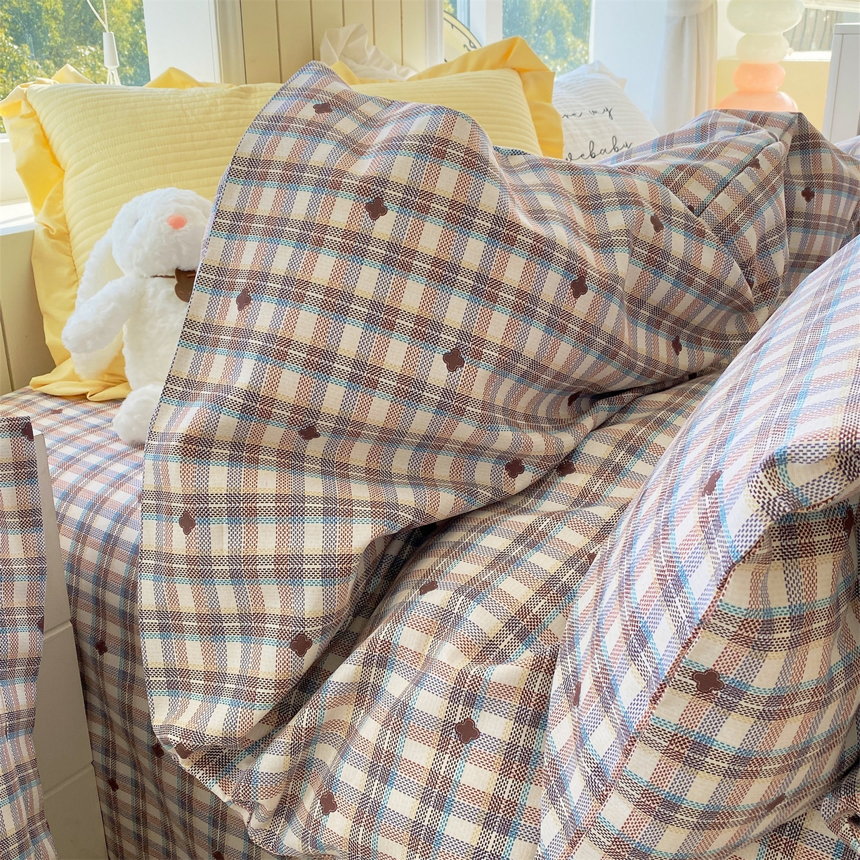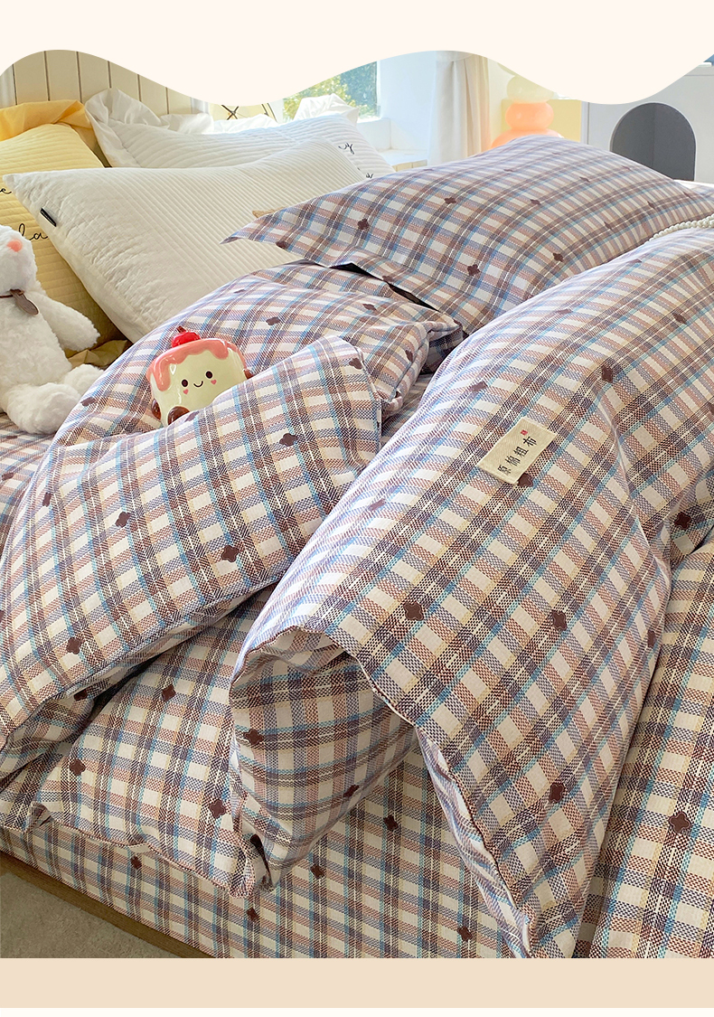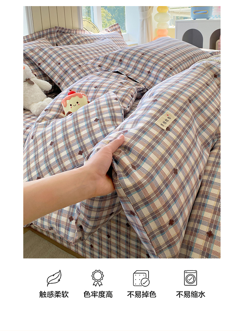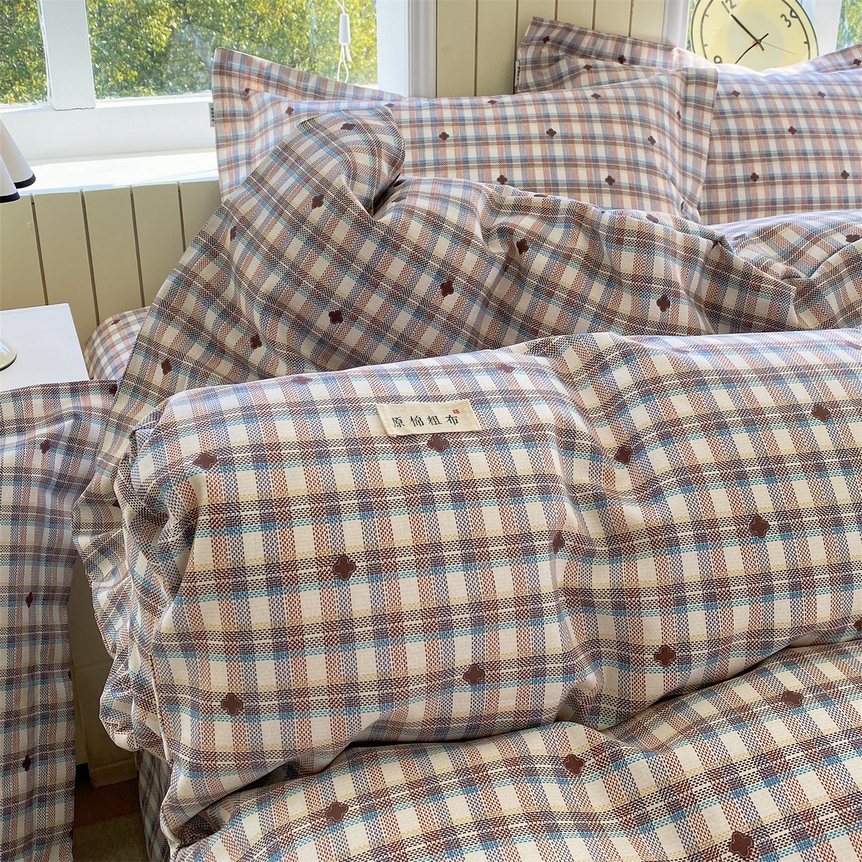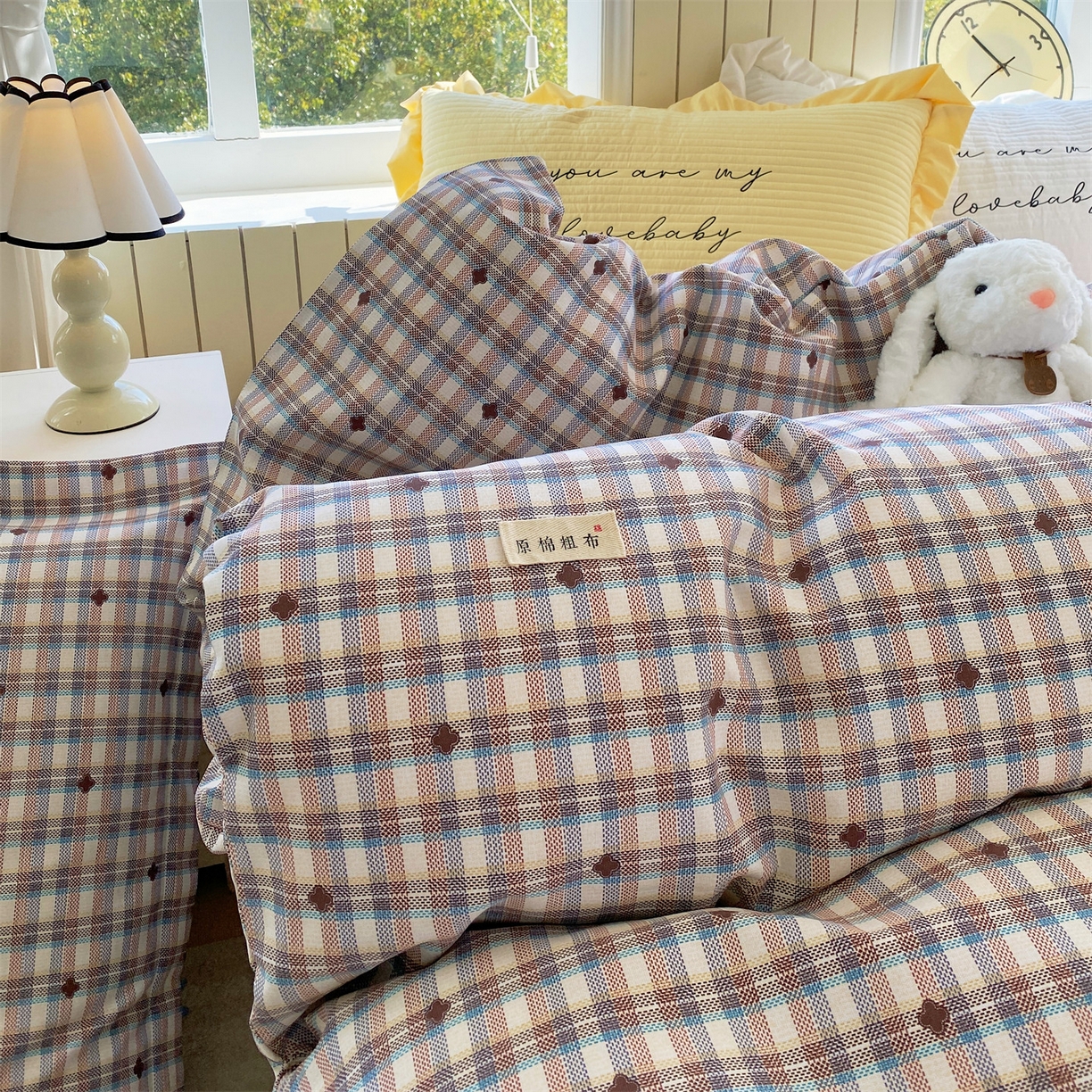 > 凯磊家纺 2026春夏新款原棉老粗布印花系列四件套 沐叶格香