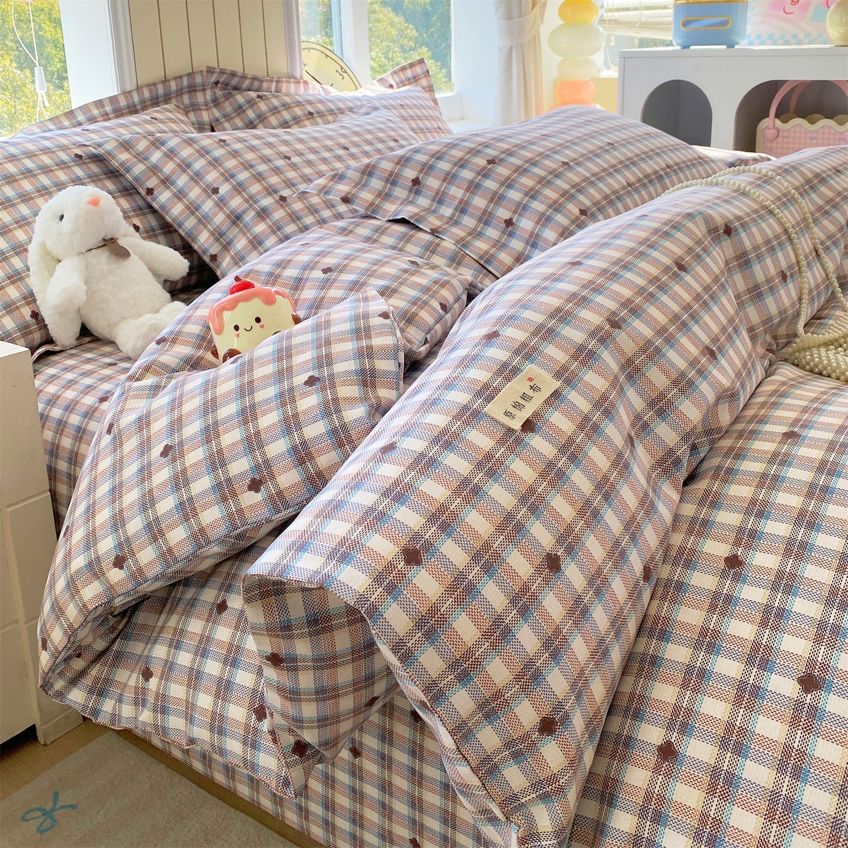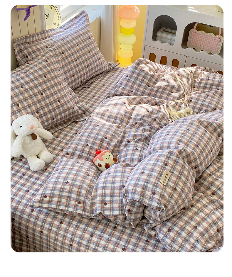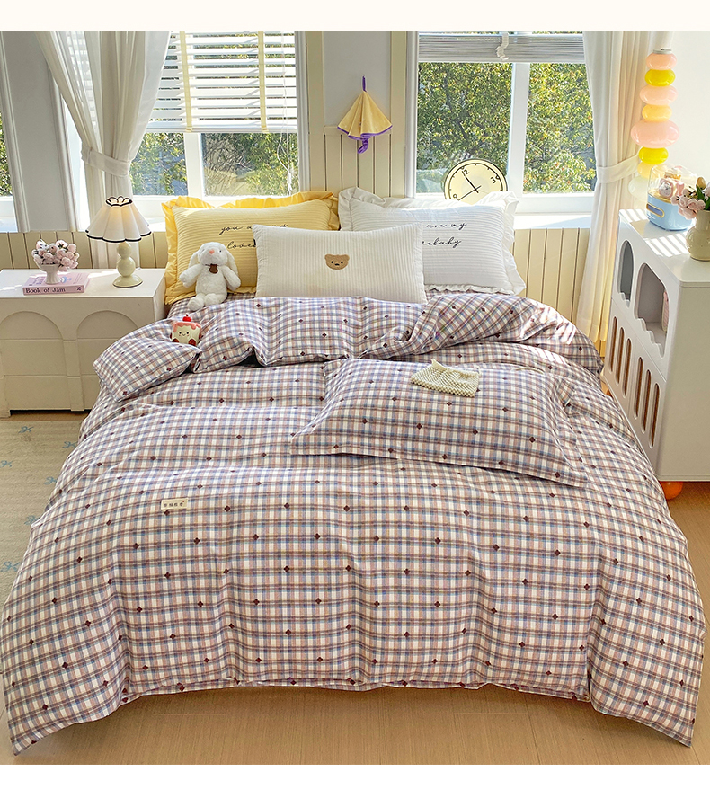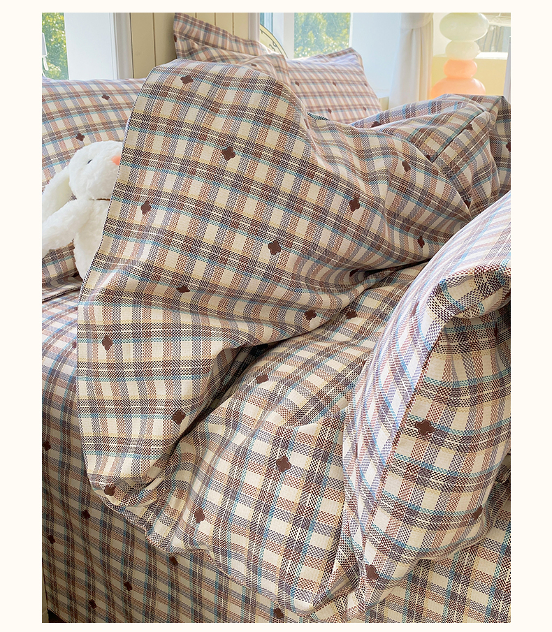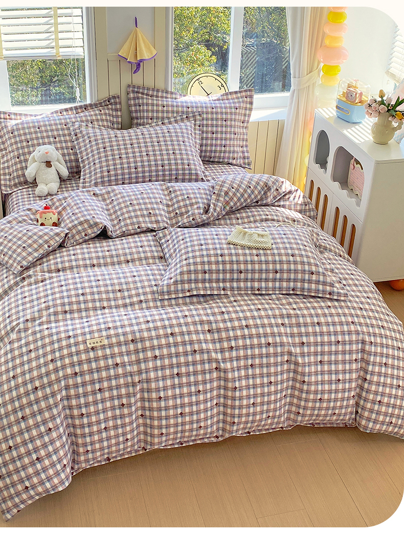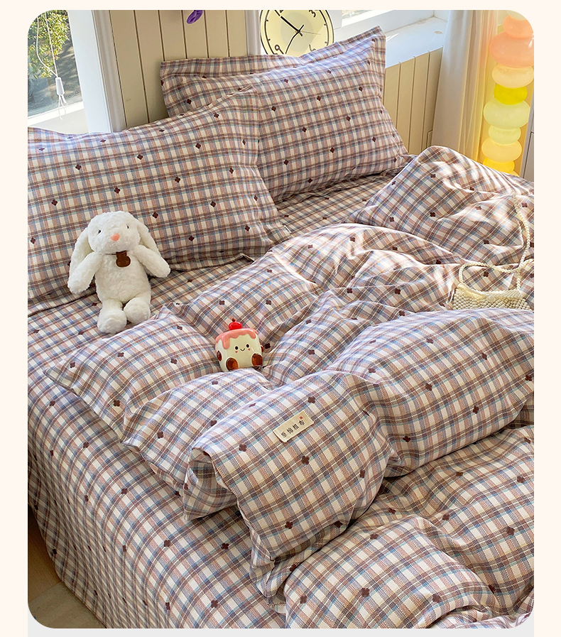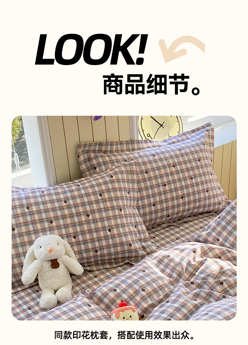 > 凯磊家纺 2026春夏新款原棉老粗布印花系列四件套 沐叶格香