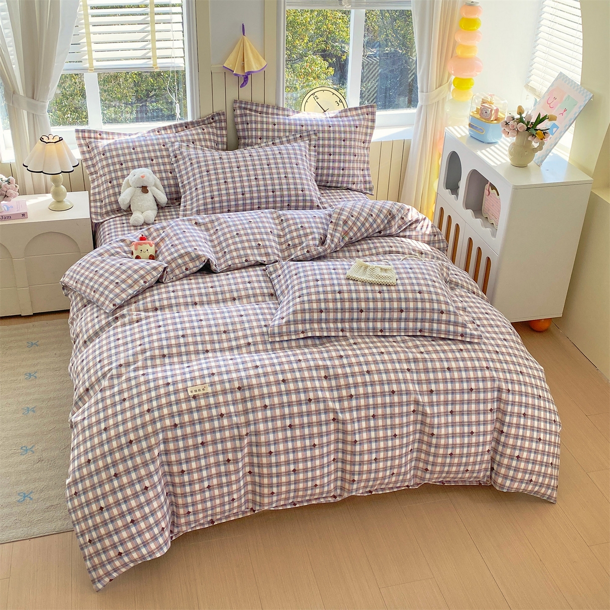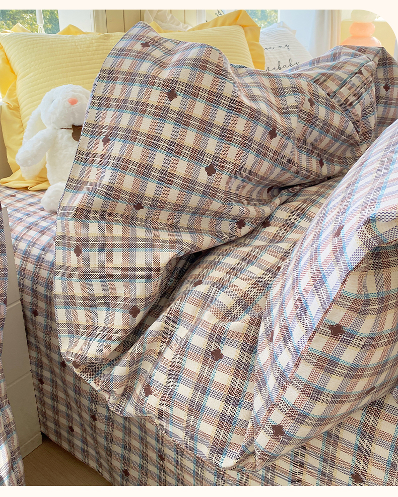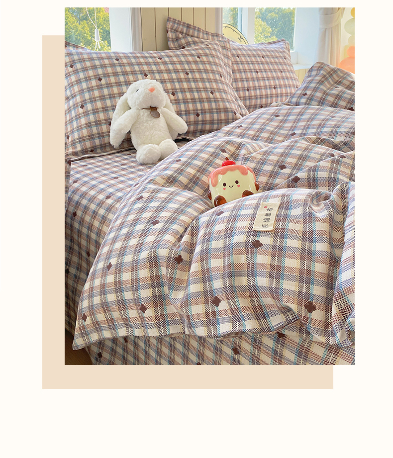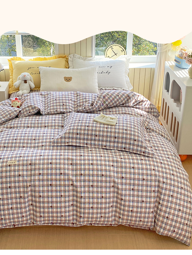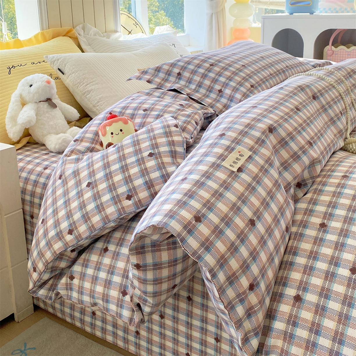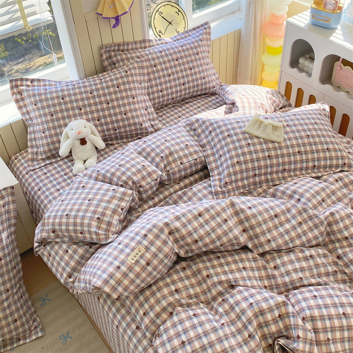 > 凯磊家纺 2026春夏新款原棉老粗布印花系列四件套 沐叶格香