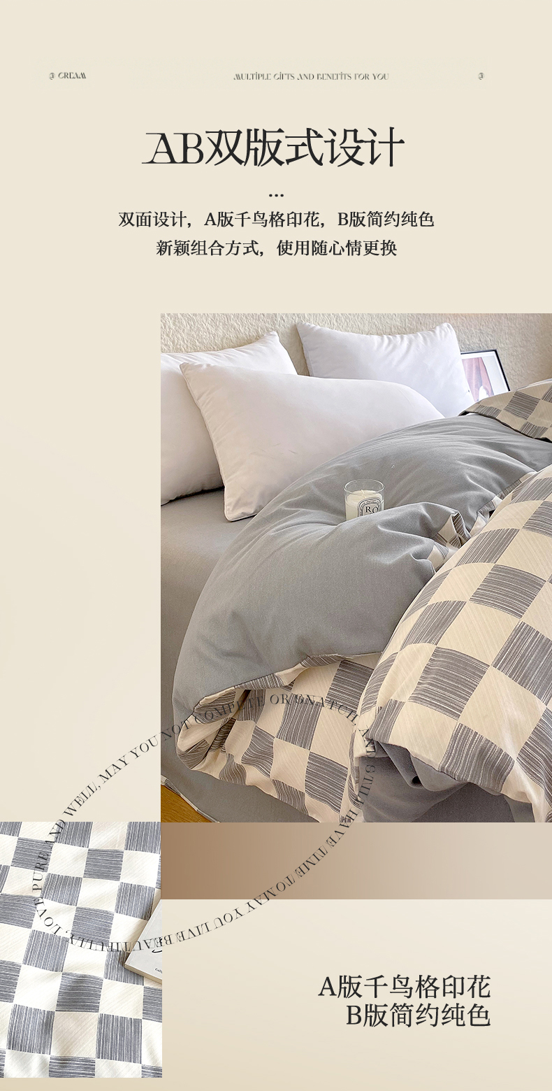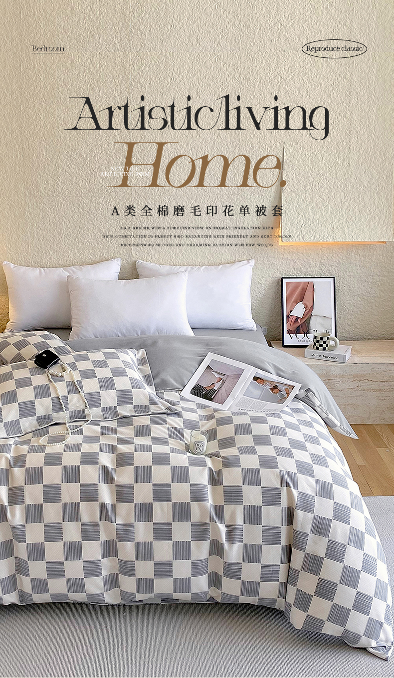 当前位置:凯磊家纺 > 凯磊家纺 2025新款Ab版加厚磨毛印花系列被套单件被套单品单被套 棋盘格
