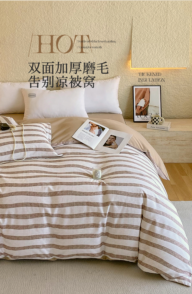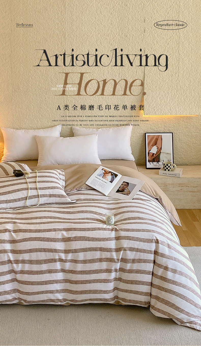当前位置:凯磊家纺 > 凯磊家纺 2025新款Ab版加厚磨毛印花系列被套单件被套单品单被套 曲线条纹-咖