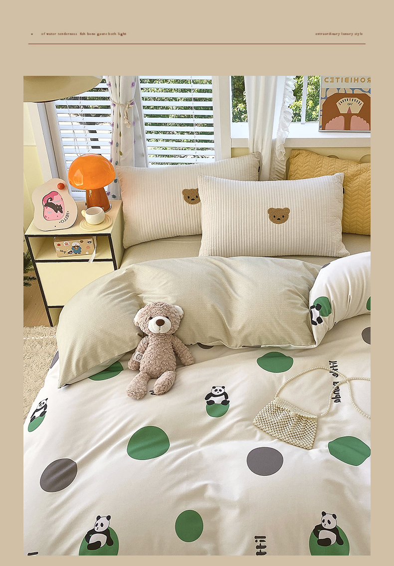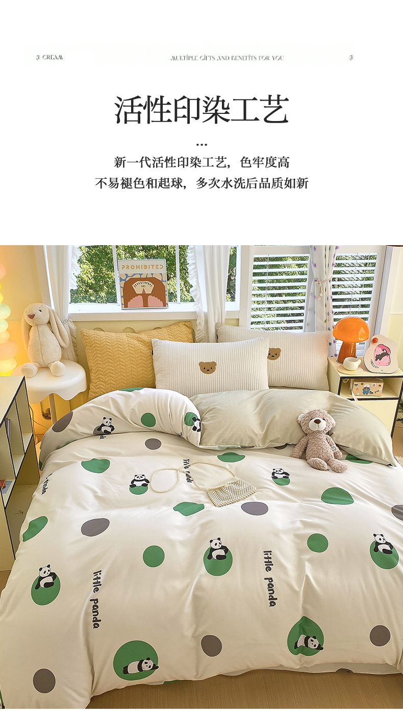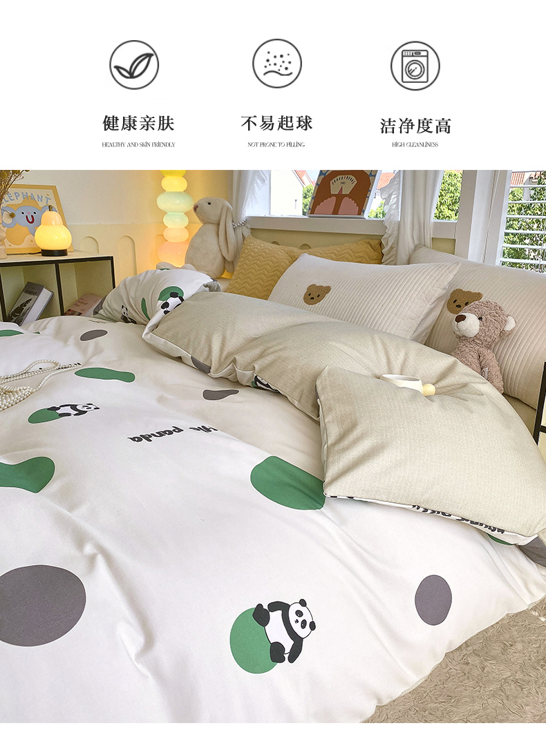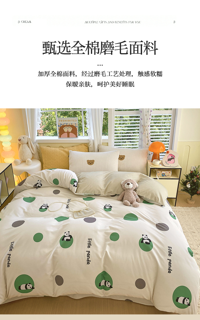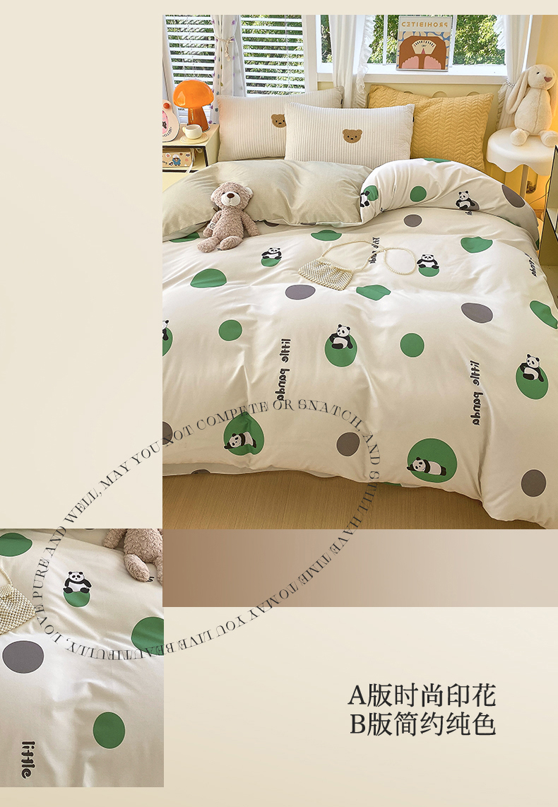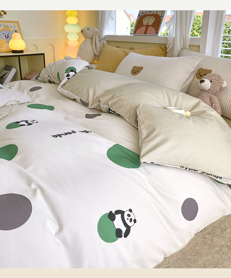 当前位置:凯磊家纺 > 凯磊家纺 2025新款Ab版加厚磨毛印花系列被套单件被套单品单被套 熊猫团子-绿